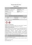 Material Safety Data Sheet Ethyl alcohol SECTION1-PRODUCT IDENTITY Product name Synonyms Ethyl Alcohol 95%, v/v Ethanol Product from Mixture Molecular Mass 46.07 Supplier SECTION2-HARZADOUS INGREDIENTS CAS# Chemical Name % of weight 64-17-5 Ethyl Alcohol 95 Hazards Identification Highly flammable liquid. Potential Acute Health Effects: Hazardous in case of skin contact (irritant), of eye contact (irritant), of inhalation. Slightly hazardous in case of skin contact(permeator), of ingestion. Potential Chronic Health Effects: Slightly hazardous in case of skin contact (sensitizer). CARCINOGENIC EFFECTS: A4 (Not classifiable for human or animal.) by ACGIH. MUTAGENIC EFFECTS: Mutagenic for mammalian somatic cells. Mutagenic for bacteria and/or yeast. TERATOGENIC EFFECTS: Classified PROVEN for human. DEVELOPMENTAL TOXICITY: Classified Development toxin [PROVEN]. Classified Reproductive system/toxin/female, Reproductive system/toxin/male [POSSIBLE]. The substance is toxic to blood, the reproductive system, liver, upper respiratory tract, skin, central nervous system (CNS). Repeated or prolonged exposure to the substance can produce target organs damage. SECTION3-FHYSICAL AND CHEMICAL DATA Physical state and appearance: Liquid Odor: Mild to strong, rather pleasant; like wine or whiskey. Alcohol-like; Ethereal, vinous. Molecular Weight:46.07g/mol Color: colorless; clear pH: not available Boiling point:78.5℃ Melting point: -114.1℃ Critical temperature: 243℃ Specific gravity: 0.789 (water=1) Vapor pressure: 5.7kPa (@20℃) Vapor Density: 1.59 (air=1) SECTION4-FIRE AND EXPLOSIVE DATA Flammability of the Product Flammable Auto-Ignition Temperature Flammable Limits 363℃ Flash Points Closed cup: 12.78℃ LOWER: 3.3% UPPER: 19% Products of Combustion These products are carbon oxides (CO, CO2) Fire Hazards in Presence of Various Substances: Highly flammable in presence of open flames and sparks, of heat. Slightly flammable to flammable in presence of oxidizing materials. Explosion Hazards in Presence of Various Substances: Risks of explosion of the product in presence of mechanical impact: Not available. Slightly explosive in presence of open flames and sparks, of heat, of oxidizing materials, of acids. Fire Fighting Media and Instructions: Flammable liquid, soluble or dispersed in water. SMALL FIRE: Use DRY chemical powder. LARGE FIRE: Use alcohol foam, water spray or fog. Special Remarks on Fire Hazards: Containers should be grounded. CAUTION: MAY BURN WITH NEAR INVISIBLE FLAME Vapor may travel considerable distance to source of ignition and flash back. May form explosive mixtures with air. Contact with Bromine pentafluoride is likely to cause fire or explosion. Ethanol ignites on contact with chromyl chloride. Ethanol ignites on contact with iodine heptafluoride gas. It ignites than explodes upon contact with nitrosyl perchlorate. Additon of platinum black catalyst caused ignition. Special Remarks on Explosion Hazards: Ethanol has an explosive reaction with the oxidized coating around potassium metal. Ethanol ignites and then explodes on contact with acetic anhydride + sodium hydrosulfate (ignites and may explode), disulfuric acid + nitric acid, phosphorous (III) oxide platinum, potassium-tert-butoxide+ acids. Ethanol forms explosive products in reaction with the following compound: ammonia + silver nitrate (forms silver nitride and silver fulminate), iodine + phosphorus (forms ethane iodide), magnesium perchlorate (forms ethyl perchlorate), mercuric nitrate, nitric acid + silver (forms silver fulminate) silver nitrate (forms ethyl nitrate) silver(I) oxide + ammonia or hydrazine (forms silver nitride and silver fulminate), sodium (evolves hydrogen gas). Sodium Hydrazide + alcohol can produce an explosion. Alcohols should not be mixed with mercuric nitrate, as explosive mercuric fulminate may be formed. May form explosive mixture with manganese perchlorate + 2,2-dimethoxypropane. Addition of alcohols to highly concentrate hydrogen peroxide forms powerful explosives. Explodes on contact with calcium hypochlorite. SECTION5-REACTIVITY DATA Stability Instability Temperature Stable Not available. Conditions of Instability Incompatible materials, heat, sources of ignition. Incompatibility with Various Substances Reactive with oxidizing agents, acids, alkalis. Corrosivity Non-corrosive in presence of glass. Special Remarks on Reactivity: Ethanol rapidly absorbs moisture from the air. Can react vigorously with oxiders. The following oxidants have been demonstrated to undergo vigorous/explosive reaction with ethanol: barium perchlorate, bromine pentafluoride, calcium hypochlorite, chloryl perchlorate, chromium trioxide, chromyl chloride, dioxygen difluoride, disulfuryl difluoride, fluorine nitrate, hydrogen peroxide, iodine heptafluoride, nitric acid nitrosyl perchlorate, perchloric acid permanganic acid, peroxodisulfuric acid, potassium dioxide, potassium perchlorate, potassium permanganate, ruthenium(VIII) oxide, silver perchlorate, silver peroxide, uranium hexafluoride, uranyl perchlorate. Ethanol reacts violently with the following compounds: acetyl bromide (evolves hydrogen bromide) acetyl chloride, aluminum, sesquibromide ethylate, ammonium hydroxide & silver oxide, chlorate, chromic anhydride, cyanuric acid + water, dichloromethane + sulfuric acid + nitrate (or) nitrite, hydrogen peroxide + sulfuric acid, iodine + methanol + mercuric oxide, manganese perchlorate + 2,2-dimethoxy propane, perchlorates, permanganates + sulfuric acid, potassium superoxide, potassium tert-butoxide, silver & nitric acid, silver perchlorate, sodium hydrazide, sulfuric acid + sodium dichromate, tetrachlorisilane + water. SECTION6-TOXICOLOGICAL PROPERTIES Routes of Entry Absorbed through skin. Dermal contact. Eye contact. Inhalation. Ingestion. Toxicity to Animals: WARNING: THE LC50 VALUES HEREUNDER ARE ESTIMATED ON THE BASIS OF A 4-HOUR EXPOSURE. Acute oral toxicity (LD50): 3450 mg/kg [Mouse]. Acute toxicity of the vapor