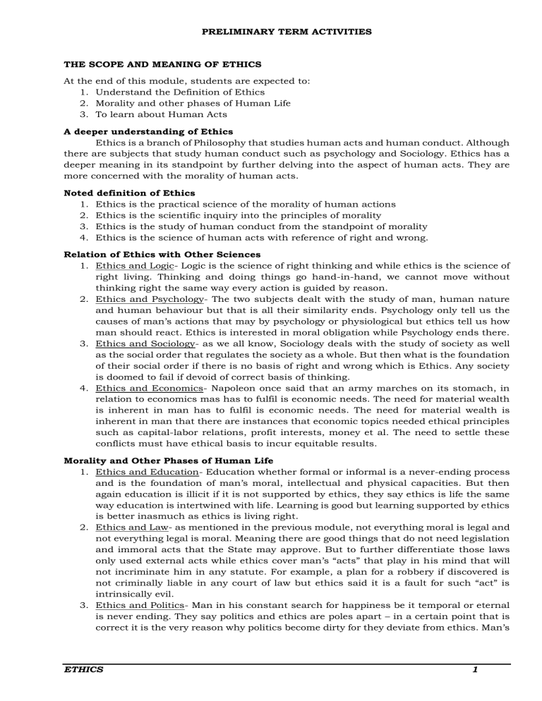 THE SCOPE AND MEANING OF ETHICS