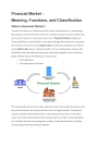 Financial Market : Meaning, Functions, and Classification What is Financial Market? A market that serves as a link between the savers and borrowers, by transferring the capital or money from those who have a surplus amount of money to those who are in need of money or investment, is known as Financial Market. Simply put, Financial Market is a market that creates and exchanges financial assets. In general, the investors are known as the surplus units and business enterprises are known as the deficit units. Hence, a financial market acts as a link between surplus units and deficit units and brings the borrowers and lenders together. One can allocate funds with the help of the following two main ways: Through Banks Through Financial Markets The households (who are the surplus units) may keep their savings in banks or they may use that amount for buying securities from the capital market. The financial market and banks then lend the funds to the business firms (who are the deficit units). The banks and financial market compete with each other. Financial Markets are classified into two broad categories; namely, Capital Market(Primary Market and Secondary Market) and Money Market. Functions of Financial Markets The important functions performed by Financial Markets are as follows: 1. Facilitation of Price Discovery The price of anything depends upon two factors: its demand and supply in the market. Hence, the demand and supply of financial securities and assets help decide the price of different financial securities. 2. Mobilisation of Savings and Channelising the Savings into the most Productive Uses As the financial markets act as a link between the savers and investors, it transfers savers’ savings to the most productive and appropriate investment opportunities. 3. Providing Liquidity to Financial Assets Financial Markets provides the savers and investors with a platform to convert the securities into cash, as they easily sell and buy the financial securities in this market. 4. Reduction of the Cost of Transaction Investors and companies have to collect information regarding financial securities before investing in them, which can be very time-consuming. The financial markets help these investors and companies by providing them with all information regarding financial securities including its price, availability, and cost. Classification of Financial Market The Financial Market is divided into two broad categories; viz., Capital Market and Money Market. Capital Market A marketer including all institutions, organisations, and instruments providing medium and long-term funds is known as a Capital Market. A capital market does not include institutions and instruments providing finance for a short term, i.e., up to one year. Some of the common instruments of a capital market are debentures, shares, bonds, public deposits, mutual funds, etc. An ideal capital market is one which allocates capital productively, provides sufficient information to the investors, facilitates economic growth, where finance is available to the traders at a reasonable cost, and where the market operations are fair, free, competitive, and transparent. A capital market is of two types, namely, Primary Market and Secondary Market. Primary Market: A market in which the securities are sold for the first time is known as a Primary Market. It means that under the primary market, new securities are issued from the company. Another name for the primary market is New Issue Market. This market contributes directly to the capital formation of a company, as the company directly goes to investors and uses the funds for investment in machines, land, building, equipment, etc. Secondary Market: A market in which the sale and purchase of newly issued securities and second-hand securities are made is known as a Secondary Market. In this market, a company does not directly issue its securities to the investors. Instead, the existing investors of the company sell the securities to other investors. The investor who wants to sell the securities and the one who wants to purchase meet each other in the secondary market, and exchange the securities for cash takes place with the help of an intermediary called a broker. Money Market A market for short-term funds that are meant to use for a period of up to one year is known as Money Market. In the general case, the money market is the source of funds or finance for working capital. The transactions held in the money market involve lending and borrowing of cash for a short term and also consist of the sale and purchase of securities with one year term or securities which get paid back (redeemed) within one year. Some of the common instruments of the money market are Call Money, Commercial Bills, T. Bills, Commercial Paper, Certificates of Deposits, etc. Some of the features of a Money Market are as follows: 1. It is a market for the short term. 2. There is no fixed geographical location of a money market. 3. Some of the common instruments of the money market are Call Money, Commercial Bills, Certificates of Deposits, etc. 4. Some of the major institutions involved in the money market are LIC, GIC, RBI, Commercial Banks, etc. Some of the Instruments of Money Market are as follows: 1. Call Money: The money borrowed or lent on demand for a short period of time (generally one day) is known as Call Money. The term of the call money does not include Sundays and other holidays. It is used mostly by banks. It means that when one bank faces a temporary shortage of cash then the bank with surplus cash lends the former bank with money for one or two days. It is also known as Interbank Call Money Market. 2. Treasury Bills (T. Bills): On behalf of the Government of India, Treasury Bills are issued by the Reserve Bank of India (RBI). With the help of T. Bills, the Government of India can get short-term borrowings as they are sold to the general public and banks. The Treasury Bills are freely transferable and ne