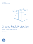 GE Energy Industrial Solutions Ground Fault Protection Digital Specification Program Latin America Ground Fault. I. Introduction In the electrical systems always exists the possibility of having shutdowns due to over currents or short circuits produced by operation mistakes, ambient conditions, lack of maintenance or atmospheric discharges. In the case of short circuit, this can be classified in the next types: 1.- Bolted Faults. It occurs when the conductors (phase, neutral or ground) are solidly connected, having an impedance equal to cero on this connection and because this, a maximum current condition is present. 2.- Ground Fault It occurs when one of the system phases get on direct contact to ground or to any metallic part that is grounded. 3.- Arcing Fault It happens between two close conductors but are not in direct contact. Any of these faults is really dangerous for both equipment and personnel. In this document we will discuss more in detail the ground fault. II. Why protect against Ground Fault. The ground fault has its origin on different ways but the more common are reduced insulation, physical damages to insulation system or excessive transient or steady-state voltage stresses on insulation. These problems can be produced due to moisture, atmospheric contamination, insulation deterioration, mechanical stresses, etc. Although the situations mentioned before can be avoided following a good maintenance Schedule, always exists the latent risk of a fault, commonly during the installation or major maintenance to equipment. Ground Fault current magnitudes can vary according to the grounding method used in the system. Although the ground fault currents can reach values up to thousands of amps , the NEC 2011 in the article 230.95(A) mentions that the maximum setting for ground fault protection must be 1200Amps and the maximum time-delay must be 1 second for currents of 3000Amps or higher. Selection of setting in amperes for every protection device is based primarily on the features of the circuit being protected, for example if the circuit serves to individual loads the pickup setting can be low as 5 Amp to 10 Amp, but on the other side, if the circuit serves multiple loads and every load has its own Protection the settings in the feeder should be higher in order to allow the operation of downstream protection devices on ground fault currents of lower magnitude on their respective circuits. If the system doesn´t have a proper Protection scheme, the ground fault effects can be very destructive. The consequences of a ground fault can be as simple as a shutdown if there is a proper protection system or can destroy completely the equipment due the arc blast or fire, and can produce burning or electrical shock to the personnel that could be working close to the equipment failed. These consequences are directly linked to the grounding method that is being used. III. When the Ground Fault Protection is Required?. Despite the NEC ( NOM001 for Mexico)has passed through several changes in the last years, the articles regarding ground fault protection have not suffered changes. NEC-2011 Edition (NOM001-SEDE-2005 for Mexico) 215.10 Ground-Fault Protection of Equipment. Each feeder disconnect rated 1000 amperes or more and installed on solidly grounded wye electrical systems of more than 150 volts to ground, but not exceeding 600 volts phase-to phase, shall be provided with ground-fault protection of equipment in accordance with the provisions of 230.95. 230.95 Ground-Fault Protection of Equipment. Ground fault protection of equipment shall be provided for solidly grounded wye electric services of more than 150 volts to ground but not exceeding 600 volts phase-to-phase for each service disconnect rated 1000 amperes or more. 240.13 Ground-Fault Protection of Equipment. Ground fault protection of equipment shall be provided in accordance with the provisions of 230.95 for solidly grounded wye electrical systems of more than 150 volts to ground but not exceeding 600 volts phase-to-phase for each individual device used as a building or structure main disconnecting means rated 1000 amperes or more. From the articles in the codes mentioned before, we can summarized the features that an electrical system must have in order to be required to include a ground fault protection system. 1. Solidly grounded wye system. 2. Where phase-to-phase voltage is between 260 (“more than 150 volts to ground”) to 600VAC, inclusive. 3. The service or feeder or building/structure main disconnect device(s) is (are) rated 1000A or greater. 4. The load must be different to Fire pumps. The 4 features mentioned before apply for NOM001 and for NEC- 2011, however, there are a couple of additional features included in the NEC-2011 1. The maximum setting of the ground-fault protection shall be 1200 amperes, and the maximum time delay shall be one second for ground-fault currents equal to or greater than 3000 amperes.(NEC 230.95A) 2. The ground fault Protection system shall be performance tested when first installed on site.(NEC 230.95C) IV. Grounding Methods. Nowadays the interest on the using of ground fault Protection systems has been increasing due to this Protection is required for NEC, NOM and NFPA in some equipment and feeders, besides the interest of improving safety for personnel. The intention of grounding systems is to control the voltage with respect to ground and provide a current path that allows us to detect the unwanted connection between line and phase conductors and then be able to send a signal to trip the protection devices to remove the voltage on these conductors. There are several devices for Ground Fault protection on the market and they have their use depending on the grounding method used in our system. Whenever working on the design of an electrical system the question of how to ground the system came up. Grounding electrical systems is generally recommended, however there are exceptions. There are se