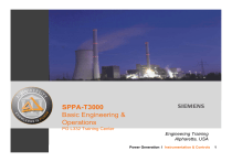 PG L. The Value Provider for Power Generation Management Start Next Previous Memo PG L. The Value Provider for Power Generation Management SPPA-T3000 Basic Engineering & Operations PG L332 Training Center Engineering Training Alpharetta, USA Exit Power Generation l Instrumentation & Controls SPPA-T3000 Training 1 PG L. The Value Provider for SPPA-T3000 Basic Engineering & Operations Syllabus Power Generation Management Start Next Previous Memo Exit Overview Basic principles Project view Editor AF-Block, connector and parameter Transaction concept Faceplates Graphics, display hierarchy, navigation Engineering examples: motor, logic, controller, I/O Redundancy, availability, dependability Thin clients Peripherals (field devices) Power Generation l Instrumentation & Controls SPPA-T3000 Training 2 PG L. The Value Basic Engineering & Operations Provider for Power Generation Management PowerPoint Presentation Memo Start Next Outline 4 Engineering View 2 Hardware Configuration 5 Operation View 3 6 Documentation 1 Previous Memo Software Architecture 7 Exit Exercises Power Generation l Instrumentation & Controls SPPA-T3000 Training 3 Outline HMI Engineering Diagnostics Power Services Siemens – setting new standards in power plant automation Automation SPPA-T3000 Classical DCS Sub-systems and multiple internal interfaces Various tools for HMI, engineering, diagnostics Different sessions with no navigation in between SPPA-T3000 All functions embedded in a common frame, no sub-systems Unified access to central data storage (engineering data, project data, archive etc.) All tasks performed from any work place due to Web-based functionality Power Generation l Instrumentation & Controls 1 A ! SPPA-T3000 innovating power plant control SPPA-T3000 Power Generation l Instrumentation & Controls 2 Embedded Component Services® – intrinsically integrated data Unique user interface for all tasks All data intrinsically embedded in every object Different views possible for different user roles All the information is available, at a glance SPPA-T3000 Power Generation l Instrumentation & Controls 3 A ! ECS® – powers the complete system Minimal system complexity SPPA-T3000 architecture User Interfaces Flat system architecture with fewer components and interfaces New Server contains all intrinsic functions for operation, monitoring, archive, engineering, diagnostics – Control functions provided on the world best hardware: SIMATICCPU No sub-system boundaries, less administration efforts required Easy online upgrade and extension of components Hardware assignment Thin Clients Power Services Power Server Server Products Process Interfaces I/O Modules SPPA-T3000 Power Generation l Instrumentation & Controls 4 A ! Embedded Component Services® – freely designable Customizable design SPPA-T3000 Customizable according to users' requirements, including individual look & feel to reduce mistakes Free choice of on-line change of US/European symbols Personalized desktops for each user’s responsibilities and preferences to optimize working processes Power Generation l Instrumentation & Controls 5 A ! Embedded Component Services® – Summary Unique user interface for all tasks Easy to use Reduces time to indicate disturbances and increases uptime Minimal system complexity Less components and internal interfaces, less administration Minimized optimal specific hardware Customizable design Tailored solutions to specific customer’s needs, from look & feel to functionality Optimal adaptation to every working processes SPPA-T3000 Power Generation l Instrumentation & Controls 6 SPPA-T3000 – At work… Operation Engineering Maintenance SPPA-T3000 SPPA-T3000 Power Generation l Instrumentation & Controls 7 Use-case - Operation – the power plant at your fingertips Access to all types of data through multiple views (Plant Display, Point View, Function Diagram, Diagnostic View) Comprehensive information and interaction through Point View Forcing, mini trends & online tuning Online configuration of new plant displays, trends and reports through the operator interface Easy to operate - everything under control SPPA-T3000 Power Generation l Instrumentation & Controls 8 SPPA-T3000 Power Generation l Instrumentation & Controls 9 Easy and fast navigation to any kind of information Direct links between all views Alarm sequence display Dynamic Function Diagram Plant Display Point View Diagnostic View Faceplate Excellent supervision through summarized information Easy access to detailed information through specific views Fast navigation between all views through direct links Active user guidance in the event of disturbances or malfunctions SPPA-T3000 Power Generation l Instrumentation & Controls 10 Safe operation via Faceplates Examples of Faceplates: Motor Navigation from Faceplates: Continuous Controller Select options: Open IC-Diagram Open Force AF Block Open Diagnostic View Open Trend Display Open Point View Open Notice Open Help Specific pictograms and faceplates for different automation functions Safe operation through clear layout and customizable access rights Buttons are blocked, depended on access rights or feedback signals Adaptable to specific layout requirements Fast access to all corresponding detail views and other information SPPA-T3000 Power Generation l Instrumentation & Controls 11 Operator guidance for fast fault analysis SPPA-T3000 Group alarm indication in the screen header The affected plant display can be selected with one mouse click In the event of more than one fault, the selection will be directed to the corresponding hierarchy level Loop in alarm: A direct link to the affected plant display Power Generation l Instrumentation & Controls 12 Task-oriented User Interface Supervisor Operator Unit 1 Operator Unit 2 Oper. Facilities & I&C Engineer Service Flexible definition of user roles with different levels of access rights User-specific desktop tailored to individual roles Assignment of users with specific