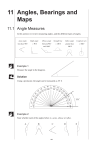 MEP Y8 Practice Book A 11 Angles, Bearings and Maps 11.1 Angle Measures In this section we review measuring angles, and the different types of angles. Acute angle Right angle Obtuse angle Straight line Reflex angle Complete turn less than 90 ° = 90 ° between 90 ° and 180 ° = 180 ° greater than 180 ° = 360 ° Example 1 Measure the angle in the diagram. Solution Using a protractor, the angle can be measured as 35 ° . 170 180 160 10 0 150 20 30 40 0 10 2 0 30 180 170 1 60 1 50 40 14 0 0 14 100 1 80 10 70 90 80 70 120 0 60 0 1 0 11 60 130 50 120 50 0 13 35 ° Example 2 State whether each of the angles below is acute, obtuse or reflex. A B C 189 D E MEP Y8 Practice Book A 11.1 Solution A Obtuse as it is between 90 ° and 180 ° . B Reflex as it is greater than 180 ° . C Acute D Reflex as it is greater than 180 ° . E Obtuse as it is between 90 ° and 180 ° . as it is less than 90 ° Exercises 1. 2. Measure the following angles: (a) (b) (c) (d) Measure the following angles: (a) (b) 190 MEP Y8 Practice Book A (c) (d) (e) 3. (f) State whether each of the following angles is acute, obtuse or reflex. (a) (b) (c) (d) (e) (f) 191 MEP Y8 Practice Book A 11.1 4. (a) Measure the angles in the triangle below: (b) What is the sum of the three angles? (a) Measure the angles in the quadrilateral opposite: (b) What is the sum of the four angles? 6. (a) (b) Without using a protractor, try to draw an angle of 45 ° . Measure your angle to see how accurate you were. 7. (a) Draw the angle shown in the diagram. (b) Measure the acute angle that you also draw. (c) Check that the two angles add up to 360 ° . (a) Measure the three angles marked in the diagram. (b) Check that they add up to 360 ° . 5. 8. 280˚ a c 192 b MEP Y8 Practice Book A 9. (a) Measure the two angles in the diagram. (b) Check that they add up to 180 ° . y x 10. (a) Without using a protractor, try to draw an angle of 300 ° . (b) Check your answer by measuring the angle with a protractor. 11.2 Parallel and Intersecting Lines When a line intersects (or crosses) a pair of parallel lines, there are some simple rules that can be used to calculate unknown angles. The arrows on the lines indicate that they are parallel. c d e b a f a = b (and c = d , and e = f ) These are called vertically opposite angles. a = c (and b = d ) These are called corresponding angles. b=c These are called alternate angles. a + e = 180 ° , because adjacent angles on a straight line add up to 180 ° . These are called supplementary angles. Note also, that c + e = 180 ° (allied or supplementary angles) 193 MEP Y8 Practice Book A 11.2 Example 1 d e In the diagram opposite, find the unknown angles if a = 150 ° . a c b Solution To find b: a+b = 180 ° (angles on a straight line, supplementary angles) 150 ° + b = 180 ° b = 30 ° To find c: c = b c = 30 ° (vertically opposite angles or angles on a straight line) To find d: d = a d = 150 ° (corresponding angles) To find e: e = c e = 30 ° (corresponding angles) a 70˚ Example 2 Find the size of the unknown angles in the parallelogram shown in this diagram: b Solution To find a: a + 70 ° = 180 ° a = 110 ° (allied or supplementary angles) To find b: b+a = 180 ° (allied or supplementary angles) b + 110 ° = 180 ° b = 70 ° 194 c MEP Y8 Practice Book A To find c: c + 70 ° = 180 ° c = 110 ° c = 360 ° − ( a + b + 70 °) or (allied or supplementary angles) (angle sum of a quadrilateral) = 360 ° − 250 ° = 110 ° or c = a (opposite angles of a parallelogram are equal) Exercises 1. 2. a b d c Which angles in the diagram are the same size as: (a) a, (b) b? e f h g Find the size of each of the angles marked with letters in the diagrams below, giving reasons for your answers: (a) (b) a b 40˚ b a c 70˚ (c) 99˚ a b (d) c d b 110˚ a c d a 3. b Find the size of the three unknown angles in the parallelogram opposite: 65˚ 195 c MEP Y8 Practice Book A 11.2 4. One angle in a parallelogram measures 36 ° . What is the size of each of the other three angles? 5. One angle in a rhombus measures 133 ° . What is the size of each of the other three angles? 6. Find the sizes of the unknown angles marked with letters in the diagram: 50˚ a 30˚ b c 7. (a) (b) 8. In the diagram opposite, find the sizes of the angles marked in the triangle. Give reasons for your answers. d e 37˚ a c What special name is given to the triangle in the diagram? The diagram shows a bicycle frame. Find the sizes of the unknown angles a, b and c. b 143˚ 46˚ 20˚ 62˚ A 72˚ 9. BCDE is a trapezium. B 126˚ E (a) Find the sizes of all the unknown angles, giving reasons for your answers. (b) What is the special name given to this type of trapezium? C D 196 MEP Y8 Practice Book A 11.3 Bearings Bearings are a measure of direction, with north taken as a reference. If you are travelling north, your bearing is 000 ° . N If you walk from O in the direction shown in the diagram, you are walking on a bearing of 110 ° . Bearings are always measured clockwise from north, and are given as three figures, for example: O 110˚ N N N 240˚ 60˚ 330˚ Bearing 060 ° Bearing 240 ° Bearing 330 ° Example 1 N On what bearing is a ship sailing if it is heading: (a) E, (b) S, (c) W, (d) SE, (e) NW ? NW NE W E SW Solution (a) S (b) N 90˚ N 180˚ E Bearing is 090 ° . Bearing is 180 ° . N (c) S W Bearing is 270 ° . SE 270˚ 197 MEP Y8 Practice Book A 11.3 N (d) N (e) NW 135˚ 315˚ Bearing is 315 ° SE Bearing is 135 ° Example 2 A ship sails from A to B on a bearing of 060 ° . On what bearing must it sail if it is to return from B to A? Solution N The diagram shows the journey from A to B. N Extending the line of the journey allows an angle of 60 ° to be marked at B. Bearing of A from B = 60 ° + 180 ° 60˚ B = 240 ° and this is called a back bearing or a reciprocal bearing. 60˚ A Exercises 1. 2. What angle do you turn through if you turn clockwise from: (a) N to S, (b) E to W, (c) N to NE, (d) N to SW, (e) W to NW ? Direction Copy and complete the table: N N