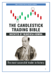 THE CANDLESTICK TRADING BIBLE 1 THE CANDLESTICK TRADING BIBLE Content Introduction 4 Overview 6 History of Candlesticks 8 What is a Candlestick 11 Candlestick Patterns 14 The Engulfing Bar Candlestick 16 The Doji Candlestick Pattern 20 The Dragon Fly Doji Pattern 22 The Gravestone Doji Pattern 25 The Morning Star 28 The Evening Star Candlestick Pattern 31 The Hammer Candlestick Pattern 34 The Shooting Star Candlestick Pattern 37 The Harami Pattern 40 The Tweezers Tops and Bottoms 43 Candlestick Patterns Exercise 47 The Market Structure 51 How to Trade Trending Markets 54 Support and Resistance Levels 58 How to Draw Trendlines 61 The Ranging Market 63 Time Frames and Top Down Analysis 70 Trading Strategies and Tactics 79 The Pin Bar Candlestick Pattern Strategies 81 2 THE CANDLESTICK TRADING BIBLE Trading the Pin Bar Candle With The Trend Trading Tactics Trading Pin Bars with Confluence 88 92 96 Pin Bar Trades Examples 100 Trading Pin Bars in Range Bounds Markets 103 The Engulfing Bar Candlestick Pattern 109 How to Trade the Engulfing Bar Price Action Signal 112 Trading the Engulfing Bar with Moving Averages 117 How to Trade the Engulfing Bar with Fibonacci Retracements 120 Trading the Engulfing Bar with Trendlines 122 Trading the Engulfing Bar in Sideways Markets 125 The Engulfing Pattern with Supply and Demand Zones 130 Money Management Trading Rules 133 The Inside Bar Candlestick Pattern 137 The Psychology Behind the Inside Bar Pattern Formation 140 How to Trade Inside Bars with Support and Resistance 143 Tips on Trading the Inside Bar Price Action Setup 146 Trading the False Breakout of The Inside Bar Pattern 148 Inside bar false breakouts trading examples 151 Trading Inside Bar False Breakout with Fibonacci Retracements 154 Trades Examples 158 Money Management Strategies 162 Conclusion 167 3 THE CANDLESTICK TRADING BIBLE Introduction The Candlestick trading bible is one of the most powerful trading systems in history. It was invented by Homma Munehisa.The father of candlestick chart patterns. This trader is considered to be the most successful trader in history, he was known as the God of markets in his days, his discovery made him more than $10 billion in today’s dollar. I have spent 10 years compiling, testing, organizing, and consistently updating this method to create my own new version, which is considered to be the easiest and most profitable trading system. The Candlestick trading bible is the trading method that is going to finally take your trading to where it should be, consistent, profitable, easy and requiring very little time and effort. This trading system is based on Japanese candlestick patterns in combination with technical analysis. All what you have to do is to spend as much time as you can to master the method that i’am going to share with you and use it to trade any financial market. Learning Japanese candlestick is like learning a new language. Imagine you got a book which is written in a foreign language, you look at the pages but you get nothing from what is written. The same thing when it comes to financial markets. If you don’t know how to read Japanese candlesticks, you will never be able to trade the market. Japanese candlesticks are the language of financial markets, if you get the skill of reading charts, you will understand what the market is telling you, and you will be able to make the right decision in the right time. 4 THE CANDLESTICK TRADING BIBLE The easy to follow strategies detailed in this work will provide you with profit making techniques that can be quickly learned. More importantly, learning the principals of market psychology underlying the candlestick methodology will change your overall trading psych forever. The Candlestick trading bible has already proven itself. Fortunes have been made using the Japanese candlestick strategies. I congratulate you on taking the first step in your trading education, you are on the right path to become a better trader. However, this is actually just the beginning of your trading career, after finishing this eBook, the real work begins. Don’t read this eBook very fast, this is not a novel, you should take your time to understand all the concepts i discussed, take your notes, and go back from time to time to review the strategies i shared with you. Remember, this is an educational work that will teach you professional methods on how to make money trading financial markets. If you got the skills that i shared with you here, you will change completely your life and the life of people around you. 5 THE CANDLESTICK TRADING BIBLE Overview The eBook is divided into the following sections: 1-Candlesticks Anatomy Just as humans, candlesticks have different body sizes, and when it comes to trading, it’s important to check out the bodies of candlesticks and understand the psychology behind it. that’s what you will learn in this section. 2-Candlestick patterns Candlestick patterns are an integral part of technical analysis, candlestick patterns emerge because human actions and reactions are patterned and constantly repeated. In this section you will learn how to recognize the most important candlestick patterns, the psychology behind it’s formation, and what do they indicate when they form in the market. 3-The Market structure In this section, you will learn how to identify trending markets, ranging markets, and choppy markets. You will learn how these markets move and how to trade them professionally. You will also learn how to draw support and resistance, and trendlines. 4-Time frames and top down analysis Multiple time frame analysis is very important for you as a price action trader, in this section you will learn how to analyze the market using the top down analysis approach. 5-Trading strategies and tactics In this section you will learn how trade the market using four price action trading strategies: -The pin bar strategy 6 THE CANDLESTICK TRADING BIBLE -The engulfing bar strategy -The inside bar
