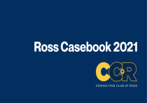 Ross Casebook 2021 1 Content I. Welcome • Case Writers 2021 II. How to Use the Ross 2021 Casebook • Case Interview Structure • Administering Cases III. Review Materials • Key Formulas • Industry Overview IV. 2021 Casebook Index 2 Welcome to the Ross 2021 Casebook! Dear CC@R Member, Welcome to the Ross 2021 Casebook. This book focuses on the case-interview portion of the consulting interview and is to be used in conjunction with other case-oriented club training materials. The elements tested in a case interview are core to firms’ hiring decisions. These cases, or mini-business problems, are a glimpse into a consultant’s life as they are frequently taken from real client experiences. Given practice and experience, cases become a natural way of thinking about how you would structure approaches and solutions to nearly any type of problem. Along the way, we hope you will find you enjoy solving problems in this manner and would enjoy performing this type of work for a living. In order to facilitate your preparation, your fellow club members have created the following cases with customized frameworks and solution elements. These cases act as a strong reference point for what to expect during a consulting interview but are in no way all encompassing. Since each case comes down to a conversation between the interviewer and the candidate, it is very plausible that one candidate could receive the same case from two different interviewers and have two very different conversations about the business problem. In fact, we encourage this. Finally, you may have noticed that you are reading this compilation in landscape format. This is intentional. Consultants think in terms of PowerPoint slides much more often than essay-style documents. They also constantly work to devise the most succinct way to illustrate and frame-out a problem, necessary action steps, and a solution. Good luck, and remember your fellow club members are here to help! 2021-2022 Board Consulting Club at Ross (CC@R) 3 Case Writers 2021-2022 This casebook would not be possible without the following members from the Ross Class of 2021. Thank you and Go Blue! Alan Boesing Danielle Eisenberg Brady Heidrick Tanuj Maheshwari Sai Masipeddi Erik Zorn 4 How to Use the Ross 2021 Casebook 5 Case Structure How to Case Understand the Question (~1-2 minutes) • LISTEN • Summarize the problem statement to make sure you understand the situation and objectives • Ask 3-4 clarifying questions around the topic and/or metrics to be used for the analysis • The questions posed should necessitate a short response Develop Framework (~1-2 minutes) • Ask for a moment to plan your structure • Develop 3-4 areas to analyze along with a few tailored subtopics • Structure the framework in a logical fashion – it should open with the most important topic and provide the interviewer with a roadmap of where you plan to take the case • Engage the interviewer by turning the framework towards them Exhibits, Analysis, Brainstorming (~25 minutes) • Refer back to the framework as you move through each of the main areas • Use one sheet of paper per topic – think of the case as a PowerPoint deck • Tie back each piece of analysis to the main objective/problem statement Form Recommendation (~1-2 minutes) • State your recommendation as a direct response to the problem/objective – it should not come as a surprise to the interviewer • Incorporate key metrics/ findings as a part of your recommendation • Include risks and next steps • Walk through the calculations /analysis, driving insights • Answer brainstorming questions using structure 6 Administering Cases Great case experiences are not solely determined by strong candidates formulating frameworks and solving math. The interviewer’s interaction with the candidate and ability to convey information will very easily change the style of a case. Given the interviewer’s position of power in the discussion, there are several things to keep in mind prior to, during, and after a case interview. Preparing for Interview • Read the case over 2-3 times • Familiarize yourself with the relevant numbers and details • Determine your ‘character’ • Rushed partner or disinterested client representative? • Prepare for how you will address irrelevant questions or requests for data you do not have • Make up fake data and let candidate go fishing, or let them know it is irrelevant? During Interview After Interview • Track time (about 25 minutes is average) - balance finishing case and letting candidate struggle • Provide feedback • Candidates can often think of very different approaches to cases. Before discounting questions as wrong, ask the candidate for their thinking... if it makes sense, go with it • Honestly let the candidate know strengths, but more importantly areas for improvement • Consider what a consultant would be looking for in the candidate • This is possibly the most critical step of the case interview process • Without honest feedback and constructive criticism, it is very difficult to improve • Presentation: can I put this person in front of a client? • Aptitude: can this person do the work? • Interest: does this person like what they are doing? 7 Key Formulas 8 Topic NPV or Valuing Money Over Time Formula Value to Perpetuity = n Value of Asset NPV = Discount Rate t=0 Time for Invested Principle = Rule of 72 ∑ r = Rate of Return (%) 72 r Inventory = Throughput x Flow Time Little’s Law Inventory Turns = Inventory COGS Average Inventory Days of Inventory = Inventory Turns * 365 Profitability π = Q (P-VC) - FC Breakeven Breakeven = Investment Price - Cost Margin Markup Annual Cash Flow (1 + r) t Gross Margin = Revenue - Cost Revenue Markup = Net Margin = Net Income Sales Revenue Price - Cost Cost 9 Topic Formula ROA = Return on Assets (ROA) Return on Equity (ROE) DuPont Analysis ROE = Net Income Total Assets Net Income ROE = Total Shareholders