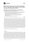 nutrients Article Kombucha Beverage from Green, Black and Rooibos Teas: A Comparative Study Looking at Microbiology, Chemistry and Antioxidant Activity Francesca Gaggìa 1 , Loredana Baffoni 1 , Michele Galiano 1 , Dennis Sandris Nielsen 2 , Rasmus Riemer Jakobsen 2 , Josue Leonardo Castro-Mejía 2 , Sara Bosi 1 , Francesca Truzzi 1 , Federica Musumeci 1 , Giovanni Dinelli 1 and Diana Di Gioia 1, * 1 2 * Department of Agricultural and Food Sciences (DISTAL), Alma Mater Studiorum-Università di Bologna, viale Fanin 42, 40127 Bologna, Italy; francesca.gaggia@unibo.it (F.G.); loredana.baffoni@unibo.it (L.B.); m.galiano@unibo.it (M.G.); sara.bosi@unibo.it (S.B.); francesca.truzzi3@unibo.it (F.T.); federica.musumeci2@unibo.it (F.M.); giovanni.dinelli@unibo.it (G.D.) Department of Food Science, Faculty of Science, University of Copenhagen, Rolighedsvej 26, 1958 Frederiksberg C, Denmark; dn@food.ku.dk (D.S.N.); rasmus@food.ku.dk (R.R.J.); jcame@food.ku.dk (J.L.C.-M.) Correspondence: diana.digioia@unibo.it; Tel.: +39-051-2096269 Received: 30 November 2018; Accepted: 18 December 2018; Published: 20 December 2018 Abstract: Kombucha is usually obtained from the fermentation of black or green tea by a consortium of acetic acid bacteria and yeasts. In this study, kombucha was prepared from the same starter consortium using green and black teas as well as, for the first time, an infusion of rooibos leaves (Aspalathus linearis). Microbial diversity was analysed during fermentation both in the biofilm and in the corresponding kombuchas, using culture-dependent and -independent methods. Polyphenols, flavonoids, ethanol, and acids were quantified and anti-oxidant activities were monitored. All of the Kombuchas showed similarity in bacterial composition, with the dominance of Komagataeibacter spp. Beta diversity showed that the yeast community was significantly different among all tea substrates, between 7 and 14 days of fermentation and between biofilm and kombucha, indicating the influence of the substrate on the fermenting microbiota. Kombucha from rooibos has a low ethanol concentration (1.1 mg/mL), and a glucuronic acid amount that was comparable to black tea. Although antioxidant activity was higher in black and green kombucha compared to rooibos, the latter showed an important effect on the recovery of oxidative damage on fibroblast cell lines against oxidative stress. These results make rooibos leaves interesting for the preparation of a fermented beverage with health benefits. Keywords: kombucha; rooibos; fermentation; oxidative stress 1. Introduction Kombucha is a traditional beverage usually obtained from the fermentation of black or green tea (sweetened with 5–8% of sugar) by a symbiotic microbial consortium, which is mainly composed of acetic acid bacteria (AAB) and osmophilic yeasts [1]. The peculiarity is that the microorganisms are embedded in a cellulose floating matrix that is produced by AAB. Recently, high-throughput sequencing (HTS) has deeply investigated the relative abundance of the microbial community that is involved in the fermentation of green and black teas [2,3]. In particular, authors reported the dominant presence of Komagataeibacter spp. and Acetobacter spp. and less than 1% of Lactobacillus spp., among bacteria; Zygosaccharomyces spp. and Brettanomyces spp. are the most abundant yeasts [2]. Kombucha is known for its nutraceutical properties and it has been consumed in Asia for thousands of years, with its preparation dating back approximately to 220 B.C. [4]; in the last ten years, the market interest Nutrients 2019, 11, 1; doi:10.3390/nu11010001 www.mdpi.com/journal/nutrients Nutrients 2019, 11, 1 2 of 22 has moved to the whole world [5], and also home brewing is now a common practice. Substrates, other than black and green teas, can also be used, such as Jerusalem artichoke tuber extracts, wine, milk, fruit juices, and plant infusions [6], bringing nutritional and health benefits that are based on the selected cultivation medium [7–9]. Kombucha analysis is mainly focused on the chemical compounds which confer to the fermented beverage its nutritional and antioxidant value. In particular, at the end of the fermentation process (10–20 days) at a temperature in the range of 20–30 ◦ C, Kombucha is rich in organic acids (acetic, glucuronic, gluconic acids), vitamins and tea polyphenols, and the low pH avoid bacterial contamination [6]. The beverage has a refreshing taste and consumers have the feeling that Kombucha is beneficial and improve digestion with a regular consumption [10]. Green and black tea have received considerable attention in recent years as functional beverages due to the high amount of functional compounds, such as polyphenols, flavonoids, and saponins [11]; polyphenols have been widely studied also in kombucha and they basically increase along the fermentation process [12–14]. The fermentation length, temperature, tea quality, sucrose concentration, and the fermenting microbial consortia strictly influence the chemical and anti-oxidant properties of the final beverage [6,10]. In particular, tea quality and composition varies with the species, season, age of the leaves (plucking position), climate, and horticultural practices [15,16], thus immediately influencing the polyphenols composition of teas and consequently of the fermented product. Moreover, the positive evidence in human health is difficult to show because of the difficulty to organize randomised and controlled intervention trials, which are also very expensive. However, several authors reported a wide spectrum of beneficial activities, studies in vitro or in animal models, including antimicrobial activity against foodborne and human pathogens, hepatic detoxification in rats, anti-inflammatory, hypocholesterolemic, anti-proliferative, and hypoglycemic activities [6,17]. To date, only one study has been applied in human subjects research, examining the health benefits of kombucha [18]. I