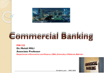 Commercial Banking FIN 323 Dr. Mehdi MILI Associate Professor Department of Economics and Finance, CBA, University of Bahrain, Bahrain. 1 Academic year 2022-2023 Chapter Five The Financial Statements of Banks and Their Principle Competitors 2 Intro Services that a financial institution offer and its overall size of each financial service organization are reflected in its financial statements. Financial statements is a road map telling us where a financial firm has been in the past, where it is now, and where it is headed in the future. It can signal success or disaster, if properly structured. 3 Balance sheet, and Income statements. An Overview of Balance Sheets and Income Statements Balance sheet: “Report of Condition” shows: -The - amount and composition of funds sources How much has been allocated to loans, securities and other uses. 5 An Overview of Balance Sheets and Income Statements Income Statement: “Report of Income” shows: - the revenues generated by selling services to the public. - Loans, leases and servicing customer deposits. How much it has cost to acquire funds and to generate revenues from the uses of the bank. 6 - Interest paid to depositors and other creditors, expenses for hiring management and staff, overhead, and taxes. - Net earnings after all costs are deducted from the sum of revenues. 7 The Balance Sheet: ( Report of Condition) Assets = Liabilities + Equity capital Assets Liabilities Cash in the vault and deposits held at other depository institutions ( C ) Deposits made by and owed to various customers (D) Government and private interest bearing securities purchased in the open market (S) Non-deposit borrowings of funds in the money and capital markets (NDB) Loans and lease financing made available to customers (L) Miscellaneous Assets (MA) Equity Capital Long term funds the owners contribute (EC) C +S+L+MA = D+NBD+EC 8 The Balance Sheet: ( Report of Condition) 9 The Balance Sheet: ( Report of Condition) Main Assets Components: • Cash assets (C) are designed to meet the financial firm’s need for liquidity • Security holdings (S) are a backup source of liquidity and include investments that provide a source of income • Loans (L) are made principally to supply income • Miscellaneous assets (MA) are usually dominated by fixed assets (plant and equipment) and investments in subsidiaries (if any) 10 The Balance Sheet: ( Report of Condition) Main Liabilities Components: Deposits (D) are typically the main source of funding for banks Non-deposit borrowings (NDB) are carried out mainly to supplement deposits and provide the additional liquidity that cash assets and securities cannot provide 11 The Balance Sheet: ( Report of Condition) Equity Capital: Equity capital (EC) supplies the long-term, relatively stable base of financial support upon which the financial firm will rely to grow and to cover any extraordinary losses it incurs 12 The Balance Sheet: ( Report of Condition) Liabilities and equity capital = accumulated sources of funds Which provide the needed spending power to acquire assets A bank’s assets = accumulated uses of funds Which are made to generate income for its stockholders, pay interest to its depositors, and compensate its employees for their labor and skill 13 The Balance Sheet: ( Report of Condition) TABLE 5–2 Highlighted Bank Financial Data ($ million) from the FDIC (December 31, 2009) 14 The Balance Sheet: ( Report of Condition) TABLE 5–3 Report of Condition (Balance Sheet) for BB&T (Year-End 2008 and 2009) 15 The Balance Sheet: ( Report of Condition) Assets of the Banking Firm 16 The Balance Sheet: ( Report of Condition) 1. Cash Assets Account is called Cash and Deposits Due from Bank ▫ Includes: ▫ ▫ ▫ ▫ Vault Cash Deposits with Other Banks (Correspondent Deposits) Cash Items in Process of Collection Reserve Account with the Central Bank ▫ Sometimes called primary reserves ▫ First line of defense against customer loan requests ▫ Banks will strive to keep the size of this account as low as possible. Why? 17 The Balance Sheet: ( Report of Condition) 2. Investment Securities - The Liquid Portion ▫ ▫ ▫ ▫ Second line of defense to meet the demand for cash Sometimes called available for sale Short Term Government Securities Privately Issued Money Market Securities ▫ Interest Bearing Time Deposits ▫ Commercial Paper ▫ Often called secondary reserves ▫ They earn some income, but mainly held for liquidity purposes. 18 The Balance Sheet: ( Report of Condition) 3. Investment Securities - The Income-Generating Portion ▫ Sometimes called “ held to maturity securities” ▫ Can be divided into: ▫ Taxable Securities ▫ Government Notes ▫ Government Agency Securities ▫ Corporate Bonds ▫ Tax-Exempt Securities ▫ Municipal Bonds ▫ Recorded in the books at their original cost or at market value whichever is lower. 19 The Balance Sheet: ( Report of Condition) 4. Trading Account Assets Securities purchased to provide short-term profits from short-term price movements Occurs when the bank acts as a securities dealer. How? Valued at Market – FASB 115 20 The Balance Sheet: ( Report of Condition) 5. Central Bank Sold and Reverse Repurchase Agreements - Temporary loans (usually extended overnight, with the funds returned the next day) made to other depository institutions, securities dealers, or major industrial corporations - Often come from the reserves a bank has on deposit with the Federal Reserve Bank in its district ▫ “Fed funds” 21 Some of these temporary credits are extended in the form of reverse repurchase (resale) agreements (RPs) in which the banking firm acquires temporary title to securities owned by the borrower and holds those securities as collateral until the loan is paid off 22 The Balance Sheet: ( Report of Condition) 6. Loans and leases The Major Asset – half to three quarters of the total assets Broken down to several groups of similar type Commonly grouped by the purp