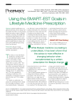 905775 review-article2020 AJLXXX10.1177/1559827620905775American Journal of Lifestyle MedicineAmerican Journal of Lifestyle Medicine vol. 14 • no. 3 American Journal of Lifestyle Medicine Nicole D. White, PharmD, CDE, NBC-HWC, DipACLM, Vicki Bautista, EdD, NBC-HWC, Thomas Lenz, PharmD, FACLM, and Amy Cosimano, EdD, RN, NBC-HWC Using the SMART-EST Goals in Lifestyle Medicine Prescription Abstract: Lifestyle modifications can effectively decrease chronic disease risk but studies show little to no time during patient encounters is spent on lifestyle medicine counseling. The SMART-EST goal framework facilitates both a rich discussion of lifestyle medicine and a comprehensive patient-centered action plan for health behavior change. The tenets of the SMART-EST goal-setting process are discussed. Keywords: behavior change; goal setting; SMART goals; lifestyle medicine; prescription T he evidence is clear that lifestyle modifications, including wholefood plant-based nutrition, regular exercise, and avoidance of risky substance use can reduce chronic disease risk by as much as 90%.1,2 But evoking positive behavior change in a time where environmental barriers and social norms that encourage unhealthy habits prevail presents a significant challenge. In fact, it is estimated that only 37.9% of the population is consuming a healthy diet, 46.5% obtaining the recommended amount of physical activity, and 71.5% avoiding tobacco.3 As a health care professional, one approach to promoting behavior change lies in providing counseling or advice about healthy lifestyles. Unfortunately, very little time is spent providing lifestyle medicine information, if it is discussed at all. Studies have shown only about 32% of patients receive physical activity counseling from their physician, 28% of smokers reported their provider offered assistance in cessation, and, on average, less than 1 minute of a patient encounter is spent talking about diet, exercise, or smoking.4-6 While lifestyle medicine counseling is underutilized, it has been a goal-setting framework that can be used to generate a patient-centered lifestyle prescription that incorporates evidence-based lifestyle medicine recommendations and health behavior change theories. SMART-EST Goal Setting The concept of SMART goals is not new. As it relates to health behavior While lifestyle medicine counseling is underutilized, it has been shown that this advice is more effective in changing behavior when complemented by a written prescription for lifestyle change. shown that this advice is more effective in changing behavior when complemented by a written prescription for lifestyle change.7 There is limited published guidance in writing effective lifestyle medicine prescriptions. That which does exist, often focuses on a single aspect of lifestyle medicine and does not always take into account patient motivation or environmental barriers. These influences can easily shroud provider advice when not considered. The following describes change, goals should be specific, measurable, achievable, relevant, and time-bound.8 The SMART-EST goals are also evidence-based, strategic, and tailored to the patient. The SMART-EST goal characteristics can be applied to a lifestyle medicine prescription. Once a patient demonstrates interest in engaging in a lifestyle modification to improve their health, providers can use the SMART-EST goal-setting process to assist the patient in generating a written action plan. DOI: 10.1177/1559827620905775. From Creighton University School of Pharmacy and Health Professions, Omaha, Nebraska. Address correspondence to Nicole D. White, PharmD, CDE, NBC-HWC, DipACLM, Creighton University School of Pharmacy and Health Professions, 2500 California Plaza, Omaha, NE 68178; e-mail: nicolewhite@ creighton.edu. https://doi.org/ For reprints and permissions queries, please visit SAGE’s Web site at www.sagepub.com/journals-permissions. Copyright © 2020 The Author(s) 271 May • Jun 2020 American Journal of Lifestyle Medicine The prescription should be specific. It is easy to advise patients to “work on their diet and exercise.” But this counseling lacks important information like how much and what types of activity the patient should engage in, what constitutes a healthy diet, and which changes are most pertinent to the patient and their objectives. To create specific goals, action words or phrases should be used to describe what the patient will do and additional clarification about type and amount should be included. For instance, walk 30 minutes daily, meditate 10 minutes each morning, sleep 7 hours per night, or consume 5 servings of fruits and vegetables daily. The prescription should be measurable. It is hard to assess for progress if a goal is not easily measured. The measure should be a number, percent, or some standard unit used to illustrate success over time. For example, how many minutes per day will the patient walk or what percent of their meals each week will be plant based. The prescription should be attainable. While the physical activity guidelines for Americans recommend 150 minutes of activity per week, this may be an unreasonable goal for a sedentary, deconditioned patient. Setting an initial goal that is more realistic for the patient would be more appropriate. Goals should also consider the patient’s resources and stated barriers. A patient living paycheck to paycheck is not likely to engage a personal trainer, just as a patient with significant osteoarthritis of the knee is not likely to run stadium stairs for exercise. The prescription should be relevant to the patient. Is the targeted behavior likely to evoke the change the patient wishes to achieve? For example, if the patient is concerned with decreasing their cholesterol levels, it may be better to focus on a reduction in consumption of animal products rather than an increase in mindful meditation. When creating an action plan, it is important that the provider is expl