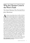 Why the Ukraine Crisis Is the West’s Fault The Liberal Delusions That Provoked Putin John J. Mearsheimer A ccording to the prevailing wisdom in the West, the Ukraine crisis can be blamed almost entirely on Russian aggression. Russian President Vladimir Putin, the argument goes, annexed Crimea out of a long-standing desire to resuscitate the Soviet empire, and he may eventually go after the rest of Ukraine, as well as other countries in eastern Europe. In this view, the ouster of Ukrainian President Viktor Yanukovych in February 2014 merely provided a pretext for Putin’s decision to order Russian forces to seize part of Ukraine. But this account is wrong: the United States and its European allies share most of the responsibility for the crisis. The taproot of the trouble is NATO enlargement, the central element of a larger strategy to move Ukraine out of Russia’s orbit and integrate it into the West. At the same time, the EU’s expansion eastward and the West’s backing of the pro-democracy movement in Ukraine—beginning with the Orange Revolution in 2004—were critical elements, too. Since the mid1990s, Russian leaders have adamantly opposed NATO enlargement and in recent years, they have made it clear that they would not stand by while their strategically important neighbor turned into a Western bastion. For Putin, the illegal overthrow of Ukraine’s democratically elected and pro-Russian president—which he rightly labeled a “coup”—was the final straw. He responded by taking Crimea, a peninsula he feared would host a NATO naval base, and working to destabilize Ukraine until it abandoned its efforts to join the West. Putin’s pushback should have come as no surprise. After all, the West had been moving into Russia’s backyard and threatening its core JOHN J. MEARSHEIMER is R. Wendell Harrison Distinguished Service Professor of Political Science at the University of Chicago. September/October 2014 1 John J. Mearsheimer strategic interests, a point Putin made emphatically and repeatedly. Elites in the United States and Europe have been blindsided by events only because they subscribe to a flawed view of international politics. They tend to believe that the logic of realism holds little relevance in the twenty-first century and that Europe can be kept whole and free on the basis of such liberal principles as the rule of law, economic interdependence, and democracy. But this grand scheme went awry in Ukraine. The crisis there shows that realpolitik remains relevant—and states that ignore it do so at their own peril. U.S. and European leaders blundered in attempting to turn Ukraine into a Western stronghold on Russia’s border. Now that the consequences have been laid bare, it would be an even greater mistake to continue this misbegotten policy. THE WESTERN AFFRONT As the Cold War came to a close, Soviet leaders preferred that U.S. forces remain in Europe and NATO stay intact, an arrangement they thought would keep a reunified Germany pacified. But they and their Russian successors did not want NATO to grow any larger and assumed that Western diplomats understood their concerns. The Clinton administration evidently thought otherwise, and in the mid-1990s, it began pushing for NATO to expand. The first round of enlargement took place in 1999 and brought in the Czech Republic, Hungary, and Poland. The second occurred in 2004; it included Bulgaria, Estonia, Latvia, Lithuania, Romania, Slovakia, and Slovenia. Moscow complained bitterly from the start. During NATO’s 1995 bombing campaign against the Bosnian Serbs, for example, Russian President Boris Yeltsin said, “This is the first sign of what could happen when NATO comes right up to the Russian Federation’s borders. . . . The flame of war could burst out across the whole of Europe.” But the Russians were too weak at the time to derail NATO’s eastward movement—which, at any rate, did not look so threatening, since none of the new members shared a border with Russia, save for the tiny Baltic countries. Then NATO began looking further east. At its April 2008 summit in Bucharest, the alliance considered admitting Georgia and Ukraine. The George W. Bush administration supported doing so, but France and Germany opposed the move for fear that it would unduly antagonize Russia. In the end, NATO’s members reached a compromise: the 2 F O R E I G N A F FA I R S Why the Ukraine Crisis Is the West’s Fault alliance did not begin the formal process leading to membership, but it issued a statement endorsing the aspirations of Georgia and Ukraine and boldly declaring, “These countries will become members of NATO.” Moscow, however, did not see the outcome as much of a compromise. Alexander Grushko, then Russia’s deputy foreign minister, said, “Georgia’s and Ukraine’s membership in the alliance is a huge strategic mistake which would have most serious consequences for pan-European U.S. and European leaders security.” Putin maintained that admitting those two countries to NATO would blundered in attempting to represent a “direct threat” to Russia. turn Ukraine into a One Russian newspaper reported that Western stronghold on Putin, while speaking with Bush, “very transparently hinted that if Ukraine Russia’s border. was accepted into NATO, it would cease to exist.” Russia’s invasion of Georgia in August 2008 should have dispelled any remaining doubts about Putin’s determination to prevent Georgia and Ukraine from joining NATO. Georgian President Mikheil Saakashvili, who was deeply committed to bringing his country into NATO, had decided in the summer of 2008 to reincorporate two separatist regions, Abkhazia and South Ossetia. But Putin sought to keep Georgia weak and divided—and out of NATO. After fighting broke out between the Georgian government and South Ossetian separatists, Russian forces took control of Abkhazia and South Ossetia. Moscow had made its point. Yet despite this clear warning, N