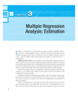 CHAPTER 3 Multiple Regression Analysis: Estimation I n Chapter 2, we learned how to use simple regression analysis to explain a dependent variable, y, as a function of a single independent variable, x. The primary drawback in using simple regression analysis for empirical work is that it is very difficult to draw ceteris paribus conclusions about how x affects y: the key assumption, SLR.4—that all other factors affecting y are uncorrelated with x—is often unrealistic. Multiple regression analysis is more amenable to ceteris paribus analysis because it allows us to explicitly control for many other factors that simultaneously affect the dependent variable. This is important both for testing economic theories and for evaluating policy effects when we must rely on nonexperimental data. Because multiple regression models can accommodate many explanatory variables that may be correlated, we can hope to infer causality in cases where simple regression analysis would be misleading. Naturally, if we add more factors to our model that are useful for explaining y, then more of the variation in y can be explained. Thus, multiple regression analysis can be used to build better models for predicting the dependent variable. An additional advantage of multiple regression analysis is that it can incorporate fairly general functional form relationships. In the simple regression model, only one function of a single explanatory variable can appear in the equation. As we will see, the multiple regression model allows for much more flexibility. Section 3-1 formally introduces the multiple regression model and further discusses the advantages of multiple regression over simple regression. In Section 3-2, we demonstrate how to estimate the parameters in the multiple regression model using the method of ordinary least squares. 66 58860_ch03_hr_066-116.indd 66 10/18/18 4:22 PM CHAPTER 3 Multiple Regression Analysis: Estimation 67 In Sections 3-3, 3-4, and 3-5, we describe various statistical properties of the OLS estimators, including unbiasedness and efficiency. The multiple regression model is still the most widely used vehicle for empirical analysis in economics and other social sciences. Likewise, the method of ordinary least squares is popularly used for estimating the parameters of the multiple regression model. 3-1 Motivation for Multiple Regression 3-1a The Model with Two Independent Variables We begin with some simple examples to show how multiple regression analysis can be used to solve problems that cannot be solved by simple regression. The first example is a simple variation of the wage equation introduced in Chapter 2 for obtaining the effect of education on hourly wage: wage 5 b0 1 b1educ 1 b2exper 1 u, [3.1] where exper is years of labor market experience. Thus, wage is determined by the two explanatory or independent variables, education and experience, and by other unobserved factors, which are contained in u. We are still primarily interested in the effect of educ on wage, holding fixed all other factors affecting wage; that is, we are interested in the parameter b1. Compared with a simple regression analysis relating wage to educ, equation (3.1) effectively takes exper out of the error term and puts it explicitly in the equation. Because exper appears in the equation, its coefficient, b2, measures the ceteris paribus effect of exper on wage, which is also of some interest. Not surprisingly, just as with simple regression, we will have to make assumptions about how u in (3.1) is related to the independent variables, educ and exper. However, as we will see in Section 3-2, there is one thing of which we can be confident: because (3.1) contains experience explicitly, we will be able to measure the effect of education on wage, holding experience fixed. In a simple regression analysis—which puts exper in the error term—we would have to assume that experience is uncorrelated with education, a tenuous assumption. As a second example, consider the problem of explaining the effect of per-student spending (expend) on the average standardized test score (avgscore) at the high school level. Suppose that the average test score depends on funding, average family income (avginc), and other unobserved factors: avgscore 5 b0 1 b1expend 1 b2avginc 1 u. [3.2] The coefficient of interest for policy purposes is b1, the ceteris paribus effect of expend on avgscore. By including avginc explicitly in the model, we are able to control for its effect on avgscore. This is likely to be important because average family income tends to be correlated with per-student spending: spending levels are often determined by both property and local income taxes. In simple regression analysis, avginc would be included in the error term, which would likely be correlated with expend, causing the OLS estimator of b1 in the two-variable model to be biased. In the two previous similar examples, we have shown how observable factors other than the variable of primary interest [educ in equation (3.1) and expend in equation (3.2)] can be included in a regression model. Generally, we can write a model with two independent variables as y 5 b0 1 b1x1 1 b2x2 1 u, [3.3] where b0 is the intercept. b1 measures the change in y with respect to x1, holding other factors fixed. b2 measures the change in y with respect to x2, holding other factors fixed. 58860_ch03_hr_066-116.indd 67 10/18/18 4:22 PM 68 PART 1 Regression Analysis with Cross-Sectional Data Multiple regression analysis is also useful for generalizing functional relationships between variables. As an example, suppose family consumption (cons) is a quadratic function of family income (inc): cons 5 b0 1 b1inc 1 b2inc2 1 u, [3.4] where u contains other factors affecting consumption. In this model, consumption depends on only one observed factor, income; so it might seem that it can be handled in a simple regression framework. But the model falls outside simple regression because it con