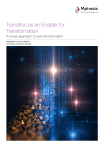 Transition as an Enabler for Transformation A novel approach to fuel transformation Whitepaper by Anand Sharma AVP, Head of Transition Practice Contents 1. Abstract 1 2. Key Needs of a Transformation Journey 2 3. How Transition can be Leveraged for Transformation 3 3.1 Demand a SWAT team from specialized vendors during due diligence 3 3.2 Bring in organizational motivation through shake-up during transition 3 3.3 Ideas on how OPEX savings can fund CAPEX in the long run 4 3.4 Understand the gaps in process – an outsider view 5 3.5 Enrich and complement missing knowledge – key to technology transformation 5 4. Conclusion 5 5. Author 6 1. Abstract – Setting the Context Digital Transformation - or just transformation, for ease - is a buzz word that has gripped most businesses. From being a buck-maker in the past, it has now turned into a survival technique in the market. From the change maker, it is now the business sustainer in a world of humongous competition. No longer is it an obscure activity performed by a niche group in an organization - it is now part and parcel of every unit within an organization. From a part time and period activity, it is now a full-time continuous journey of improvement. ‘Transformation’ has arrived - and is the new normal. With organizations needing to bring in transformation to achieve higher goals, the key questions typically asked by senior management are: • What is the right time to do it? • How guaranteed are the results, given the cost involved? • Can I do all this in-house or do I need help? Through collaboration with clients in various industries, domains and geographies, Mphasis has been bringing value by educating, consulting, defining and running successful long-term transformation programs. Programs that have revived businesses, expanded existing business, optimized expenditure, and exponentially enhanced customer satisfaction levels. Transformations are most successful when we have conducive environment, top management focus, organizational appetite to experiment and an attitude to embrace change. Transformations are relevant to all businesses, small or big, and they are better when adopted voluntarily – rather than being forced to adapt reactively by market conditions or competition. Vendor transitions are integral part of IT outsourcing. Given the outsourcing successes and time-tested benefits leveraged, the IT journey of most organizations are dotted with large-scale transitions in their pursuit to get the best-fit technology and domain partners to run the bread-and-butter businesses. At Mphasis, we have observed that large scale transitions can be great pathways to bring in strategic transformation. That is why, typically, we have transition and transformation teams working in tandem to bring in large scale changes to secure and enhance future businesses. In this whitepaper, I would like to bring out a few key aspects of how a transition program can help fuel transformative changes in an organization - and discuss some levers that we have deployed at Mphasis to achieve transformation for our clients. Transition programs are executed in all forms and sizes and I will focus on large-scale transitions that encompass and impact a large portion of the IT landscape of a client organization. | 1 2. Key Needs of a Transformation Journey Transformation is a broad set of activities performed to deploy digital technologies in adding business value to an organization – such as venturing into new businesses, improvising and expanding existing businesses, increasing customer satisfaction, and effecting changes in business. Transformation brings about a new baseline of business-IT alignment that focuses to increase efficiency, reduce waste and to get ready to face the changing world around us more effectively. There is a general apprehension about transformation till the transition to vendors is completed. The reality, however, is different when you get to the core aspects of transformation needs. We will delve more into this in the subsequent sections. The ground principles that an organization needs to be equipped with to realize its transformation dreams are given in the figure below. Need top management support - for financial support and decision making Behavioral change - organizational readiness to embrace a change Participation and support from all major stakeholders in an organization Experts who can bring in the knowledge with an eye to missing details Unsettling obsession to make things better and better with time Periodic monitoring and tollgates to quantify measurable outcomes Attitude to experiment - Appetite of senior management for new way of working Need a shift from ‘set ways of thinking’ Fig. 1 – Principles of transformation As shown in Fig.1 transition programs that bring in an organizational mindset for change will create a conducive period where seeds of transformation can be sown for better success rate for transformation. While transition turbulences may rock the transformation boat at times, it is better to rain changes than drizzle. Let us say the top management has decided to bring in an expert partner to take over their bread and butter IT, Application, Infrastructure, BPO Services (some or all of them). They have also planned for their change management function to take their people along the path of change. Here is where the transition partner can bring in value to ensure that a transformation focus is brought in early in the game, and deploy the transition apparatus to fuel transformation. The following sections will discuss some key levers that will help in achieving these objectives. 2 | 3. How Transition can be Leveraged for Transformation Change begets bigger changes and better ideas – especially in organizations trying to leverage technology for higher performance. We will look at various facets of how transition can be a major contributor in bringing transformative changes in an organization. De