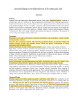 Revised Syllabus to be followed from JEE (Advanced) 2023 PHYSICS General General Units and dimensions, dimensional analysis; least count, significant figures; Methods of measurement and error analysis for physical quantities pertaining to the following experiments: Experiments based on using Vernier calipers and screw gauge (micrometer), Determination of g using simple pendulum, Young’s modulus - elasticity of the material Surface tension of water by capillary rise and effect of detergents. Specific heat of a liquid using calorimeter, focal length of a concave mirror and a convex lens using u-v method, Speed of sound using resonance column, Verification of Ohm’s law using voltmeter and ammeter, and specific resistance of the material of a wire using meter bridge and post office box. Mechanics Kinematics in one and two dimensions (Cartesian coordinates only), projectiles; Uniform circular motion; Relative velocity. Newton’s laws of motion; Inertial and uniformly accelerated frames of reference; Static and dynamic friction; Kinetic and potential energy; Work and power; Conservation of linear momentum and mechanical energy. Systems of particles; Centre of mass and its motion; Impulse; Elastic and inelastic collisions. Rigid body, moment of inertia, parallel and perpendicular axes theorems, moment of inertia of uniform bodies with simple geometrical shapes; Angular momentum; Torque; Conservation of angular momentum; Dynamics of rigid bodies with fixed axis of rotation; Rolling without slipping of rings, cylinders and spheres; Equilibrium of rigid bodies; Collision of point masses with rigid bodies. Forced and damped oscillation (in one dimension), resonance. Linear and angular simple harmonic motions. Hooke’s law, Young’s modulus. Law of gravitation; Gravitational potential and field; Acceleration due to gravity; Kepler’s law, Geostationary orbits, Motion of planets and satellites in circular orbits; Escape velocity. Pressure in a fluid; Pascal’s law;Buoyancy; Surface energy and surface tension, angle of contact, drops, bubbles and capillary rise. Viscosity (Poiseuille’s equation excluded), Modulus of rigidity and bulk modulus in mechanics. Stoke’s law; Terminal velocity, Streamline flow, equation of continuity, Bernoulli’s theorem and its applications. Wave motion (plane waves only), longitudinal and transverse waves, superposition of waves; Progressive and stationary waves; Vibration of strings and air columns; Resonance; Beats; Speed of sound in gases; Doppler effect (in sound) Thermal Physics Thermal expansion of solids, liquids and gases; Calorimetry, latent heat; Heat conduction in one dimension; Elementary concepts of convection and radiation; Newton’s law of cooling; Ideal gas laws; Specific heats (Cv and Cp for monoatomic and diatomic gases); Isothermal and adiabatic processes, bulk modulus of gases; Equivalence of heat and work; First law of thermodynamics and its applications (only for ideal gases); Second law of thermodynamics, reversible and irreversible processes, Carnot engine and its efficiency; Blackbody radiation: absorptive and emissive powers; Kirchhoff’s law; Wien’s displacement law, Stefan’s law. 1 Electricity and Magnestism Coulomb’s law; Electric field and potential; Electrical potential energy of a system of point charges and of electrical dipoles in a uniform electrostatic field; Electric field lines; Flux of electric field; Gauss’s law and its application in simple cases, such as, to find field due to infinitely long straight wire, uniformly charged infinite plane sheet and uniformly charged thin spherical shell. Capacitance; Parallel plate capacitor with and without dielectrics; Capacitors in series and parallel; Energy stored in a capacitor. Electric current; Ohm’s law; Series and parallel arrangements of resistances and cells; Kirchhoff’s laws and simple applications; Heating effect of current. Biot–Savart’s law and Ampere’s law; Magnetic field near a current-carrying straight wire, along the axis of a circular coil and inside a long straight solenoid; Force on a moving charge and on a current-carrying wire in a uniform magnetic field. Magnetic moment of a current loop; Effect of a uniform magnetic field on a current loop; Moving coil galvanometer, voltmeter, ammeter and their conversions. Electromagnetic induction: Faraday’s law, Lenz’s law; Self and mutual inductance; RC, LR, LC and LCR(in series) circuits with d.c. and a.c. sources. Electromagtic Waves Electromagnetic waves and their characteristics. Electromagnetic spectrum (radio waves, microwaves, infrared, visible, ultraviolet, x-rays, gamma rays) including elementary facts about their uses. Optics Rectilinear propagation of light; Reflection and refraction at plane and spherical surfaces; Total internal reflection; Deviation and dispersion of light by a prism; Thin lenses; Combinations of mirrors and thin lenses; Magnification. Wave nature of light: Huygen’s principle, interference limited to Young’s double slit experiment. Diffraction due to a single slit. Polarization of light, plane polarized light; Brewster's law, Polaroids. Modern Physics Atomic nucleus; α, β and γ radiations; Law of radioactive decay; Decay constant; Half-life and mean life; Binding energy and its calculation; Fission and fusion processes; Energy calculation in these processes. Photoelectric effect; Bohr’s theory of hydrogen-like atoms; Characteristic and continuous X-rays, Moseley’s law; de Broglie wavelength of matter waves. 2 Revised Syllabus to be followed from JEE (Advanced) 2023 CHEMISTRY General Topics Concept of atoms and molecules; Dalton’s atomic theory; Mole concept; Chemical formulae; Balanced chemical equations; Calculations (based on mole concept and stoichiometry) involving common oxidation-reduction, neutralisation, and displacement reactions; Concentration in terms of mole fraction, molarity, molality and normality. States of Matter: Gases and Liquids Gas l