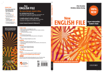 all the elements that ‘Ithavehasmade the series such a successful one. ’ ● Grammar Bank with rules and exercises p.132 ● Illustrated Vocabulary Bank p.146 and Sound Bank p.158 ● Colloquial English focus on everyday language p.32 Fun, motivating lessons that work The perfect balance of grammar, vocabulary, pronunciation, and skills to help your students use English really effectively. A complete package for teachers and students The Teacher’s Book gives you the support you need, and all the components work together for more effective learning. Common European Framework of Reference B2 Teacher’s Book ● ● ● ● Full notes, with extras highlighted in colour. Photocopiable Grammar, Communicative, and Vocabulary activities. A song in every File. A Test and Assessment CD-ROM. iPack ● ● New digital teaching material. For use with interactive whiteboards, projectors, and computers. DVD ● 100% NEW New ENGLISH FILE Upper-intermediate Student’s Book Upper-intermediate English Sounds Pronunciation Chart based on an original idea and design by Paul Seligson and Carmen Dolz The course that gets students talking Student’s Book Motivating, real-world texts p.84 ENGLISH FILE Clive Oxenden Christina Latham-Koenig FILE ● New ENGLISH Student’s Book New Brings the Colloquial English lessons to life. MultiROM ● ● ● Home-study CD-ROM and audio CD in one. Grammar, vocabulary, pronunciation, video, dictation, and exam practice. Extra listening. Workbook ● Lesson by lesson revision and practice. Available with or without Key Booklet. Class audio ● Four CDs of class listening material. Website ● Interactive exercises, games, and downloadable material at: www.oup.com/elt/englishfile/upper-intermediate Study Link Look out for the Study Link logo throughout the course. This shows links between components to make teaching and learning more effective. NEF UPPER-INT SB Cover.indd 1 www.oup.com/elt/englishfile/upper-intermediate oxford english ISBN 978-0-19-451842-0 9 780194 518420 2 WWWOUPCOMELT Oxenden Latham-Koenig ● 2 29/10/08 11:14:37 Clive Oxenden Christina Latham-Koenig New ENGLISH FILE Upper-intermediate Student’s Book Paul Seligson and Clive Oxenden are the original co-authors of English File 1 (pub. 1996) and English File 2 (pub. 1997). 1 1 4 Contents Grammar Vocabulary Pronunciation A Q and A revision: question formation working out meaning from context intonation, stress, and rhythm in questions 8 B Do you believe it? auxiliary verbs; the…the… + comparatives personality using a dictionary to check word stress; intonation and sentence rhythm 12 C You’re the doctor! present perfect (simple and continuous) illness and treatment consonant and vowel sounds 16 COLLOQUIAL E NGLISH What does the future hold? 17 WRITING An informal email / letter 18 R EVISE & C HECK What do you remember? What can you do? A National stereotypes: truth or myth? Pronunciation using adjectives as nouns, adjective order clothes and fashion What do you remember? What can you do? burglar won’t look confusing adverbs and adverbial phrases crime and punishment expressions with take sentence stress and rhythm 4 52 A Would you get out alive? unreal conditionals feelings sentence rhythm 56 B How I trained my husband past modals; would rather, had better verbs often confused weak form of have 60 C Let your body do the verbs of the senses the body silent letters 64 COLLOQUIAL E NGLISH Stage and screen 65 WRITING An article 66 R EVISE & C HECK What do you remember? What can you do? 81 WRITING A formal letter 82 R EVISE & C HECK What do you remember? What can you do? 96 COLLOQUIAL E NGLISH Great cities 97 WRITING A report 98 R EVISE & C HECK What do you remember? What can you do? 100 A I wish you wouldn’t...! structures after wish -ed / -ing adjectives and related verbs; expressions with go sentence rhythm 104 B A test of honesty clauses of contrast and purpose; whatever, whenever, etc. business and advertising changing stress in nouns and verbs 108 C Tingo relative clauses prefixes word stress the letter u conditionals and future time clauses; likely and probably talking COLLOQUIAL E NGLISH Music festivals changing stress in word families C Taking a risk What do you remember? What can you do? 80 science 44 R EVISE & C HECK word stress quantifiers: all / every, etc. vowel sounds 50 the media C Eureka! weather Expressing your opinion reporting verbs; as 92 future perfect and future continuous WRITING C Breaking news word stress in multi-syllable words B Stormy weather 49 76 towns and cities 40 COLLOQUIAL E NGLISH High risk? linking words 7 passive (all forms), it is said that…, he is thought to…, etc. 48 sleep uncountable and plural nouns; have something done 3 A The one place a used to, be used to, get used to B Bright lights, big city word and sentence stress R EVISE & C HECK B Counting sheep 88 adverbs and adverbial phrases 34 72 vowel sounds C Incredibly short stories A short story ch and y sentence stress 28 WRITING music collocation: word pairs irregular past forms 33 gerunds and infinitives articles narrative tenses, past perfect continuous; air travel so / such…that COLLOQUIAL E NGLISH Flying high A The psychology of music A Speaking to the world B Air travel: the inside story 32 68 84 24 36 Vocabulary 6 2 20 Grammar 5 112 COLLOQUIAL E NGLISH Words 113 WRITING ‘For and against’ 114 R EVISE & C HECK What do you remember? What can you do? 116 Communication 121 Listening 132 Grammar Bank 146 Vocabulary Bank Look out for 157 Phrasal verbs in context 158 Sound Bank This shows you where to find extra material for more practice and revision. Study Link 1 A G revision: question formation V working out meaning from context P intonation, stress, and rhythm in questions 2 P R O N U N C IATI O N intonation, stress, and rhythm in questions Using the right intonation or tone helps you to sound friendly and interested when you speak English. Stressing the right words in a sentence helps you