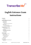 English Entrance Exam Instructions Introduction 2 Contact Us 2 Validity of Registration Information 3 Age Requirement 3 Full Legal Name 3 WorkHub Email 3 Change of Email or PayPal Address 3 PayPal Address 3 Official Photo Identification 4 Troubleshooting Uploading the ID Fraudulent Activity - Cheating 4 4 Duplicate Accounts 4 Account Deletion Requests 5 False Names 5 Authenticity of Exam Answers 5 Exam Rules 5 Account Security 5 Before You Begin 6 Browser (Chrome or Brave) 6 Keyboard Settings 6 Set Aside Plenty of Time 6 Saving Your Exam 6 Final Preparations 6 Helpful Tips 7 Exam Interface 7 DO NOT Paste from Outside Sources 7 Instructions 7 Updated 12-Oct-2020 Confidential Property of TranscribeMe! Entrance Exam 1 of 12 Audio Player 8 Hotkeys 8 Foot Pedal 8 Attempting the Exam 8 Exam Sections: Must Pass Each Section to Proceed 8 Saving Your Exam Progress 9 DON'T Exit Before Completing a Section 9 The Results Page 9 Retries 10 Q: Why can't I only retry the question(s) that I failed? 10 Audio Results 10 The Complete Exam Button 10 Completed Exam 11 Failed Attempt 11 No Feedback 11 Number of Attempts & Waiting Period 11 After Your Second Failed Attempt 12 Passing the English Entrance Exam 12 Upon Activation 12 Questions or Concerns 12 Introduction Note that this document contains information specifically for the English Entrance Exam. Please make sure you are always following the correct documents for the exams and the work you are completing. Hello, and thank you for your interest in TranscribeMe! This document has been created to guide you through the process of taking TranscribeMe's E nglish Entrance Exam, which will open up work opportunities to transcribe chunks of audio files as they are uploaded by our clients around the globe, at rates starting at US$15 per audio hour. Please be sure to carefully read each section of this document before attempting the exam. If you run into issues, you are always welcome to contact us, but note that you will be directed back to this document if your answer lies therein. Contact Us If you need to get in touch with our team, you can do so by submitting a ticket to our Help Desk using the purple beacon at the bottom right of your WorkHub screen. You can also email us at training@transcribeme.com. Updated 12-Oct-2020 Confidential Property of TranscribeMe! EEE Instructions 2 of 12 Validity of Registration Information It is imperative that your registration information be valid and correct. Failure to adhere to the following guidelines may put your account status in jeopardy. If you have already registered, carefully read over this information to be sure you have not made any errors in registering. Age Requirement You must be 1 8 years of age or older in order to work with us. Full Legal Name We require that you register with your legal name, that is to say, your first and last names that appear on your government-issued ID. D o not use a nickname or your initials. If we see that your legal name has not been used, we will request that you update your information, which will slow down your activation process. Your account will be closed if you have used a fabricated name. If you have already registered with a name that is not your legal name, please update your information through the My Account tab located at the top of your page before attempting the Exam. Through this tab, you will be able to see all of the information you registered with. Please take a moment to verify that all of this information is correct. You can edit your information from there, except for your WorkHub email and PayPal addresses (if you have input a PayPal address, you cannot edit it; but if you have not yet input a PayPal, you may add one on this page). WorkHub Email We are only able to contact you by email, so it is critical that you have registered with us using a valid, unrestricted email address. If we receive a message that our correspondence bounces from your account or you are unreachable, we will close your account. That means that if you are using an email filtering service (such as BitBounce), we will not be able to contact you and your account will be closed. Also please note that our first few emails after your account has been activated may be directed to your S pam, Promotional, or Updates folders. For this reason, please make sure to regularly check all of your email folders. Change of Email or PayPal Address If you wish to change your email or PayPal address, please c ontact us so that we can assist you in updating your email. You will not be able to do it through your profile page. PayPal Address Please note that we only process our payments through PayPal and cannot use any other payment methods. As such, we are not able to activate an account to receive work if a PayPal account is not listed on your account. Please make sure you include a PayPal account before completing the exam. If you don't have a PayPal address listed on your account, we will need to request further information from you before we can activate your account to receive work, slowing down the application process. Updated 12-Oct-2020 Confidential Property of TranscribeMe! EEE Instructions 3 of 12 Official Photo Identification For the English Entrance Exam, uploading an official photo ID is not required. However, if we do ask you to provide identification, you can do so through the My Account tab. Please make sure you are uploading an official photo ID - NOT a selfie - such as a: ● ● ● ● Driver's license Passport National ID card Student ID We require that your f ull legal name and b irthdate be on this ID in order to confirm your identity and prove you are of our required age limit. You may blot out other identifying information if you wish. Don't forget to scroll down and click Save once you have successfully uploaded the ID. If your ID has been successfully uploaded to your account, you will see the image displayed on that page. Troubleshooting Uploading the ID If you do not see the i