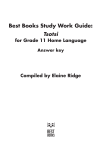 Best Books Study Work Guide: Tsotsi for Grade 11 Home Language Answer key Compiled by Elaine Ridge Answers to chapter questions Answers to chapter questions Chapter 1 Pre-reading 1. Open ended. The novel focuses on a young black man who lived some time ago and was involved in criminal activities in an impoverished black community. Reading 2. 3. 4. Butcher has little interest in words. He is a man of action and particularly enjoys killing people. The mood is sombre, creating an expectation that something bad is about to happen. Listening to the stories makes the time go by much faster./Die Aap and Tsotsi have no other way of passing the time. Post-reading 5.1 His hands are delicate, rather like those of an artist. One would not expect someone who is involved in violence to have hands like those. 5.2 The irony is that, instead of being a sign of spiritual activity, his gesture signals the start of violence. 6. Tsotsi says little but his actions and words spur the others to action. He seems to hate goodness or happiness and takes pleasure in killing Gumboot’s happiness, replacing his smile with a grimace of hatred and agonising pain. He delights in the fear and hate he inspires in others. Butcher actively hates Tsotsi but remains a member of the gang because he recognises Tsotsi’s skill as a leader. He has no life outside the gang. His joy and purpose in life is to be an expert killer with a bicycle spoke. When he laughs, it is without feeling. Die Aap is totally loyal to Tsotsi and always supports what he says. He has very long arms. He uses the immense strength in these arms to immobilise victims. 7. Tsotsi is feared for his ruthlessness. When he appears on the streets on his way to committing a crime, people show their fear by securing their properties or moving out of the way. He is hated. 8. Gumboot hates being parted from Maxulu and longs to be with her. The time seems to drag by. On the other hand, he works long hours so the days go by quite quickly. 9. Tsotsi chooses Gumboot for three reasons: First, Gumboot’s happy smile is like a light in the area and, second, the bright red tie he is wearing makes him easy to follow. The third reason is that, when Gumboot pays for his ticket, he reveals that he has quite a lot of money. He has forgotten to take out a single coin beforehand. 10. After a long time away, Gumboot has only one week to go before he returns home to his wife and meets his child for the first time. Chapter 2 Pre-reading 1. Resentment/embarrassment/indignation at an intrusion into your personal affairs. Reading 2. 3. “sick like a dog” Boston is sickened by the violence of the gang’s latest killing. His nerves are on edge and he finds Rosie’s behaviour irritating./He knows that she is looking for business and that Butcher and the others are likely 3 Tsotsi 4. 5. to treat her badly./He wants to re-establish his credibility as a tough gang member. Soekie’s parents have not kept in touch with her at all./Her birth was never registered. Soekie has to have tough rules. If she waits until her customers have finished their drinks, she may not be paid. Post-reading 6. Boston is sickened by the violence and he feels the need to raise questions about the morality of what they are doing. The others see killing merely as part of the operation. Butcher actually enjoys killing as it demonstrates his special skill. 7. Some women are abused both mentally and physically and are abandoned by their husbands. They end up as prostitutes desperate for a way of getting alcohol to numb their senses (or food or other necessities). 8. Gumboot is a good man who is concerned about living a good life and meeting his responsibilities as a husband and father. His honesty and trust make him vulnerable to criminals./Tsotsi takes special delight in destroying what is beautiful or good. 9. Boston does not realise that Tsotsi does have feelings – he feels deep hatred towards him. Boston’s questions have also made Tsotsi feel fearful because he cannot answer them. 10. It suggests that Boston is taken by surprise. He has no time to plan his fall or to sidestep the kick. He lands with his legs and arms spread out in uncontrolled fashion. Chapter 3 Pre-reading 1. He would put the attack firmly behind him and not have even a moment’s regret. Reading 2. 3. 4. Tsotsi is confused and deeply troubled. He is trying to make sense of Boston’s words. Boston is the strategist who makes sure that there are no flaws in their plans and that nothing has been forgotten, and yet he does not want the plans to succeed. Earlier, Soekie says that she does not want any rough stuff. She is determined not to encourage rowdy or violent behaviour or to give the idea that her shebeen has a reputation for violence./She needs to sell as much alcohol as she can and she does not want anything that might discourage customers./She does not want to attract the attention of the police and give them a reason to shut down her shebeen. Post-reading 5. Tsotsi makes sure that his knife is ready for use from first thing in the morning. He deliberately forgets any face or incident from the past as soon as he remembers it, and he does not allow anyone to ask him any questions about his past. This means he is able to prevent himself from feeling any sympathy for his victims, and he is always ready to launch a lethal attack without warning. 6. Give any two: Wet newspaper, a spider spinning its web on the ceiling, the baby. 7. Butcher enjoys violence. The policeman is alone and so would be an easy target. He is hoping that Tsotsi will give the signal to the gang to free the prisoner (and hurt or even kill the policeman). 8. He is able to think and explore his feelings. His hatred of Boston subsides and he begins to appreciate Boston’s qualities. 9. She is desperate to escape the attack on her that Tsotsi seems about to launch. She realises this could distract him for long enough for her to get away./She knows she has a better chanc
