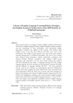 A Study of English Language Learning Beliefs, Strategies, and Achievement Dinamika Ilmu P-ISSN: 1411-3031; E-ISSN: 2442-9651 2015, Vol. 15 No. 2 A Study of English Language Learning Beliefs, Strategies, and English Academic Achievement of the ESP Students of STIENAS Samarinda Noor Hayati Akademi Bahasa Asing Colorado, Indonesia yatielyaman@gmail.com Abstract This research aimed to investigate; students’ English academic achievement, beliefs about English language learning, English language learning strategies, and the relationship of them. Descriptive and correlational design, quantitative methods were applied in this research. The students’ final English scores of the first year, BALLI, and SILL were used as the instruments. The samples of this research were sixty six-first year students majoring Management at STIENAS Samarinda. The data of the research were analyzed using descriptive statistic, multivariate correlation, and Pearson Product Moment correlation. The students’ beliefs about motivation and expectation were the most beliefs held by the students (M=3,65) followed by the nature of language learning (M=3,35), foreign language aptitude (M=2,97), learning and communication strategy (M=2,86), and the difficulty of language learning (M=2,74) . The most preferred strategy used by the students was metacognitive (M=3,35) followed by memory (M=3,28), cognitive (M=3,28), affective (M=3,24), social (M=3,28), and compensation (M=3,18). There was a positive and weak correlation of beliefs and strategies with students’ English academic achievement (R .035). Positive and insignificant correlation was found between English academic achievement and beliefs about English language learning (r = .145, p 0.245 > 0.05) and negative and significant correlation between English language learning strategies and English academic achievement (r = -.144, p 0,248 > 0.05). Keywords: ESP, achievement, beliefs, learning strategies, Beliefs about Language Learning Inventory (BALLI), Strategies Inventory for Language Learning (SILL). Dinamika Ilmu, Volume 15 (2), 2015 297 A Study of English Language Learning Beliefs, Strategies, and Achievement A. Introduction Human being is not only an individual person but also a social person who needs to communicate each other. Hence, Language as a tool of communication becomes very important to be acquired and learned. Then, English which is considered as an international language is considered as a significant language in the world especially in the world of language learning and teaching. Many people want to learn English and increase their communication for either general or specific purposes such as getting better job, going abroad, having foreign friends, etc. Regarding the importance of English and the willingness of many people to learn English, many different ways of learning it then provided by both formal and informal institutions. In fact, not all students or learners can easily achieve their goals of learning English and follow the language learning process well. Lightbown & Spada (2001) provide intelligence, aptitude, personality, motivation and attitudes, learner preferences, learner beliefs, and age of acquisition as factors affecting second/foreign language learning. Additionally, if the students know the appropriate strategies to work out the answers for themselves, they are endorsed to manage their own learning (Griffiths, 2004). Moreover, students who learn English for Specific Purposes (ESP) must meet specific need not general English. They need to work closely with their field and have English to support them catching their purposes. Those might require more effort than those who learn general English. Conducting research on English language learning beliefs, strategies, and English academic achievement is fascinating for the researcher for some considerations related to the researcher’s previous research on language learning beliefs, strategies, and English academic achievement, the importance of language learning beliefs and strategies for the success and effectiveness of language learning, and the inconsistent result of researches on beliefs, strategies, and academic achievement. First reason why the researcher is interested in conducting this research is related to the importance of language learning beliefs and strategies for the success and effectiveness of language learning. In the classroom context, the perception, beliefs, attitudes, and metacognitive knowledge that students bring with them to the learning situation are some of the important contributory factors in the learning process and ultimate success Breen in Bernat & Gvozdenko (2005). Moreover, language learning strategy has also the important contribution to the language learning (Su & Min-Hsun, 2005). Effective language learners generally use proper learning strategies, and the use of learning strategies help the students’ learning result. The importance of beliefs and strategies in language learning indicates that it is important for the teacher to know what beliefs and strategies of the students in learning language and the correlation of them. Dinamika Ilmu, Volume 15 (2), 2015 298 A Study of English Language Learning Beliefs, Strategies, and Achievement The second, as an English teacher as well as an English student, the researcher found some phenomena related to learners’ beliefs and strategies in learning English. For example, such beliefs or strategies may lead the learners to achieve the better achievement or just the opposite, it may make their achievement lower. Then the researcher became anxious to find out about it and conducted the research on beliefs, strategies and English academic achievement to the third year students majoring in English at STAIN Samarinda and the research showed that there was strong enough correlation of them. However, students majoring English must be different from the students who learn English for specific purposes, and it caught t