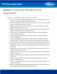CPT Exam Study Guide Section 1: Professional Development and Responsibility Chapter 1. The Modern State of Health and Fitness • • • • • • • • • • • • • • • The focus on scientific principles makes NASM’s systems and methodologies safe and effective for any client working toward any fitness goal. NASM recommends that all fitness professionals maintain a focus on an evidence-based practice to attain the highest levels of success. Evidence-based practice is the conscientious use of current best evidence in making decisions about patient or client care. NASM’s proprietary approach to exercise training, the OPT model, was developed with evidence-based practice as a core guiding philosophy. Acute disease is any suddenly occurring medical condition that can be treated and healed in a short period of time. A chronic disease is a medical condition that persists without quickly going away or being cured altogether. The terms overweight and obesity refer to a body weight that is greater than what is considered normal or healthy for a certain height, specifically due to excess body fat. Being overweight or obese greatly increase the chances of developing a chronic disease. Cardiovascular disease is a broad term describing numerous problems of the heart and blood vessels, including stroke, heart attacks, heart failure, heart valve problems, and arrhythmias. Hypertension is one of the primary risk factors for heart disease and stroke, which are the global leading causes of death. Cholesterol is a waxy substance found in the blood that is made up of a combination of protein and fatty acids. Diabetes is a disease in which blood glucose levels are too high. Glucose comes from the foods we eat. Insulin is a hormone produced by the pancreas that helps glucose get into cells to provide the energy for work. Cancer is an abnormal growth of cells that can result from a wide range of genetic and environmental factors. COPD is an umbrella term for lung diseases characterized by increased breathlessness, airflow limitation, and accelerated decline of lung function. CPT Exam Study Guide • • • • • • • Two of the most common issues at the foot and ankle are sprains and plantar fasciitis. An ankle sprain occurs when a person rolls, twists, or turns an ankle, which stretches or tears ligaments, whereas plantar fasciitis causes pain in the plantar fascia tissue located on the underside of the foot. The LPHC is made up of the lumbar spine (low-back area), pelvis, abdomen, and hip musculoskeletal structures; it is more commonly referred to as the “core.” The LPHC is an important anatomical structure because it connects the upper and lower halves of a person’s body. Shoulder dysfunction is very common in the greater population, especially in those who frequently lift objects overhead. Regular exercise and increased physical activity have been frequently shown by research to improve numerous types of musculoskeletal dysfunction and chronic disease. Understanding the scopes of practice for all adjacent allied health professionals, as well as all relevant local laws and regulations, will ensure CPTs are always working within their own scope of practice. Networking with other allied health professionals and certified fitness professionals can lead to great levels of success in the fitness industry. An NASM-CPT must always adhere to the NASM Code of Professional Conduct. Chapter 2. The Personal Training Profession • • • • • • • From working in a large health club, to training clients in their own homes, fitness professionals have numerous options to establish a personal training practice with a consistent flow of clients. Another employment choice for fitness professionals is starting a fitness business, which could include working with clients in their homes, running outdoor group workout programs, or opening a studio. As technology is evolving, there are many options for offering training services online. Working as an independent contractor allows a fitness professional to establish his or her own pay rates and to earn the entire amount, but operational expenses, insurance costs, and taxes must also be accounted for. The first step in succeeding as a CPT is offering uncompromising customer service. Selling personal training services is about asking a client to make a commitment to an exercise program to improve his or her own health, wellness, and fitness, which makes selling an activity of uncovering client needs and presenting solutions to those problems. If rapport is properly built with a prospective client, sales will feel natural and automatic. CPT Exam Study Guide • • • • • • Forecasting techniques should be used to predict how many clients will need to be serviced to support a desired annual financial goal. Marketing is the process of communicating how a specific product or service will meet the wants and needs of a potential client. The Four Ps of marketing include product, price, promotion, and place. Social media and other digital marketing campaigns are extremely important for growing a modern fitness business. Continuing education courses are not just necessary for recertification; they can teach fitness professionals how to work with niche populations and enable the expansion of a fitness business to new and exciting areas. The most popular methods of earning CEUs are attending workshops or conferences or completing online education programs. Additionally, CEUs can be earned by participating in livestream webinars, reading fitness articles and passing a quiz or test, or contributing to the industry by creating content for fitness education programs, speaking at conferences, and presenting webinars. CPT Exam Study Guide Section 2: Client Relations and Behavioral Coaching Chapter 3. The Psychology of Exercise ● Psychology is an important component to behavioral change and plays a key role in adopting a regular habit to exercise. 