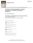 Language & History ISSN: 1759-7536 (Print) 1759-7544 (Online) Journal homepage: https://www.tandfonline.com/loi/ylhi20 The History of Teaching English as a Foreign Language, from a British and European Perspective A. P. R. Howatt & Richard Smith To cite this article: A. P. R. Howatt & Richard Smith (2014) The History of Teaching English as a Foreign Language, from a British and European Perspective, Language & History, 57:1, 75-95, DOI: 10.1179/1759753614Z.00000000028 To link to this article: https://doi.org/10.1179/1759753614Z.00000000028 © W. S. Maney & Son Ltd 2014 Published online: 17 Sep 2014. Submit your article to this journal Article views: 86465 View related articles View Crossmark data Citing articles: 19 View citing articles Full Terms & Conditions of access and use can be found at https://www.tandfonline.com/action/journalInformation?journalCode=ylhi20 language and history, Vol. 57 No. 1, May 2014, 75–95 The History of Teaching English as a Foreign Language, from a British and European Perspective A. P. R. Howatt Retired, University of Edinburgh, UK Richard Smith University of Warwick, UK This article offers an overview of historical developments in EFL (English as a Foreign Language) teaching methodology over the last 250 years. Being based on periods rather than methods, it is intended as an alternative kind of account to the ‘method mythologies’ which have tended to dominate professional thinking for the last thirty years. Thus, we structure our account according to four periods characterized by main concerns and overall approaches, revealing greater continuity and overlap among teaching theories and practices than in accounts which accept discrete, bounded ‘methods’ as the primary unit of organization. Confronting a conception of the past typically presented as universal but in fact reflecting a USA-centric perspective, our alternative, UK-focused and, to some extent, European version of history asserts the value of explicit geographical contextualization and indicates a new direction for the history of EFL teaching — ‘beyond method’, and in multiple locations. keywords English as a Foreign Language (EFL), English Language Teaching (ELT), English language, history of education, language learning, language teaching, history of language learning and teaching (HoLLT) Introduction Since the publication of Howatt (1984) thirty years ago there has only been a limited amount of original research into the history of English language teaching for speakers of other languages. This contrasts strongly with work in relation to French, which has burgeoned over the last twenty-five years (see Besse, this issue). The historical © W. S. Maney & Son Ltd 2014 DOI 10.1179/1759753614Z.00000000028 MORE OpenChoice articles are open access and distributed under the terms of the Creative Commons Attribution License 3.0 76 A. P. R. HOWATT and RICHARD SMITH research studies which have been carried out since 1984 go some way towards fulfilling Stern’s (1983: 83) call for ‘studies of particular aspects’, although much remains to be investigated. Some important monographs have been published about English teaching in particular countries, largely in languages other than English; note especially the work published in German by Klippel (1994); Lehberger (1986; 1990); and Macht (1986; 1987; 1990). Indeed, since 2000 there has been a marked increase in substantial doctoral work on the history of English teaching in Germany (Doff, 2002; 2008; Franz, 2005; Kolb, 2013; Ruisz, 2014), mainly under the supervision of Friederike Klippel at Ludwig Maximilian University in Munich. In Japan, no fewer than two academic societies have existed in recent times for the history of English studies there: Nihon eigakushi gakkai (The Historical Society of English Studies in Japan) and Nihon eigokyoikushi gakkai (The Historical Society of English Teaching in Japan). However, in the UK, just three doctoral theses over the last thirty years — to our knowledge — have adopted a fully historical approach to aspects of English language teaching (Evans, 2003; Smith, 2005a; Hunter, 2009). There has been additional foundational work by Howatt & Smith (2000; 2002) and by Smith (1999; 2003; 2005b), and the development of the ‘ELT Archive’ at the University of Warwick (<http:// www.warwick.ac.uk/elt_archive>) has begun to raise consciousness of needs for historical research within the wider profession. Finally, monographs on the history of two specialist areas — EFL learner dictionaries (Cowie, 1999) and English language testing (Spolsky, 1995; Weir et al., 2013) — deserve to be highlighted, as does a recent comprehensive history of the teaching of refugees and immigrants in Britain (Rosenberg, 2007). Although these developments have been promising, the research that has been carried out has had relatively little impact on professional discourse, where oversimplified ‘procession-of-methods’ views of the past have remained common (Hunter & Smith, 2012: 432). ‘Potted histories’ have tended to prevail which reproduce a kind of mythology intended to set off the past from the present, itself viewed as superior (ibid.). Highly influential in legitimizing this kind of approach, we would suggest, have been Richards & Rodgers’ book, Approaches and Methods in Language Teaching, first published in 1986 and in its fourth edition already, and Larsen-Freeman’s (1986) Techniques and Principles in Language Teaching, an even more reductive, ahistorical account, also in its fourth edition. The limitations of such accounts have recently been indicated by Hunter & Smith (2012) and we shall be focusing on three of the major limitations here, namely (1) they tend to over-emphasize the prevalence of breaks or ‘paradigm shifts’ rather than continuity and tradition (or, at least, they highlight differences between methods rather than similarities); (2) they give equal weight to all the methods selected for con