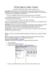 KiCad Step by Step Tutorial Copyright © 2006 David Jahshan: kicad at iridec.com.au Copyright: Please freely copy and distribute (sell or give away) this document in any format. Send any corrections and comments to the document maintainer. You may create a derivative work and distribute it provided that: 1. If it's not a translation: Email a copy of your derivative work to the author. 2. License the derivative work in the spirit of the GPL. Include a copyright notice and at least a pointer to the license used. 3. Give due credit to previous authors and major contributors. If you're considering making a derived work other than a translation, it's requested that you discuss your plans with the current maintainer. Disclaimer: While care was taken in preparing this document, there are likely a number of errors in this document. Please let the author know about them. Since this is free documentation, the author will not be held legally responsible for any errors. Trademarks: Any brand names should be assumed to be a trademark. Such trademarks belong to their respective owners. KiCad is a open source (GPL) integrated package for schematic circuit capture and PCB layout. Before you start, you will need an installed copy of KiCad. This tutorial assumes that KiCad is installed at C:\Kicad. You can download a copy from http://www.lis.inpg.fr/realise_au_lis/kicad/ Installation instructions are available on the web site under Infos:Install 1. Run “KiCad.exe”. 2. You are now in the Main Window. 3. Create a new project: “Projects” -> “New Project Descr”. 4. Click on “Create New Folder” button, and name the new folder “tute1”. 5. Open the new directory by double clicking on it. 6. Enter the name of the project in “File Name”, in this tutorial we will call it “tute1”. 7. Click on “Save”. You should notice the project name should change to “tute1”. 8. Double click on “tute1.sch”. 9. An “Infos” window will appear informing you it is a new project. Click “OK”. 10. You are now in the “EESchema” window. This window is used for entering schematics. 11. You should first save the schematic project: “Files” -> “Save Schematic Project”. 12. Click the “page settings” button on the top toolbar. 13. Select the “page size” as “A4” and the “Title” as “Tute 1”. 14. Click on the “Add components” button found in the right toolbar. 15. Click in the middle of the screen where you want to place your first component. 16. A “Component selection” window will appear. 17. Click on “List All”. The “Select Lib” window will appear. 18. Double click on “device”. 19. The “Select Part” window will appear. 20. Scroll down and double click on “R”. 21. Press 'r' on the keyboard. Notice how the component rotates 22. Place the component in the middle of the sheet by left clicking where you want it. 23. Click on the magnifier twice to zoom in on the component. 24. Right click in the middle of the component. 25. Select: “Edit Component” -> “Edit”. 26. The “Component properties” window will appear. 27. Select the “Value” tab. 28. Replace the current “Value” “R” with “1k”. 29. Click “OK”. 30. The value inside the resistor should now be “1k” . 31. Place another resistor by clicking on the place you want the resistor to appear. 32. The “Component selection:” window will appear. 33. The resistor you previously chose is now in your history list appearing as “R”. 34. Click on “R”. 35. Place the resistor on the page 36. Repeat and place a third resistor on the page. 37. Right click on the second resistor 38. Click on “Delete Component”. This should remove the component. 39. Right click on the third resistor. Select “Move Component”. 40. Reposition the component left click to drop. 41. Repeat steps 24 to 27 on the third resistor and replace “R” with “100” 42. Repeat steps 14 to 20, however this time select “microcontrollers” instead of “device” and “PIC12C508A” instead of “R”. 43. Press 'y' and 'x' on the keyboard. Notice how the component is mirrored on it's x and y axis. Press 'y' and 'x' again to return to it's original orientation. 44. Place the component on the page. 45. Repeat steps 14 to 20, however this time choose “device” and “LED”. 46. Organise the components on the page in the following way: 47. We will now add a component to the library. 48. Click on the “go to library editor” button on the top toolbar. 49. This will open the “Libedit” window. 50. Click on the “Select working library” button. 51. In the “select lib” window click on “conn”. 52. Click on the “New part” button. 53. Name the new part “MYCONN3”. 54. Enter the prefix as “J”, and number of parts as “1”. 55. If the warning “has a convert drawing” appears click “yes”. 56. In the middle of the screen the name of the component should appear. 57. Click on the magnifier twice to zoom in on it. 58. Click on the “Add Pins” button on the right toolbar. 59. Left click on the screen where you want the pin. 60. In the “Pin Properties” box enter pin name as “VCC”, enter pin number as “1”. 61. Select “Electrical Type” as “Power Out” then click “OK”. Then place the pin by clicking at the location you would like it to appear. 62. Repeat steps 59 to 61, this time “Pin Name” should be “INPUT” and 'Pin Number” should be “2”. “Electrical Type” should be “Input”. 63. Repeat steps 59 to 61, this time “Pin Name” should be “GND” and “Pin Number” should be “3”. “Electrical Type” should be “Power Out”. 64. Arrange the pins and label as shown below step 65. 65. Click on the “Add rectangle” button. By left clicking and holding the button down place a rectangle around the pin names. 66. Click on “Save current part into current loaded library (in memory)” on the top toolbar. 67. Click on “