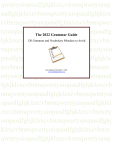 qwertyuiopasdfghjklzxcvbnmqwertyuiop asdfghjklzxcvbnmqwertyuiopasdfghjklzx cvbnmqwertyuiopasdfghjklzxcvbnmqwer tyuiopasdfghjklzxcvbnmqwertyuiopasdfg The 2022 Grammar Guide 120 Grammar and Vocabulary Mistakes to Avoid hjklzxcvbnmqwertyuiopasdfghjklzxcvbn mqwertyuiopasdfghjklzxcvbnmqwertyuio pasdfghjklzxcvbnmqwertyuiopasdfghjklz xcvbnmqwertyuiopasdfghjklzxcvbnmqw ertyuiopasdfghjklzxcvbnmqwertyuiopasd fghjklzxcvbnmqwertyuiopasdfghjklzxcvb nmqwertyuiopasdfghjklzxcvbnmqwertyui opasdfghjklzxcvbnmqwertyuiopasdfghjkl zxcvbnmqwertyuiopasdfghjklzxcvbnmrty uiopasdfghjklzxcvbnmqwertyuiopasdfghj klzxcvbnmqwertyuiopasdfghjklzxcvbnm qwertyuiopasdfghjklzxcvbnmqwertyuiop Last Updated: December 5, 2021 www.englishgrammar.org The purpose of this book English is full of problems for a foreign learner. While some of these problem points are easy to explain, others cause difficulty even for the advanced students and learners. For example, how exactly is the present perfect tense used? What are the differences between big, large and great, between come and go? Is unless the same as if not? This eBook is a guide to questions of this kind. It addresses 120 points which regularly cause problems for the foreign learner. Rules and guidelines are given, using as little linguistic terminology as possible. Who will benefit from this book? This book is aimed at students who wish to improve the quality of their sentences. It is compiled for the use at school or at home. How to use this book? Entries are arranged alphabetically. Each entry contains an explanation of a problem, examples of correct usage and typical mistakes. Explanations are, as far as possible, given in simple everyday language. Grammar Guide Page 2 List of Entries 1. According to 2. Across and through 3. Adjectives ending in -ly 4. Ago and before 5. All and every 6. All right and alright 7. Already and all ready 8. Alternate and alternative 9. Altogether and all together 10. Any and some 11. Anyhow and somehow 12. Articles 13. Article a – correct use 14. Ask and ask for 15. At first and first 16. Avenge and revenge 17. Back and again 18. Bath and bathe 19. Beat and win 20. Because 21. Because and because of 22. Because and for 23. Begin and start 24. Beside and besides Grammar Guide Page 3 25. Besides, except and apart from 26. Between and among 27. Between and during 28. Between and from 29. Big, large and great 30. Born and borne 31. Bring and take 32. But 33. Change of tense 34. Close and shut 35. Cloth and clothes 36. Collective nouns 37. Come and go 38. Common preposition + noun combinations 39. Comparatives and superlatives 40. Comparatives: a common error 41. Conjunctions 42. Correlatives 43. Dead and died 44. Determiners 45. Do and make 46. Double negatives 47. During and for 48. Each and every Grammar Guide Page 4 49. Each other and one another 50. East, eastern, north, northern etc. 51. Elder and eldest 52. End and finish 53. Enough 54. Especially and specially 55. Except and except for 56. Expect and hope 57. Expressions without prepositions 58. Far and a long way 59. Gerund 60. Historic present 61. I don't mind 62. If clauses 63. Imperative sentences 64. Indirect questions 65. Invent and discover 66. Inversion of subject and verb 67. Its and it’s 68. Joining sentences 69. Keep and put 70. Kind and kinds, sort and sorts etc. 71. Less and fewer 72. Lie and lay 73. Like and as Grammar Guide Page 5 74. Look after and look for 75. Lose and loose 76. Many/much and plenty of/a lot of 77. May and can 78. Maybe and perhaps 79. Much and many 80. Neither, nor and not...either 81. Nominative and objective case 82. No sooner ...than 83. Nouns that do not have a singular form 84. Nouns with no plural forms 85. Nouns with identical singular and plural forms 86. Numbers 87. On and in 88. Only 89. On time and in time 90. On the whole and the whole of 91. Participles 92. Positive or comparative? 93. Past perfect tense 94. Possessive case 95. Prepositions 96. Present perfect tense 97. Price and prize 98. Pronouns Grammar Guide Page 6 99. Say and tell 100. Scarcely...when 101. Search and search for 102. Sincerely 103. Singular and plural nouns 104. Subordinate clause 105. Suggest 106. Than and as 107. Thank you and please 108. Told and asked 109. Too and very 110. Transitive verbs 111. Two words or one 112. Unless and if 113. Verbs 114. -ward and –wards 115. Well and good 116. Why not + infinitive 117. Whether and if 118. Whose and who’s 119. Will or shall? 120. Yes and no Grammar Guide Page 7 1. According to • Incorrect: According to me, she should have resigned earlier. • Correct: In my opinion, she should have resigned earlier. We do not give our own opinions with according to. 2. Across and through The difference between across and through is similar to the difference between on and in. We use through to talk about movement in three dimensional spaces with things on all sides. • We walked across the field. (= We were on the field.) • We walked through the wood. (= We were in the wood.) 3. Adjectives ending in -ly • Incorrect: She smiled friendly. • Correct: She smiled in a friendly way. • Incorrect: He laughed silly. • Correct: He gave a silly laugh Here the error lies in using an adjective instead of an adverb. We use adverbs to modify verbs. Most adverbs end in –ly; there are also a few adjectives that end in – ly. Examples are: costly, friendly, lively, likely, lonely, lovely, silly and ugly. There are no adverbs costly/costlily or friendly/friendlily. 4. Ago and before • Incorrect: His father died three years before. • Correct: His father died three years ago. Grammar Guide Page 8 Ago is used to count back from the present. It is used with a past tense and a time expression. Before is used when you date back from any point of time which is made specific. • I saw him two years before I went to England. 5. All and every • Incorrect: Every children need love. • Correct: Every child needs love. • Incorrect: All the li