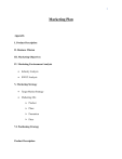 1 Marketing Plan Appendix I. Product Description II. Business Mission III. Marketing Objectives IV. Marketing Environment Analysis Industry Analysis SWOT Analysis V. Marketing Strategy Target Market Strategy Marketing Mix Product Place Promotion Price VI. Positioning Strategy Product Description 2 Wheatox soap is a natural and unique soap made with a special blend of wheat germ oil and tea tree oil. The wheat germ oil contains high levels of vitamins and minerals that nourish and rejuvenate the skin, while tea tree oil provides antiseptic and anti-inflammatory properties to fight against bacteria and reduce inflammation. The soap is gentle and suitable for all skin types, making it ideal for those with sensitive or problem-prone skin. Wheatox soap is crafted using a cold process method, ensuring that all the natural benefits of the ingredients are preserved. The soap has a rich, creamy lather that cleanses the skin without stripping it of its natural oils, leaving it feeling soft, smooth, and refreshed. The unique blend of wheat germ oil and tea tree oil provides a refreshing, invigorating scent that uplifts the senses and promotes relaxation. Overall, Wheatox soap offers a natural and effective solution for those looking for a gentle, nourishing, and rejuvenating cleansing experience. The combination of natural ingredients and careful craftsmanship ensures that each bar of Wheatox soap is of the highest quality, making it a great addition to any skincare routine. Business Mission Our mission at Wheatox is to provide a premium skincare experience that nourishes and rejuvenates the body while being mindful of our environmental impact. We aim to empower our customers with the confidence that comes from healthy, glowing skin, achieved through our natural and sustainable ingredients. We strive to be a brand that not only cares for the wellbeing of our customers, but also for the planet we call home. At Wheatox, we are committed to 3 delivering high-quality, gluten-free, ethically sourced products that make a positive impact on the world around us, one bar of soap at a time. Marketing Objectives The marketing objective of Wheatox soap is to increase brand awareness, promote product benefits, and drive sales in the Newfoundland market. The primary goal is to position Wheatox as a premium, natural and effective solution for individuals looking to detoxify their skin and improve their overall health and wellness. To achieve this objective, the marketing strategy will focus on creating targeted advertising campaigns, implementing influencer marketing, establishing partnerships with relevant health and wellness retailers, and leveraging social media platforms to increase brand engagement and drive sales. The ultimate objective is to establish Wheatox soap as a leading brand in the natural skincare market and increase its market share in Canada. Marketing Environment Analysis Marketing Intermediaries Marketing intermediaries are organizations or individuals that help a company to promote, sell, and distribute its products to end-users. For Wheatox soap, several types of intermediaries can be involved in the distribution process. 4 Firstly, there are wholesalers who purchase the soap in bulk quantities from the manufacturer and then sell them to retailers. They help in the efficient and timely distribution of the product to different retail outlets. Secondly, there are retailers who sell the soap directly to the end-users. They include supermarkets, drugstores, beauty stores, and other retail outlets. Retailers are responsible for maintaining the product on the shelves and promoting the product to their customers. Thirdly, there are online marketplaces and e-commerce platforms such as Amazon and Walmart which provide a platform for consumers to purchase Wheatox soap. Finally, there are sales representatives and marketing agencies that can be hired to promote and distribute the soap to potential customers. These intermediaries help to increase brand awareness and create demand for the product. Overall, marketing intermediaries play an important role in the distribution of Wheatox soap to end-users and can help to increase the reach and visibility of the product. Microenvironment: The microenvironment of Wheatox consists of the company's suppliers, customers, intermediaries, and competitors. The suppliers of Wheatox are the wheat farmers, while the intermediaries are the distributors and retailers. The customers of Wheatox are healthconscious individuals who are looking for a natural way to detoxify their skin. The competitors of Wheatox are other natural and organic skincare products. Macroenvironment: The macroenvironment of Wheatox consists of the economic, demographic, technological, cultural, and political/legal factors that affect the demand for the product. The 5 economic factor includes the purchasing power of the customers and their disposable income. The demographic factor includes the age, gender, and income level of the customers. The technological factor includes the advancements in technology that affect the manufacturing and distribution of Wheatox. The cultural factor includes the changing preferences and lifestyles of customers. The political/legal factor includes the regulations and laws that govern the production, distribution, and marketing of the product. SWOT Analysis: Strengths: Wheatox is an all-natural and organic product that appeals to health-conscious individuals. The product is made from locally sourced wheat, which appeals to customers who support locally grown products. The company has a unique formulation and a competitive advantage over other natural skincare products. Weaknesses: The cost of production and distribution may be high, which could lead to higher prices for customers. The brand is new to the market and lacks brand recognition. The product may not appeal to customers who prefer chemical-based skincare products. Opportunities: The demand for natural and orga