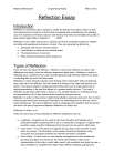 Matthew Molesworth Engineering Project HND Level 5 Reflection Essay Introduction Reflection is commonly used in studies to enable the learner to be able to reflect on their own experiences and use this to further their knowledge and understanding. By reflecting upon the experience will help to improve and develop new skills and inevitably the quality of work will be higher (What is reflection? , 2020). Reflection is not a static process but a dynamic one that is constantly evolving as needed and skills and experiences are taken on board. They can generally be defined as, ● Analysing what we are currently doing? ● Consideration of what we have already learnt. ● The experiences you have had. ● What all these experiences have taught you. Types of Reflection There are two main types of reflection: reflection in action and reflection on action, their differences are mainly when the reflection experience takes place. Reflection in action is reflecting upon a situation that you are currently going through whereas reflection on action is reflecting after an event has taken place. Reflection in action typically requires quick thinking where observation skills and listening play a key role in the reflection, this then leads to a change in the views and opinions of a person. This type of reflection usually becomes finely tuned over a longer period due to gaining experiences in the past that allows for a greater quality outcome. This type of reflection usually takes place when a person is in a stressful situation or is feeling nervous and apprehensive, this is also utilised when something has gone wrong. Reflection on action is the practice of performing reflective exercises post event, this involves analysing past events and turning the information into knowledge that can then be used in future experiences. This type of reflection tends to challenge preconceptions that the person has had in the past (Comparison Between Reflection-On-Action and Reflection-In-Action, n.d.) There are many ways of documenting the reflective experience such as, ● ● ● Logbooks - A logbook can be used to note down thoughts and feelings and is particularly helpful in planning work to do or to keep track of progress. A logbook also provides a good snapshot of feelings at the time and can be used to reflect upon Voice notes - This is the same as a logbook but by using a voice recorder to note down any entries. The information can be easily stored and maintained using computers and accessed anywhere an internet connection is available. Gantt charts - A Gantt chart is a very popular management tool that enables the planning of projects and events etc, the Gantt chart enables a clear visual representation of the order in which tasks need to be completed and gives the user a clear timeframe to complete these tasks. Many different software packages are Matthew Molesworth Engineering Project HND Level 5 available with many different features, these can mainly be internet based so can be accessed everywhere. If any issues or changes to the plan are required notes can be left so on reflection it is recorded why these changes have taken place and maybe changes in future projects can be made. To assist me in the project I decided the best methods for me were to keep a logbook and Gantt chart. I have used both in other project work and have become familiar with how they both work and the results I can get from both. I found keeping a logbook, although time consuming, very useful in trying to remember what tasks I have completed and planning the next week's work. Due to the length of the project, I also found the logbook a handy tool to note down thoughts and feelings at the time, this gave me a clear picture of how I felt even though I may have forgotten a lot of it, Below is an example of a diary input from the research project. Matthew Molesworth Engineering Project HND Level 5 Figure 2 Gantt chart for the research project. The above Gantt chart was used for the duration of the project, dates and timescales did have to be modified during the process as the amount of work required for each section became clear. Models of Reflection There are many different types of models of reflection that have been created by experts in this field that enable a clear structured pathway to follow when performing a reflective exercise. There are many different models available, and they all provide different ways to assist in analysing an event, below are listed three popular reflection models (Brush, 2020). Matthew Molesworth Engineering Project HND Level 5 Boud’s Reflective Model Boud’s model of reflection focuses on past events and learning from them, there are 3 stages to the model. Stage 1: Return to the experience The first stage of the Bouds model of reflection is to look back on an event and understand what happened. Stage 2: Connecting emotions and feelings. The second stage is to connect with both the positive and negative emotions of the event and to remove any negative emotions that may be causing an obstruction. By understanding the feelings and emotions of the event enables a greater learning experience and improves the quality of outcomes. Stage 3: Evaluating the whole experience. The final stage of the reflection process is to re-evaluate the whole experience. There are four main elements to this stage that the learner must consider. ● Association This stage is to consider any additional information that has been gathered or learned and relate it to the knowledge that they already have. ● Integration This stage looks at the new information gained and reviews previous understanding and then looks for relationships between the two. ● Validation This determines the whether the emotions and feelings are authentic. ● Ownership Taking on board all the knowledge that has been gained in the experience and using this in future work. (Toolshero, 2020) Advantages of Boud’s Model ● It can develop negative thoughts int