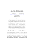 The Bitcoin Lightning Network: Scalable Off-Chain Instant Payments Joseph Poon Thaddeus Dryja joseph@lightning.network rx@awsomnet.org January 14, 2016 DRAFT Version 0.5.9.2 Abstract The bitcoin protocol can encompass the global financial transaction volume in all electronic payment systems today, without a single custodial third party holding funds or requiring participants to have anything more than a computer using a broadband connection. A decentralized system is proposed whereby transactions are sent over a network of micropayment channels (a.k.a. payment channels or transaction channels) whose transfer of value occurs off-blockchain. If Bitcoin transactions can be signed with a new sighash type that addresses malleability, these transfers may occur between untrusted parties along the transfer route by contracts which, in the event of uncooperative or hostile participants, are enforceable via broadcast over the bitcoin blockchain in the event of uncooperative or hostile participants, through a series of decrementing timelocks. 1 The Bitcoin Blockchain Scalability Problem The Bitcoin[1] blockchain holds great promise for distributed ledgers, but the blockchain as a payment platform, by itself, cannot cover the world’s commerce anytime in the near future. The blockchain is a gossip protocol whereby all state modifications to the ledger are broadcast to all participants. It is through this “gossip protocol” that consensus of the state, everyone’s balances, is agreed upon. If each node in the bitcoin network must know about every single transaction that occurs globally, that may 1 create a significant drag on the ability of the network to encompass all global financial transactions. It would instead be desirable to encompass all transactions in a way that doesn’t sacrifice the decentralization and security that the network provides. The payment network Visa achieved 47,000 peak transactions per second (tps) on its network during the 2013 holidays[2], and currently averages hundreds of millions per day. Currently, Bitcoin supports less than 7 transactions per second with a 1 megabyte block limit. If we use an average of 300 bytes per bitcoin transaction and assumed unlimited block sizes, an equivalent capacity to peak Visa transaction volume of 47,000/tps would be nearly 8 gigabytes per Bitcoin block, every ten minutes on average. Continuously, that would be over 400 terabytes of data per year. Clearly, achieving Visa-like capacity on the Bitcoin network isn’t feasible today. No home computer in the world can operate with that kind of bandwidth and storage. If Bitcoin is to replace all electronic payments in the future, and not just Visa, it would result in outright collapse of the Bitcoin network, or at best, extreme centralization of Bitcoin nodes and miners to the only ones who could afford it. This centralization would then defeat aspects of network decentralization that make Bitcoin secure, as the ability for entities to validate the chain is what allows Bitcoin to ensure ledger accuracy and security. Having fewer validators due to larger blocks not only implies fewer individuals ensuring ledger accuracy, but also results in fewer entities that would be able to validate the blockchain as part of the mining process, which results in encouraging miner centralization. Extremely large blocks, for example in the above case of 8 gigabytes every 10 minutes on average, would imply that only a few parties would be able to do block validation. This creates a great possibility that entities will end up trusting centralized parties. Having privileged, trusted parties creates a social trap whereby the central party will not act in the interest of an individual (principalagent problem), e.g. rentierism by charging higher fees to mitigate the incentive to act dishonestly. In extreme cases, this manifests as individuals sending funds to centralized trusted custodians who have full custody of customers’ funds. Such arrangements, as are common today, create severe counterparty risk. A prerequisite to prevent that kind of centralization from occurring would require the ability for bitcoin to be validated by a single 2 consumer-level computer on a home broadband connection. By ensuring that full validation can occur cheaply, Bitcoin nodes and miners will be able to prevent extreme centralization and trust, which ensures extremely low transaction fees. While it is possible that Moore’s Law will continue indefinitely, and the computational capacity for nodes to cost-effectively compute multigigabyte blocks may exist in the future, it is not a certainty. To achieve much higher than 47,000 transactions per second using Bitcoin requires conducting transactions off the Bitcoin blockchain itself. It would be even better if the bitcoin network supported a near-unlimited number of transactions per second with extremely low fees for micropayments. Many micropayments can be sent sequentially between two parties to enable any size of payments. Micropayments would enable unbunding, less trust and commodification of services, such as payments for per-megabyte internet service. To be able to achieve these micropayment use cases, however, would require severely reducing the amount of transactions that end up being broadcast on the global Bitcoin blockchain. While it is possible to scale at a small level, it is absolutely not possible to handle a large amount of micropayments on the network or to encompass all global transactions. For bitcoin to succeed, it requires confidence that if it were to become extremely popular, its current advantages stemming from decentralization will continue to exist. In order for people today to believe that Bitcoin will work tomorrow, Bitcoin needs to resolve the issue of block size centralization effects; large blocks implicitly create trusted custodians and significantly higher fees. 2 A Network of Micropayment Channels Can Solve Scalability “If a tree falls in the fo