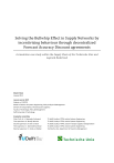 Solving the Bullwhip Effect in Supply Networks by incentivizing behaviour through decentralized Forecast Accuracy Discount agreements A simulation case study within the Supply Chain of the Technische Unie and Legrand Nederland Master thesis January 2014 Laurens van der Drift Student nr 1210750 Master of Science in Systems Engineering, Policy Analysis & Management Domain of Transportation, Infrastructure & Logistics Faculty of Technology, Policy & Management Delft University of Technology Graduation committee Chair: Prof. dr. ir. Alexander Verbraeck First supervisor: dr. Martijn Warnier Second supervisor: dr. Ron van Duin Third supervisor: ir. Seyed Alireza Rezae External supervisor: ir. Henk van Delden TU delft, faculty of TPM, section Systems Engineering TU delft, faculty of TPM, section Systems Engineering TU delft, faculty of TPM, section Transport Logistics & Organization TU delft, faculty of TPM, section Systems Engineering Technische Unie, department of Inventory Management Free markets and democracy are alike: They create fluctuations and instabilities, which result in tremendous wastes of resources, however, they also distribute power and are able to approximate the continuously changing optima’s in our inherently dynamic society. Where the resolution of local disturbances by the paradigms of control and efficiency seems rational in the short term, one must always remind that adaptiveness is the key to long term survival in the uncertain, changing environment of these complex networks. Table of contents Acknowledgements ................................................................................................................................................. 6 Summary ................................................................................................................................................................. 7 1. Introduction .................................................................................................................................... 11 1.1. 2. Reading guide ................................................................................................................................. 14 Research definition ......................................................................................................................... 15 2.1. Scientific and social relevance ........................................................................................................ 15 2.2. Problem statement and delineation............................................................................................... 15 2.3. Research questions ......................................................................................................................... 16 2.4. Research and design method ......................................................................................................... 16 2.5. Research scope ............................................................................................................................... 18 3. Problem exploration ....................................................................................................................... 19 3.1. Literature review ............................................................................................................................ 19 3.2. Measuring the Bullwhip Effect ....................................................................................................... 25 3.3. Definition of goals and requirements for the Bullwhip Effect ........................................................ 30 3.4. Concluding remarks ........................................................................................................................ 35 4. Systemic and behavioural analysis of the Bullwhip Effect .............................................................. 36 4.1. Systems model ................................................................................................................................ 36 4.2. Systems model in the case study .................................................................................................... 47 4.3. Problem perspectives on the Bullwhip Effect ................................................................................. 58 4.4. Problem perspectives in the case study ......................................................................................... 62 4.5. Concluding remarks ........................................................................................................................ 64 5. Exploration of the solution space ................................................................................................... 66 5.1. Analysis of common solutions for the Bullwhip Effect ................................................................... 66 5.2. Definition of solution space for decentralized agreements ........................................................... 70 5.3. Concluding remarks ........................................................................................................................ 72 6. Design definition ............................................................................................................................. 73 6.1. Design philosophy........................................................................................................................... 73 6.2. Design description .......................................................................................................................... 74 6.3. Qualitative validation towards the problem perspectives ............................................................. 76 6.4. Concluding remarks ........................................................................................................................ 77 7. Simulation model .................................................................................................................