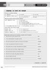 Unit 1 Name: QSE Intermediate Class: Grammar supplement 1 Language: so / such / too / enough We use so to express emphasis: so + adjective: so + adjective + (that) + verb: • I’m so tired! • He was so tired (that) he fell asleep in front of the TV. We also use such in order to express emphasis: such + (adjective) + noun • • • • • = I’m very tired. = He was very tired. As a result, he fell asleep. It’s such a pity! It’s such a lovely day! They’re such nice people! They’re such nice people (that) they won’t be angry. It was such beautiful weather (that) we stayed out all day. • It’s too difficult (for me) to do that. Look at these ways of using enough: = It’s very difficult. I can’t do it. enough + noun: • Are there enough books? Adjective + enough + to: • Is it cold enough (for us) to turn on the heating? enough + noun + to: • Are there enough people to start the class? Rewrite these sentences as one sentence, using the word in brackets. 1 The film was very sad. Everyone cried. (so) 2 I can’t understand him. He speaks too fast. (too) 3 How much money have we got? Can we pay for the tickets? (enough) 4 It was a very good meal. We ate far too much. (such) 5 The teacher was very stupid. He believed the children. (enough) 6 The trousers were very cheap. I bought six pairs. ...................................................................................................... (such) The film was very bad. Most people walked out. ...................................................................................................... (so) 7 8 9 ...................................................................................................... ...................................................................................................... ...................................................................................................... ...................................................................................................... ...................................................................................................... How much food is there? Can we feed everyone?. ...................................................................................................... He can’t walk far. He’s old. ...................................................................................................... 10 My boss was kind. He paid for the meal. ...................................................................................................... (enough) (too) (enough) 1 My score: 190 © Brookemead Associates Ltd, 2009 …… out of 10 BROOKEMEAD ENGLISH LANGUAGE TEACHING Unit 2 Name: QSE Intermediate Class: Grammar supplement 1 Language: word formation – prefixes and suffixes A prefix is added to the beginning of a word to change its meaning. Here are some examples of prefixes added to nouns: mis (= bad or wrong) • misunderstanding • misspelling • misuse in (= without) • inaccurate • inability • indecision non- (= not, usually with a hyphen) mis ( = to do something badly or wrongly) • non-smoker • non-fiction • non-payment • misunderstand • misspell Common prefixes added to verbs include the following: re (= to do again) dis (= to not do something) • rewrite • redo • remake • disagree • disapprove • disobey Prefixes added to adjectives include those that give a negative meaning to the adjective: im (used before b, m, p) • impossible • immature • imbalance il (used before l) • illegal • illiterate in un • inactive • inelegant • unrecognised • uncomfortable • unattractive A suffix is added to the end of a word to change its meaning. Here are some examples of common suffixes added to words in order to make adjectives: able (= able to be) • drinkable • washable en (= made of something) • wooden • golden less (= without) ish (= approximately) • hopeless • painless • twentyish • greenish Put the word in brackets into the correct form. 1 They have no children. They are .................... . 2 I can’t accept this situation. It’s .................... . 3 I think we should discuss this project again. Let’s .................... it. 4 It was not sensitive of them to do that. It was very .................... . 5 It was not practical to go to London. It was .................... . 6 The money they make is for charity. It’s a .................... organisation. 7 She was a little bit too early for dinner. She was .................... for dinner. 8 He wasted his time at university. He .................... his time at university. 9 She was not satisfied with the restaurant service. She was .................... . 10 He doesn’t enjoy being with people. He’s .................... . 11 I was .................... , but luckily I caught the bus. 12 He kept warm in the snow. He wore a .................... sweater. 13 I couldn’t ever take a bribe. It would be .................... . 14 .................... the video. I want to see that shot again. 15 He has very bad handwriting. It is completely .................... . (child) (accept) (think) (sensitive) (practical) (profit) (early) (spend) (satisfied) (sociable) (late) (wool) (think) (wind) (legible) 1 My score: BROOKEMEAD ENGLISH LANGUAGE TEACHING …… out of 15 © Brookemead Associates Ltd, 2009 191 Unit 4 Name: Class: QSE Intermediate Grammar supplement 1 Language: where / whose / what / which / whom We use the relative pronoun where after nouns referring to place. London was the city where I had lived as a child. Or, we can use which + at / in, or at / in + which London was the city which I had lived in as a child. London was the city in which I had lived as a child. (more formal) We use the relative pronoun whose instead of his / her / their. That’s the girl whose cat I’m looking after. (= I am looking after her cat.) The man whose car I borrowed is angry with me. (= I borrowed his car.) We use the relative p
