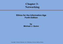 Chapter 3: Networking Ethics for the Information Age Forth Edition by Michael J. Quinn Copyright © Pearson Education, Inc. Publishing as Pearson Addison-Wesley Chapter Overview (1/2) • • • • • Introduction Email and spam Fighting spam World Wide Web Ethical perspectives on pornography 1-2 Copyright © Pearson Education, Inc. Publishing as Pearson Addison-Wesley 3-2 Chapter Overview (2/2) • • • • • Censorship Freedom of expression Children and the Web Breaking trust on the Internet Internet addiction 1-3 Copyright © Pearson Education, Inc. Publishing as Pearson Addison-Wesley 3-3 Introduction • Networking increases computer’s utility – In addition to Word processing, Excel, …etc, you can share printers, extra storage, exchange data, e-mail. • Internet connects millions of computers – Powerful computational resource • E-mail, surfing www, promoting your company. – Even more powerful communication medium • Network utility grows as number of users squared – 10 users 90 sender-receiver combinations – 100 users 9900 sender-receiver combinations • As people grows – Network may suffer overload – people may act irresponsibly Copyright © Pearson Education, Inc. Publishing as Pearson Addison-Wesley 1-4 3-4 How Email Works • Email: Messages embedded in files transferred between computers • Email address: Uniquely identifies cyberspace mailbox (2-parts User….@ Domain....) • Messages broken into packets • Routers transfer packets from sender’s mail server to receiver’s mail server 1-5 Copyright © Pearson Education, Inc. Publishing as Pearson Addison-Wesley 3-5 The Spam Epidemic (1/2) • Spam: Unsolicited, bulk email • Amount of email that is spam has increased – – – – 8% in 2001 40% in 2003 75% in 2007 90% in 2009 • Spam is effective (Cheap way for Ads. $500 - $2000) – A company hires an internet marketing firm to send thousands of emails – More than 100 times cheaper than “Junk mail” – Profitable even if only 1 in 100,000 buys product 1-6 Copyright © Pearson Education, Inc. Publishing as Pearson Addison-Wesley 3-6 The Spam Epidemic (2/2) • How firms get email addresses – Opt-in lists – Dictionary attacks (made-up email addresses to ISP that bounce back) • Spammers seek anonymity – Change email and IP addresses to disguise sending machine – Hijack another insecure system as a spam launch pad • Spam blockers – Attempt to screen out spam (spam filters) by blocking suspicious subject lines. – Have led to more picture-based spam 1-7 Copyright © Pearson Education, Inc. Publishing as Pearson Addison-Wesley 3-7 Ethical Evaluations of Spamming • Kantian evaluation (receiving ads via cell phone costs money. Using people as a means for an end ---- profit) • Act utilitarian evaluation (1 from 100,000 will buy) • Rule utilitarian evaluation (if millions of people are interested to respond to a spam there will be no way to accommodate them). In practice tiny users respond and many others are thinking of dropping their accounts) • Social contract theory evaluation (you have the right to free speech doesn’t mean that all will listen – spammers are not introducing themselves. • From all these perspectives, it is wrong to send spam 1-8 Copyright © Pearson Education, Inc. Publishing as Pearson Addison-Wesley 3-8 Fighting Spam: Real-Time Blackhole List • Trend Micro contacts marketers who violate standards for bulk email – ( a DB of IP addresses that make spam. Trend Micro sells this DB to organizations) – Unsecured mail servers that have been hijacked may be regarded as spammers and they will be block even if they are not spammers) 1-9 Copyright © Pearson Education, Inc. Publishing as Pearson Addison-Wesley 3-9 Ethical Evaluations of Publishing Blacklist • Social contract theory evaluation – Senders and receivers do not derive equal benefit from emails. • Utilitarian evaluation – Blacklisting will affect innocent users, receivers and marketing firms, this will reduce the benefits of internet utility as a whole. • Kantian evaluation – Innocent users are used as a means for an end (eliminating spams) 1-10 Copyright © Pearson Education, Inc. Publishing as Pearson Addison-Wesley 3-10 Proposed Solutions to Spam Epidemic • Require an explicit opt-in of subscribers • Require labeling of email advertising (all commercial emails must write ADS on the subject line) • Add a cost to every email that is sent for ads. A micropayment systems is proposed • Ban unsolicited email by laws (laws to prohibit spam as those laws made to junk faxes) 1-11 Copyright © Pearson Education, Inc. Publishing as Pearson Addison-Wesley 3-11 Emergence of “Spim” • “Spim” is an unsolicited, bulk instant message. – Ex: IM that has a link to porn site. • People combat spim by accepting messages only from friends or buddies 1-12 Copyright © Pearson Education, Inc. Publishing as Pearson Addison-Wesley 3-12 Need for Socio-Technical Solutions • New technologies sometimes cause new social situations to emerge – Calculators feminization of bookkeeping – Telephones blurred work/home boundaries • Spam an example of this phenomenon – Email messages practically free – Profits increase with number of messages sent – Strong motivation to send more messages • Internet design allows unfair, one-way communications – You might receive e-mail But you cant reply 1-13 Copyright © Pearson Education, Inc. Publishing as Pearson Addison-Wesley 3-13 Attributes of the Web • It is decentralized – No need for central authority – BUT it becomes difficult to control the Web • Every Web object has a unique address – URL. Every Web page has a unique URL • It is based on the Internet – It needs browsers, media for storage, SW for retrieving data, ftp, OSs…etc. 1-14 Copyright © Pearson Education, Inc. Publishing as Pearson Addison-Wesley 3-14 How We Use the Web • Shopping • Contributin