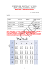 LORNE PARK SECONDARY SCHOOL SBI 4UO BIOLOGY FINAL EXAM PRACTICE EXAMINATION 13 PAGES TOTAL NAME:_____________________________________________________ PART OUT OF MARK TIME ALLOTTED KNOWLEDGE 40 MARKS 40 MINUTES APPLICATION 43 MARKS 50 MINUTES INQUIRY TOTAL 20 MARKS 30 MINUTES 120 MINUTES NOTE: THIS EXAM IS AN ILLUSTRATION OF THE FORMAT OF A GRADE 12 FINAL EXAM AND NOT A STUDY GUIDE. YOUR PERFORMANCE ANSWERING THESE QUESTIONS IS NOT ADEQUATE REVIEW OF COURSE MATERIAL ON THE ACTUAL FINAL EXAM AND IS NOT A REPLACEMENT FOR REVIEW SHEETS PREPARED BY YOUR TEACHER. The genetic code 1 SBI 4U0 BIOLOGY PRACTICE EXAM Multiple Choice - KNOWLEDGE Identify the choice that best completes the statement or answers the question and mark the corresponding space on your Scantron card. ____ 1. In looking at the periodic table, the following information would be found about nitrogen: ____ 2. ____ 3. ____ 4. ____ 5. From the above, it can be determined that an atom of nitrogen has the following characteristics: a. it has 7 protons, 14 neutrons and 7 electrons b. it has 2 protons in the first energy level and 5 protons in the second energy level c. it has an atomic mass of 14 atomic mass units and 7 electrons d. it has 7 neutrons and 4 electrons e. it as an atomic number of 14 and contains 7 protons One of the ways organisms maintain a stable internal environment (homeostasis) is to use buffers to keep the pH of their body fluids within narrow limits. A biology student mixes 200 mL of a buffered solution with a pH of 4 (solution 'X') with 200 mL of a base (solution 'Y'). After mixing, the pH of the resulting solution (solution 'Z') was found to have risen to 5. Which of the following statements can be made in connection with the experiment described? I. solution 'Z' contains more hydroxyl ions per unit volume than solution 'Y' II. there were 10 times as many hydronium ions in solution 'X' per unit volume than there were in solution 'Z' III. solution 'Z' contains a higher concentration of hydronium ions than solution 'X' IV. solution 'Y' used up all of the buffering action of solution 'X' V. the pH of solution 'B' was 8 a. I, II, II, IV and V d. I, II, and V only b. II, III, and IV only e. II and IV only c. III and IV only In living organisms, buffers do which of the following? a. prevent charged particles from entering cells b. neutralize the effect of enzymes c. maintain pH in the cells within a narrow range, allowing enzymes to function d. allow the pH of cells to change without affecting the action of the enzymes e. maintain cytoplasm in a fluid condition Which three of the following are characteristics of hydrogen bonds? I. They are responsible for the surface tension properties of water. II. They are responsible for the relatively high boiling point of water. III. They are stronger than ionic bonds. IV. They are present in all substances. V. They are weaker than covalent bonds. a. III, IV and V d. II, III and IV b. I, II and V e. I, III, and IV c. I, III and IV Which of the functional groups illustrated below would you expect to find in an amino acid? 1 2 3 4 5 a. 1, 2, and 4 b. 2, and 3 c. 2, 4, and 5 ____ d. 1 and 4 e. 3 and 5 6. Of the following, which is not considered to by a polymer? a. cellulose d. protein b. RNA e. fat c. starch 2 ____ ____ ____ ____ ____ ____ ____ ____ ____ 7. In humans, the function of glycogen is to a. synthesize proteins d. increase osmotic pressure in cells b. dilute the blood plasma e. store glucose in plants c. keep glucose available 8. Many people are aware that water is the most abundant substance in all organisms. However, next to water, what is the major component of living cells? a. nucleotides d. vitamins b. carbohydrates e. lipids c. proteins 9. Aerobic respiration involves which one of the following? a. the input of energy into cells without sufficient oxygen b. the release of energy in cells without sufficient oxygen c. the sequence of events in fermentation d. breathing very rapidly, getting too much oxygen into the blood e. the release of energy in cells with an adequate supply of oxygen 10. Where in the electron transport chain does the energy come from for the synthesis of ATP? a. the combination of hydrogen ions, electrons, and oxygen to form water b. the breakdown of water c. the cytochromes d. an electrochemical gradient across the inner mitochondrial membrane e. oxygen 11. During aerobic cellular respiration, which of the following molecules activates Krebs cycle? a. citrate d. acetyl coenzyme A b. pyruvate e. carbon dioxide c. cytochrome oxidase 12. The major advantage of aerobic respiration to humans is that we a. cannot obtain more usable energy from food by aerobic respiration b. must always use anaerobic respiration for movement c. obtain more usable energy by aerobic respiration d. must always use aerobic respiration for movement e. cannot release energy from food by anaerobic respiration 13. Which of the following will affect stomatal opening and closing? I. air temperature II. amount to water in the soil III. brightness of ambient light IV. turgor pressure of the guard cells V. humidity a. I, III and V only d. I, III, IV and V b. IV and V only e. I, II, III, IV and V c. I, IV and V only 14. Temporal separation refers to a. the Calvin cycle d. cellular respiration b. the C4 pathway e. oxidative phosphorylation c. the CAM pathway 15. Photosynthesis is important to the planet because it releases a. both ATP and oxygen d. NADH b. oxygen e. ATP c. carbon dioxide The table below summarizes data obtained in an experiment on oxygen evolution by different plants species grown under different lighting conditions. Assume that the plants are of comparable size. Plant Type of light Volume of oxygen Temperature Time (days) given off (mL) (C) Corn Corn Barley Barley incandescent fluorescent incandescent fluorescent 200 400 200 150 20 22 22 22 5 10 5 5 ____ 16. Which of the following is a reasonable interpretation? a. oxygen production is more rapid in barley in inc