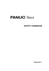 <> SAFETY HANDBOOK B-80687EN/15 • Original Instructions Thank you very much for purchasing FANUC Robot. Before using the Robot, be sure to read this manual and understand the content. • No part of this manual may be reproduced in any form. • The appearance and specifications of this product are subject to change without notice. The products in this manual are controlled based on Japan's “Foreign Exchange and Foreign Trade Law". The export from Japan may be subject to an export license by the government of Japan. Further, re-export to another country may be subject to the license of the government of the country from where the product is re-exported. Furthermore, the product may also be controlled by re-export regulations of the United States government. Should you wish to export or re-export these products, please contact FANUC for advice. In this manual, we endeavor to include all pertinent matters. There are, however, a very large number of operations that must not or cannot be performed, and if the manual contained them all, it would be enormous in volume. It is, therefore, requested to assume that any operations that are not explicitly described as being possible are "not possible". PREFACE B-80687EN/15 PREFACE This manual explains cautions for safety usage of the FANUC robot. A robot cannot work alone without the end effector or peripheral equipment. Only after it is combined with the end effector and peripheral equipment and assembled as a system, the robot can demonstrate works. In other words, the robot is one part of a system. FANUC is not and does not represent itself as an expert in safety systems, safety equipment, or the specific safety aspects of your company and/or its workplace. It is the responsibility of the owner, employer, or user to take all necessary steps to guarantee the safety of all personnel in the workplace. The appropriate level of system safety for your application and installation can best be determined by system safety professionals. FANUC therefore, recommends that each customer consult with such professionals in order to provide a safe application. Additionally, robot system owner, it is your responsibility to arrange for the professional training of the personnel in charge of a robot system to recognize known hazards associated with the robot and use it safely. Because FANUC prepares for the professional training course of the robot, please use it. It is recognized that the operational characteristics of robots can be significantly different from those of other machines and equipment. Robots are capable of high energy movements through a large volume beyond the base of robots. Although robots are substitution for work in the dangerous zone or harmful zone, they may cause work-related accidents. So perfect safety measures for usage are required when it is introduced. In order to prevent work-related accidents by the robot, as indicators of the steps that an employer should take "Technical Guidance on Safety Standard of Industrial Robot Use", the "Ordinance on Industrial Safety and Health", and safe standards (JIS, ISO, IEC, etc.) are available, these describe the matters taken into consideration during installation and usage. This manual provides some tips and guidelines for the robot system safety design based on the above standards. Before using the FANUC robot, be sure to read this manual to understand the contents. p-1 TABLE OF CONTENTS B-80687EN/15 DEFINITION OF SAFETY NOTATIONS To ensure the safety of workers and prevent damage to the machine, this manual indicates each precaution on safety with "Warning" or "Caution" according to its severity. Read the contents of each "Warning" and "Caution" before attempting to use the robot. Symbol Definitions WARNING Used if hazard resulting in the death or serious injury of the user will be expected to occur if he or she fails to follow the approved procedure. Used if a hazard resulting in the minor or moderate injury of the user, or equipment damage may be expected to occur if he or she fails to follow the approved procedure. Used if a supplementary explanation not related to any of WARNING and CAUTION is to be indicated. CAUTION NOTE p-2 TABLE OF CONTENTS B-80687EN/15 TABLE OF CONTENTS PREFACE ....................................................................................................p-1 1 SAFETY PRECAUTIONS........................................................................ 1 1.1 2 DEFINITION OF USER ................................................................................. 1 FANUC ROBOT SYSTEM....................................................................... 3 2.1 2.2 PURPOSE OF ROBOT ................................................................................. 3 CONFIGURATION OF ROBOT SYSTEM ..................................................... 3 2.2.1 2.3 3 ROBOT SYSTEM DESIGN ..................................................................... 6 3.1 3.2 3.3 3.4 3.5 4 GENERAL ..................................................................................................... 6 PLACEMENT OF EQUIPMENT..................................................................... 6 POWER SUPPLY AND PROTECTIVE EARTH CONNECTION .................... 9 OTHER PRECAUTIONS ............................................................................... 9 END EFFECTOR, WORKPIECE AND PERIPHERAL EQUIPMENT ........... 11 SAFETY DEVICES ................................................................................ 12 4.1 4.2 4.3 4.4 4.5 STOP TYPE OF ROBOT (R-30iA, R-30iA Mate) ........................................ 12 STOP TYPE OF ROBOT (R-30iB, R-30iB Mate) ........................................ 14 STOP TYPE OF ROBOT (R-30iB Plus, R-30iB Mate Plus, R-30iB Compact Plus) ............................. 18 EMERGENCY STOP ................................................................................... 22 MODE SELECT SWITCH .................................................................