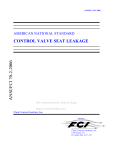ANSI/FCI 70-2-2006 AMERICAN NATIONAL STANDARD CONTROL VALVE SEAT LEAKAGE Non-commercial Use, Only for Study. https://cncontrolvalve.com Fluid Controls Institute, Inc. Sponsor: Fluid Controls Institute, Inc. 1300 Sumner Ave Cleveland, Ohio 44115-2851 ANSI/FCI 70-2-2006 AMERICAN NATIONAL STANDARD Control Valve Seat Leakage Sponsor Fluid Controls Institute, Inc. Non-commercial Use, Only for Study. https://cncontrolvalve.com ii American National Standard American National Standard implies a consensus of those substantially concerned with its scope and provisions. An American National Standard is intended as a guide to aid the manufacturer, the consumer, and the general public. The existence of an American National Standard does not in any respect preclude anyone, whether he has approved the standard or not, from manufacturing, marketing, purchasing or using products, processes, or procedures not conforming to the standard. American National Standards are subject to periodic review and users are cautioned to obtain the latest editions. CAUTION NOTICE: This American National Standard may be revised or withdrawn at any time. The procedures of the American National Standards Institute require that action be taken to reaffirm, revise, or withdraw this standard no later than five years from the date of publication. Purchasers of American National Standards may receive current information on all standards by calling or writing the American National Standards Institute. www.bzfxw.com Sponsored and published by: FLUID CONTROLS INSTITUTE, INC. 1300 Sumner Avenue Cleveland, OH 44115-2851 Phn: 216/241-7333 Fax: 216/241-0105 E-Mail: fci@fluidcontrolsinstitute.org URL: www.fluidcontrolsinstitute.org Copyright © 2006, 1998, 1968 by Fluid Controls Institute, Inc. All Rights Reserved Non-commercial Use, Only for Study. No part of this publication may be reproduced in any form, in an electronic retrieval system or otherwise, without the prior written https://cncontrolvalve.com permission of the publisher. Suggestions for improvement of this standard will be welcome. They should be sent to the Fluid Controls Institute, Inc. Printed in the United States of America iii CONTENTS PAGE Foreword .............................................................................................................................. v 1. Purpose .......................................................................................................................... 1 2. Scope and Limitations ................................................................................................... 1 3. Definitions...................................................................................................................... 1 4. Leakage Specifications and Classes............................................................................... 1-2 5. Test Procedures .............................................................................................................. 2-4 6. References...................................................................................................................... 4 Tables Table 1 .................................................................................................................................. 2 Table 2 .................................................................................................................................. 3 www.bzfxw.com Non-commercial Use, Only for Study. https://cncontrolvalve.com iv Foreword (This foreword is included for information only and is not part of ANSI/FCI 70-2-2006, Control Valve Seat Leakage.) This voluntary standard has been compiled and issued in the public interest. It is intended to eliminate present misunderstandings and to assist and guide those people involved in the specification, use or manufacture of control valves. This standard, formerly known as ASME B16.104, was originally adopted on November 24, 1970 as FCI 70-2. The standard has been revised several times through the years to stay current as the industry and its products have evolved and advanced. The standard was revised by the FCI Control Valve Section in 1998 in order to maintain consistency with the appropriate IEC Standards (IEC 534-4). The standard was revised in 2003 to add the option to permit low pressure gas testing to determine Class V leakage. During the canvass of the 2003 version, one respondent asked for the standard to be modified to specifically exclude on/off valves used for tight shut-off. The FCI Control Valve and Regulator Section notes that FCI 70-2 has been intended to apply to control valve seat leakage. If line isolation and/or absolute tight shut-off is a normal expectation of the valve application, the FCI Control Valve and Regulator Sections recommend specifying another standard, such as API 598, “Valve Test and Inspection.” The existence of a Fluid Controls Institute (FCI) standard does not in any respect preclude any member or non-member from manufacturing or selling products not conforming to this standard nor is the FCI responsible for its use. www.bzfxw.com FCI recognizes the need to periodically review and update this standard. Suggestions for improvement should be forwarded to the Fluid Controls Institute, Inc., 1300 Sumner Avenue, Cleveland, Ohio, 44115-2851. All constructive suggestions for expansion and revision of this standard are welcome. Non-commercial Use, Only for Study. https://cncontrolvalve.com v ANSI/FCI 70-2-2006 AMERICAN NATIONAL STANDARD Control Valve Seat Leakage 1. PURPOSE 3.4 Rated Travel. The valve travel at which the manufacturer's rating is established. 1.1 This standard establishes a series of seat leakage classes for control valves and defines the test procedures. 2. 3.5 Seat Leakage. The quantity of test fluid passing through an assembled valve in the closed position under the test conditions as defined. SCOPE & LIMITATIONS 4. 2.1 Selection of a leakage class is not restricted as to valve design, but a