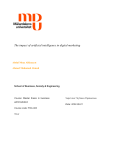 The impact of artificial intelligence in digital marketing Abdul Moaz Alkhayyat Ahmed Mohamud Ahmed School of Business, Society & Engineering Course: Master thesis in business Supervisor: Stylianos Papaioannou administration Date: 2022-06-01 Course code: FOA 403 15 cr ABSTRACT Date: 2022-06-01 Level: Master thesis in Business Administration, 15 cr Institution: School of Business, Society and Engineering, Mälardalen University Authors: Ahmed Mohamud Abdulmoaz Alkhayyat (93/06/29) (97/01/01) Title: The impact of Artificial Intelligence in Digital Marketing Supervisor: Stylianos Papaioannou Keywords: Artificial Intelligence (AI) Machine learning (ML) Search engine optimization (SEO) Research question How does AI affect digital marketing and help companies improve their performance? Purpose: The aim of this study is to determine the Impact of AI in digital marketing by analyzing and determining how companies utilize AI to improve performance. Method: This is a qualitative study with an inductive approach conducted using semi structured interview questions and analyzed using template analysis. Conclusion: Marketers have high standards that AI will continue to develop automation parameters and that automation will gradually take over the majority of marketing procedures. Marketers today are willing to learn how to improve digital marketing to touch on every customer and clearly express their desires. AI can help companies reach their potential marketing goals. 1 Table of content 1.0 Introduction 1.1 Background 1.2 Research problem 1.3 Purpose and objectives 1.4 Scope and significance of the study 1.5 Key Concepts 4 4 5 7 7 8 2.0 Literature review and conceptual model 2.1 Artificial Intelligence 2.1.1 Machine Learning 2.1.2 Deep Learning 2.2 Digital marketing 2.3 Digital Marketing Tools 2.3.1 Content Marketing 2.3.2 Search Engine Optimization 2.3.3 Social media marketing 2.4 AI-driven marketing 2.5 Marketing automation theory 2.6 Conceptual model 9 9 11 12 13 14 14 15 15 17 18 20 3.0 Methodology 3.1 Approach 3.2 Data collection 3.3 Primary data 3.4 Secondary data 3.5 Data Analysis 3.6 Ethical Considerations 3.7 Validity and Reliability 21 21 21 22 23 24 25 26 4.0 Findings. 4.1 Collected data 4.1.1 Template analysis of the interview with marketers 4.1.2 Interview template analysis with AI experts. 27 27 27 29 5.0 Analysis and Discussion 5.1 Viewpoints of AI in marketing 5.2 The impact of AI on marketers’ responsibilities and its development. 5.3 Value of AI in marketing 5.4 Skills for Implementing AI in marketing 6.0 Conclusion 6.1 Managerial Implication 30 31 32 33 35 36 38 39 2 6.2 Limitations of the study 6.3 Recommendation for future research 40 41 7.0 References 42 8.0 Appendix Appendix A Appendix B 54 54 56 3 1.0 Introduction The purpose of this chapter is to introduce the reader to the thesis topic and the background will include information about the main concepts of the research question, followed by the research problem. Finally, the scope and the significance of the study will be presented. 1.1 Background When a group of 1,500 top corporate leaders in the United States were interviewed regarding artificial intelligence in 2017, just 17% stated they were acquainted with it and this shows that the majority of people are unfamiliar with the concept of Artificial intelligence (Deloitte, 2017). (Kaplan, 2019) defines Artificial intelligence as a system's capability to accurately understand external input, learn from it, and apply that knowledge to accomplish specific performance targets through adjustable adaptation. Marketing is an area considered to be among the most viable for improvement and it was discovered that the deployment of artificial intelligence in marketing has the most revenue potential and success (Fagella, 2019). The PwC (2017) report anticipated that investments in artificial intelligence development would result in a 14% increase in global GDP by 2030. Furthermore, it was also forecasted that AI would generate $13 trillion in output by 2030, increasing the global GDP by about 1.2 percent annually (Bughin et al., 2018). According to a survey of worldwide marketers done in late 2020, 41% of respondents reported an improvement in revenue growth and enhanced performance as a result of the employment of AI in their marketing initiatives. Another 38% linked the creation of tailored consumer experiences to the usage of AI in marketing (Gutman, 2021). Artificial intelligence is likely to contribute a lot to previously human performed functions such as effective communication, conversing, and showing empathy. Smart virtual assistants are already an example of this trend in action and some companies are already using this through digital marketing to provide new possibilities (Faruk et al., 2021). Marketing in addition to fields such as finance, healthcare, engineering and education have been reformed drastically in the last two decades because of AI (Huang & Rust, 2018; Rust, 2020). Huge digitized effects are being introduced due to the fact that the intercommunication between consumers and firms is becoming more personal which is the main reason behind the rise in investments in machine learning by organizations to boost 4 their marketing competence, because of the affluence of data. BCC research estimated that a yearly growth rate of 43.6% will affect the market of machine learning solutions to reach 8.8 billion by 2022 (Information Technology Industry Analysis & Market Research Report, 2022). Technological advancements are enabling enterprises to produce massive quantities of goods and use digital marketing to expand industries' opportunities to advertise and sell products to clients, digital marketing has the potential to have a profound effect on individuals at a specific moment, in a specific location, and via a specific channel (Ali & Manisha, 2020). Furthermore, Industrial advancements in digital marketing are the result of merging big data and scientific study on sma