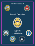 Joint Publication 3-30 Joint Air Operations 25 July 2019 Validated on 17 September 2021 PREFACE 1. Scope This publication provides fundamental principles and guidance for the conduct of joint air operations. It addresses considerations to form and establish a joint force air component with a designated joint force air component commander and provides principles and guidance to plan, execute, and assess joint air operations across the range of military operations. 2. Purpose This publication has been prepared under the direction of the Chairman of the Joint Chiefs of Staff (CJCS). It sets forth joint doctrine to govern the activities and performance of the Armed Forces of the United States in joint operations, and it provides considerations for military interaction with governmental and nongovernmental agencies, multinational forces, and other interorganizational partners. It provides military guidance for the exercise of authority by combatant commanders and other joint force commanders (JFCs), and prescribes joint doctrine for operations and training. It provides military guidance for use by the Armed Forces in preparing and executing their plans and orders. It is not the intent of this publication to restrict the authority of the JFC from organizing the force and executing the mission in a manner the JFC deems most appropriate to ensure unity of effort in the accomplishment of objectives. 3. Application a. Joint doctrine established in this publication applies to the Joint Staff, commanders of combatant commands, subordinate unified commands, joint task forces, subordinate components of these commands, the Services, the National Guard Bureau, and combat support agencies. b. This doctrine constitutes official advice concerning the enclosed subject matter; however, the judgment of the commander is paramount in all situations. c. If conflicts arise between the contents of this publication and the contents of Service publications, this publication will take precedence unless the CJCS, normally in coordination with the other members of the Joint Chiefs of Staff, has provided more current and specific guidance. Commanders of forces operating as part of a multinational (alliance i Preface or coalition) military command should follow multinational doctrine and procedures ratified by the United States. For doctrine and procedures not ratified by the United States, commanders should evaluate and follow the multinational command’s doctrine and procedures, where applicable and consistent with US law, regulations, and doctrine. For the Chairman of the Joint Chiefs of Staff: DANIEL J. O’DONOHUE Lieutenant General, USMC Director, Joint Force Development ii JP 3-30 SUMMARY OF CHANGES REVISION OF JOINT PUBLICATION 3-30 DATED 10 FEBRUARY 2014 • This publication was validated without change on 17 September 2021. • Changes the title to remove “Command and Control” and updates the scope. • Corrects terminology on coordination measures for airspace control. • Updates the area air defense commander responsibilities. • Updates the figure for the Theater Air Control System: Army Air-Ground System. • Adds a description of the technique of using an “integrated air tasking order.” • Changes the process title to “joint planning process for air” to align with the joint planning process. • Updates and aligns the description of joint targeting entities and processes. • Expands the discussion of the process for the assessment of joint air operations. • Updates the discussion of the employment of unmanned aircraft systems (UASs), to include considerations for countering enemy UASs. • Adds a discussion of considerations and integration of cyberspace operations. • Adds a description of the roles and responsibilities for space and cyberspace liaisons within the joint air operations center. iii Summary of Changes Intentionally Blank iv JP 3-30 TABLE OF CONTENTS EXECUTIVE SUMMARY ............................................................................................... ix CHAPTER I INTRODUCTION General ........................................................................................................................ I-1 Organization of Forces ................................................................................................ I-2 Joint Air Operations .................................................................................................... I-3 CHAPTER II COMMAND AND CONTROL OF JOINT AIR OPERATIONS Section A. Establishing Command and Control Joint Force Commander .............................................................................................II-1 Joint Force Air Component Commander ...................................................................II-2 Airspace Control Authority........................................................................................II-4 Area Air Defense Commander...................................................................................II-6 Section B. Exercising Command and Control Joint Air Operations Command and Control System ................................................II-8 Joint Force Air Component Command Organization ..............................................II-14 Joint Force Staff Options .........................................................................................II-21 Liaisons ....................................................................................................................II-22 Joint Force Air Component Commander Basing and Transition.............................II-23 Communications System .........................................................................................II-25 Command and Control of Joint Air Operations for Defense Support of Civil Authorities and Homeland Defense ............................................................II-26 CHAPTER III PLANNING AND EXECUTING JOINT AIR OPERATIONS Section A. Planning and Executing Joint Air Oper