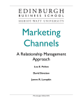 Marketing Channels A Relationship Management Approach Lou E. Pelton David Strutton James R. Lumpkin MC-A3-engb 1/2016 (1019) This course text is part of the learning content for this Edinburgh Business School course. In addition to this printed course text, you should also have access to the course website in this subject, which will provide you with more learning content, the Profiler software and past examination questions and answers. The content of this course text is updated from time to time, and all changes are reflected in the version of the text that appears on the accompanying website at http://coursewebsites.ebsglobal.net/. Most updates are minor, and examination questions will avoid any new or significantly altered material for two years following publication of the relevant material on the website. You can check the version of the course text via the version release number to be found on the front page of the text, and compare this to the version number of the latest PDF version of the text on the website. If you are studying this course as part of a tutored programme, you should contact your Centre for further information on any changes. Full terms and conditions that apply to students on any of the Edinburgh Business School courses are available on the website www.ebsglobal.net, and should have been notified to you either by Edinburgh Business School or by the centre or regional partner through whom you purchased your course. If this is not the case, please contact Edinburgh Business School at the address below: Edinburgh Business School Heriot-Watt University Edinburgh EH14 4AS United Kingdom Tel + 44 (0) 131 451 3090 Fax + 44 (0) 131 451 3002 Email enquiries@ebs.hw.ac.uk Website www.ebsglobal.net The courses are updated on a regular basis to take account of errors, omissions and recent developments. If you’d like to suggest a change to this course, please contact us: comments@ebs.hw.ac.uk. Marketing Channels Dr Lou E. Pelton is an award-winning teacher and researcher in the College of Business Administration at The University of North Texas. Dr Pelton’s principal research interests include marketing channels, relationship marketing and international distribution. Dr Pelton currently serves as coordinator of two American Marketing Association special interest groups and track chairperson for the Academy of Marketing Science’s World Marketing Congress. He has served as officer in a number of national and regional marketing associations as well. Dr Pelton has headlined many professional education and training seminars in the US and abroad. He currently manages a global electronic bulletin board addressing relationship marketing theory and practice. Dr David Strutton is the Acadiana Bottling and J. Wesley Steen Regents Professor in Business Administration at the University of Southwestern Louisiana. Dr Strutton’s principal research interests include business-to-business marketing, personal selling and sales management. Dr Strutton is treasurer of the Southwestern Marketing Association and an active member of the Academy of Marketing Science and the American Marketing Association. Dr James R. Lumpkin is the Dean of the Foster College of Business Administration, Bradley University. Dr Lumpkin is a past president of the Academy of Marketing Science and was named ‘Distinguished Fellow’ of the Academy in 1992. He is a past marketing editor of the Journal of Business Research. Dr Lumpkin’s primary research interests include retail patronage theory, health-care marketing and research methodology. His recent research has focused on the elderly consumer. He has received a number of research grants to study the marketplace behaviour and long-term health-care decisions for the elderly consumer. Before entering academe, Dr Lumpkin worked as a chemist and in marketing research for Phillips Petroleum Company. In addition to his corporate experience, he has directed two consumer research panels. First Published in Great Britain in 2001. © Pelton, Strutton and Lumpkin 2001 The rights of Lou E. Pelton, David Strutton and James R. Lumpkin to be identified as Authors of this Work have been asserted in accordance with the Copyright, Designs and Patents Act 1988. Adapted under license from Marketing Channels: a Relationship Management Approach, 2nd Edition (PeltonStrutton-Lumpkin). Original edition copyright 2002 The McGraw-Hill Companies, Inc. All rights reserved; no part of this publication may be reproduced, stored in a retrieval system, or transmitted in any form or by any means, electronic, mechanical, photocopying, recording, or otherwise without the prior written permission of the Publishers. This book may not be lent, resold, hired out or otherwise disposed of by way of trade in any form of binding or cover other than that in which it is published, without the prior consent of the Publishers. With love and respect to my Mom and Dad, Beverly and Sam Pelton, and their three daughters. Lou E. Pelton With love to my wife Dita and my daughter Ariadne, my parents Jack and Becky Strutton, my mother-inlaw Spyros Kavyas. David Strutton With love to my wife Linda, and daughters Kristi and Kelli. James R. Lumpkin Contents Introduction xiii xiii xiv Instructions on Using Study Programme Materials Conclusion Preface xv A Course for Exploring the Nature and Scope of Exchange Relationships in Marketing Channel Settings A Model-Driven Approach, the CRM Provides Direction for the Entire Course xv xv Acknowledgments xvii PART 1 MARKETING CHANNELS FRAMEWORK Module 1 Where Mission Meets Market 1/1 1.1 The Elements of Successful Marketing Channels 1.2 What Is a Marketing Channel? 1.3 Evolution of Marketing Channels 1.4 Channel Intermediaries: The Customer Value Mediators 1.5 Channel Relationship Model (CRM) 1.6 The CRM: Compass Points 1.7 Key Terms Learning Summary Review Questions 1/1 1/4 1/5 1/9 1/15 1/18 1/19 1/19 1/20 Channel Roles in a Dynamic Marketplace 2/1 2.1 Channel Behaviours in Com