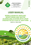 2 0 2 4 USER MANUAL MOBILE-ENABLED SEEDLING MONITORING AND WATER SCHEDULING SYSTEM WITH CROP DISEASE DETECTION OF J&M FARM BSCS A.Y 2023-2024 Table Of Contents 01 Introduction 02 System Requirements 03 System Introductions 04 System Navigation 05 About the Developers INTRODUCTION J&M CROPS & AGRICULTURAL TRADING General Trias City, Cavite Philippines Situated in the bustling community of Chateau Real Homes on Metropolis Drive in General Trias, Cavite, Philippines, J&M Crops and Agricultural Supplies has been a prominent player in the agricultural sector since its establishment in 2021. Under the visionary leadership of Mr. Mark Aries P. Camiguing, J&M Crops is dedicated to promoting sustainable farming practices and pioneering innovative solutions in modern agriculture. J&M Crops has swiftly become a recognized leader in the region, seamlessly blending traditional farming methods with cutting-edge technology. The company's state-of-the-art facilities, including advanced greenhouses designed for precision cultivation, stand as a testament to its commitment to innovation. INTRODUCTION This innovative application leverages cuttingedge technology to optimize the management of seedling growth and crop health. By integrating sensors to measure soil moisture, water levels, UV light exposure, temperature, and humidity, the system provides real-time data to ensure optimal growing conditions. Key features include precise water scheduling and an advanced crop disease detection system, capable of identifying common diseases such as Bacteria Infected, Downy Mildew, Powdery Mildew, Septoria Blight, Viral Disease, Wilt, and Leaf Blight. The application also incorporates a SIM800L V2 GSM module for remote communication via SMS, ensuring farmers receive critical updates and alerts anytime, anywhere. This comprehensive solution is designed to enhance productivity, reduce resource wastage, and maintain healthy crops, making it an indispensable tool for modern farming operations at J&M Hydroponic Farm. SYSTEM REQUIREMENTS SYSTEM REQUIREMENTS Developed specifically for J&M Hydroponic Farm, SeedVision is an advanced mobile application designed to revolutionize the way farmers manage their crops. By integrating state-of-the-art technology, SeedVision offers comprehensive monitoring and management solutions to ensure optimal growth conditions for crops. Android Device Android 7.0 Nougat Operating System in its highest version with a minimum of 1 GHz for the average processor and at least 2 GB of RAM with 18 GB inbuilt Internet Connection The application relies on real-time data transmission and remote communication to provide accurate monitoring and timely updates. Ensure that your device is connected to a reliable internet source to fully utilize SeedVision's features, including remote monitoring, SMS alerts, and cloud-based data storage. Processor For optimal performance and a seamless user experience, we recommend that the Admin device be equipped with a 2 GHz processor and the latest available version of the Android operating system. These specifications ensure smooth operation, allowing the Admin to efficiently manage the various functionalities of SeedVision. SYSTEM INSTRUCTIONS SYSTEM REQUIREMENTS 01 Download the APK Obtain the application's APK file in order to deploy it. You can obtain it from various locations, such as the developer's files. 02 Locate the APK Navigate to the folder or location where the APK file was downloaded. The default location is the "Downloads" folder, but this can very depending on your preferences. 03 04 Start the Installation To begin the installation procedure, tap the APK file. A confirmation prompt may appear before installing the application. Review the app's requested permissions and proceed if you agree with them. Install the APK To initiate the installation, tap the "Install" button. The device will now extract the necessary files and install the APK. 05 Complete the Installation Once the installation is complete, you will see a message stating "App Installed" or something similar. You can choose to launch the app directly from that location or you can access it later from the app drawer or main screen. SYSTEM NAVIGATION SYSTEM NAVIGATION I. DASHBOARD 1. Navigation Bar The bottom navigation bar in SeedVision, a mobile app for seedling monitoring, water scheduling, and crop disease detection at J&M Farm, offers quick access to essential features. The Dashboard provides summarized data and quick actions. Notification lists SMS reports of stats and times. Harvest Data includes a calendar for harvest dates. Capture Image lets users upload crop photos for disease detection. Realtime Disease Detection scans crops using the camera. About Us provides developer information. This design ensures efficient farm management. 2. System Analytics and Data Summaries On this page, it provides analytics and summarized data, offering valuable insights into system performance and trends. Users can monitor key metrics like water usage and disease detected. SYSTEM NAVIGATION I. DASHBOARD 3. Quick Action Buttons On this page, it shows the quick action buttons implemented to remotely trigger hardware functions, allowing users to efficiently control the system from their mobile devices. These buttons include "Force Water," "Status Update," "Phone Number," and "Schedule Watering." They enable immediate watering, provide realtime system information, update contact details, and set automated watering schedules, enhancing control and improving crop management. 4. Quick Action Button: Status Update On this page, when you click the Status Update button in the quick action buttons on the Dashboard of SeedVision, a prompt appears saying, "Request Status: Request sent successfully." The app then sends an SMS to provide you with the current status of your crop. This status includes detailed information on water level, temperature, moisture, humidity, and UV light exposure, helping you monitor the crop's 