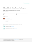 See discussions, stats, and author profiles for this publication at: https://www.researchgate.net/publication/279027358 Fifteen Effective Play Therapy Techniques Article in Professional Psychology Research and Practice · December 2002 DOI: 10.1037//0735-7028.33.6.515 CITATIONS READS 27 992 3 authors, including: Charles E. Schaefer Fairleigh Dickinson University 99 PUBLICATIONS 1,098 CITATIONS SEE PROFILE Some of the authors of this publication are also working on these related projects: Play Therapy techniques View project Book: The Therapeutic Powers of Play View project All content following this page was uploaded by Charles E. Schaefer on 25 March 2016. The user has requested enhancement of the downloaded file. Professional Psychology: Research and Practice 2002, Vol. 33, No. 6, 515–522 Copyright 2002 by the American Psychological Association, Inc. 0735-7028/02/$5.00 DOI: 10.1037//0735-7028.33.6.515 Fifteen Effective Play Therapy Techniques Tara M. Hall Heidi Gerard Kaduson Fairleigh Dickinson University Play Therapy Training Institute Charles E. Schaefer Fairleigh Dickinson University A plethora of innovative play therapy techniques have been developed in recent years to implement the therapeutic powers of play. The purpose of this article is to concisely describe 15 techniques that are effective, enjoyable, inexpensive, and easy to implement. Included in the description of each technique are the therapeutic rationale, materials needed, step-by-step implementation guide, and applications. The techniques selected are appropriate for 4 –12-year-old children and cover an extensive array of play approaches (e.g., art, fantasy, sensorimotor, and game play). The chosen techniques address several pertinent presenting problems such as anxiety, depression, impulsivity, distractibility, and noncompliance. proaches (e.g., sensorimotor, art, fantasy, and game play), (b) to focus on techniques appropriate for 4 –12-year-old children, and (c) to present techniques that are enjoyable, inexpensive, and easy to implement. The goals of the chosen techniques include helping children become aware of and express their feelings; manage anger; improve self-control; reduce fear, anxiety, and depression; increase empowerment; and enhance problem-solving skills. We do not intend this article to be viewed as a “cookbook” approach to play therapy. Rather, it is geared to providing the reader with a sample of the array of useful play techniques that exist. It is not expected that all techniques will work for all children. Selection for a particular case should be guided by play therapy theories and based on a thorough assessment of the individual client. Additionally, it should be noted that outcome research indicates that therapeutic gains are maximized when the parents are involved in treatment and when an optimal number of sessions are provided (Ray, Bratton, Rhine, & Jones, 2001). We encourage readers to use this article as a springboard for the development of their own creative techniques. For over 60 years, play therapy has been a well-established and popular mode of child treatment in clinical practice. One reason play therapy has proven to be a particularly useful approach with children is that they have not yet developed the abstract reasoning abilities and verbal skills needed to adequately articulate their feelings, thoughts, and behaviors. For children, toys are their words, and play is their conversation. Play therapy can be defined as an interpersonal process wherein a trained therapist systematically applies the curative powers of play (e.g., relationship enhancement, role-playing, abreaction, communication, mastery, catharsis, attachment formation, etc.) to help the clients resolve their current psychological difficulties and help prevent future ones. Play therapy techniques specify how to use the play materials so as to effectively implement the therapeutic powers of play (Schaefer, 1993). The purpose of this article is to describe 15 clinically useful play therapy techniques. Previously published reports have been simplified and condensed so as to highlight practical “how-to” information in a clear, concise format. A more complete description of each technique is found in the original publications. The selection of techniques for this article was guided by three main criteria: (a) to include an extensive variety of play ap- The Feeling Word Game Therapeutic Rationale Often children have difficulty verbalizing their feelings when directly questioned, either because they are guarded or they do not connect with those feelings they find most threatening. When involved in playing a game, children’s defenses are reduced, and they are more likely to talk about their feelings. The Feeling Word Game (by Heidi Kaduson; for details, see Kaduson & Schaefer, 1997, pp. 19 –21) allows children to communicate their feelings in an enjoyable, nonthreatening manner. TARA M. HALL is a doctoral candidate in clinical psychology at Fairleigh Dickinson University. She is currently an intern at Saint Luke’s–Roosevelt Hospital in New York City. HEIDI GERARD KADUSON received her PhD in clinical psychology in 1993 from Fairleigh Dickinson University. She is in independent practice and is codirector of the Play Therapy Training Institute in Hightstown, NJ. CHARLES E. SCHAEFER received his PhD in clinical psychology in 1967 from Fordham University. He is a professor of psychology at Fairleigh Dickinson University and cofounder of the Association for Play Therapy. His research interests focus on investigating positive psychology topics, including creativity, play, humor, and laughter. CORRESPONDENCE CONCERNING THIS ARTICLE should be addressed to Charles E. Schaefer, 540 Scarsdale Road, Yonkers, New York 10707. E-mail: SchaeferCE@aol.com Description Materials needed: eight 4 ⫻ 6-in. pieces of paper, a marker, and a tin filled with poker chips. 515 HALL, KADUSON, AND SCHAEFER 516 The therapist sits at 