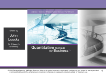 Slides by John Loucks St. Edward’s University © 2016 Cengage Learning. All Rights Reserved. May not be copied, scanned, or duplicated, in whole or in part, except for use as permitted in a license distributed with a certain product or service or otherwise on a password-protected website for classroom use. 1 CHAPTER 1: Introduction Body of Knowledge Problem Solving and Decision Making Quantitative Analysis and Decision Making Quantitative Analysis Models of Cost, Revenue, and Profit Quantitative Methods in Practice - - - - - - - © 2016 Cengage Learning. All Rights Reserved. May not be copied, scanned, or duplicated, in whole or in part, except for use as permitted in a license distributed with a certain product or service or otherwise on a password-protected website for classroom use. 2 Body of Knowledge The body of knowledge involving quantitative approaches to decision making is referred to as • Management Science • Operations Research • Decision Science It had its early roots in World War II and is flourishing in business and industry due, in part, to: • numerous methodological developments (e.g. simplex method for solving linear programming problems) • a virtual explosion in computing power - - - © 2016 Cengage Learning. All Rights Reserved. May not be copied, scanned, or duplicated, in whole or in part, except for use as permitted in a license distributed with a certain product or service or otherwise on a password-protected website for classroom use. 3 Problem Solving 7 Steps of Problem Solving (First 5 steps are the process of decision making) 1. Define the problem. 2. Determine the set of alternative solutions. 3. Determine the criteria for evaluating alternatives. 4. Evaluate the alternatives. 5. Choose an alternative (make a decision). --------------------------------------------------------------------6. Implement the selected alternative. 7. Evaluate the results. - L E © 2016 Cengage Learning. All Rights Reserved. May not be copied, scanned, or duplicated, in whole or in part, except for use as permitted in a license distributed with a certain product or service or otherwise on a password-protected website for classroom use. 4 Quantitative Analysis and Decision Making Decision-Making Process Structuring the Problem Define the Problem Identify the Alternatives Determine the Criteria Analyzing the Problem Identify the Alternatives Choose an Alternative • Problems in which the objective is to find the best solution with respect to one criterion are referred to as singlecriterion decision problems. • Problems that involve more than one criterion are referred to as multicriteria decision problems. - - - - © 2016 Cengage Learning. All Rights Reserved. May not be copied, scanned, or duplicated, in whole or in part, except for use as permitted in a license distributed with a certain product or service or otherwise on a password-protected website for classroom use. 5 Quantitative Analysis and Decision Making Analysis Phase of Decision-Making Process catgorical Qualitative Analysis • based largely on the manager’s judgment and experience • includes the manager’s intuitive “feel” for the problem • is more of an art than a science - © 2016 Cengage Learning. All Rights Reserved. May not be copied, scanned, or duplicated, in whole or in part, except for use as permitted in a license distributed with a certain product or service or otherwise on a password-protected website for classroom use. 6 Quantitative Analysis and Decision Making Analysis Phase of Decision-Making Process 5X + 7y = MaX Quantitative Analysis • analyst will concentrate on the quantitative facts 100 or data associated with the problem ext3Y X15 • analyst will develop mathematical expressions Y78 that describe the objectives, constraints, and other relationships that exist in the problem • analyst will use one or more quantitative methods to make a recommendation O - -- © 2016 Cengage Learning. All Rights Reserved. May not be copied, scanned, or duplicated, in whole or in part, except for use as permitted in a license distributed with a certain product or service or otherwise on a password-protected website for classroom use. 7 Quantitative Analysis and Decision Making Potential Reasons for a Quantitative Analysis Approach to Decision Making • The problem is complex. • The problem is critical. • The problem is new. • The problem is repetitive. - © 2016 Cengage Learning. All Rights Reserved. May not be copied, scanned, or duplicated, in whole or in part, except for use as permitted in a license distributed with a certain product or service or otherwise on a password-protected website for classroom use. 8 Quantitative Analysis and Decision Making Quantitative Analysis Process • Model Development • Data Preparation • Model Solution • Report Generation - © 2016 Cengage Learning. All Rights Reserved. May not be copied, scanned, or duplicated, in whole or in part, except for use as permitted in a license distributed with a certain product or service or otherwise on a password-protected website for classroom use. 9 Model Development Models are representations of real objects or situations Three forms of models are: • Iconic models - physical replicas (scalar representations) of real objects • Analog models - physical in form, but do not physically resemble the object being modeled • Mathematical models - represent real world problems through a system of mathematical formulas and expressions based on key assumptions, estimates, or statistical analyses - © 2016 Cengage Learning. All Rights Reserved. May not be copied, scanned, or duplicated, in whole or in part, except for use as permitted in a license distributed with a certain product or service or otherwise on a password-protected website for classroom use. 10 Model Development Generally, experimenting with models (compared to experimenting with the real situation): • requires less time • is less expensive •