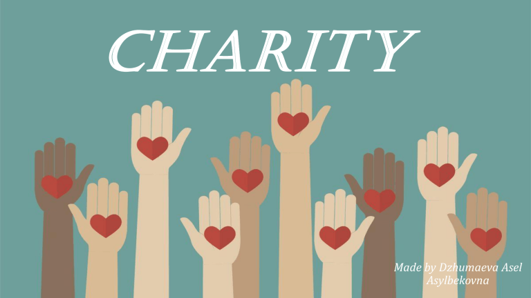 CHARITY Made by Dzhumaeva Asel Asylbekovna What Is charity? an organization whose purpose is to give money, food, or help to those who need it, or to carry out activities such as medical research that will help people in need, and not to make a profit: We are the world Different life and different values • Proceeds from the sale of these cards will go to (= be given to) local charities. • UNICEF is an international charity. • a cancer research charity Celebrities and Charity Angelina Jolie is famous for her acting skills and work as a filmmaker, but she is also well known for her passionate humanitarian work. Not only has the 42-yearold visited several war-torn countries and refugee camps all around the world, but she even created her own organization with ex-husband Brad Pitt, the Jolie-Pitt Foundation, to aid causes close to her heart She also set up the Maddox Jolie-Pitt Foundation after she adopted her eldest son Maddox from Cambodia to help end poverty and establish healthcare and education opportunities in the country. We could all learn a thing or two from Angelina's charitable heart. Keanu Reeves is one of the world’s biggest action stars, but many people don’t realize that he’s also one of the most charitable celebrities in Hollywood. Keanu keeps quiet (for the most part) about his many good deeds. As it turns out, Keanu runs a private charitable foundation to fund cancer research and children’s hospitals. “I have a private foundation that’s been running for five or six years, and it helps aid a couple of children’s hospitals and cancer research. I don’t like to attach my name to it, I just let the foundation do what it does.” Cancer research is a personal cause for Keanu. His younger sister, Kim Reeves, was diagnosed with leukemia around 1991 and battled the disease for about a decade before going into remission. “Money doesn’t mean anything to me. … I give lots away and live simply. … We all know that good health is much more important,” Keanu once said, according to Hollywood.com. Ed Sheeran has donated personal items including handwritten lyrics to his hit song Perfect to a charity auction. It was organized with help from his parents to support youngsters in his home county of Suffolk, including redeveloping a playground in Ipswich. Ed said: “I have enough to be comfortable and the rest goes to help people”. Giving to charity has been proven to make you feel good about yourself, but not only that – it also makes you feel more grateful too. By getting involved in a local charity, you are seeing first hand some of the issues in your community, which can make you feel more grateful for what you have. Giving to charity has also been proven to make you feel rich as it makes you realise that even if you don’t have much, you have enough to share and help others Steve Jobs Steve Jobs is a genius. He is an innovator. A visionary. He is perhaps the most beloved billionaire in the world. was an American business magnate, industrial designer, investor, and media proprietor. He was the chairman, chief executive officer (CEO), and co-founder of Apple Inc., the chairman and majority shareholder of Pixar, a member of The Walt Disney Company's board of directors following its acquisition of Pixar, and the founder, chairman, and CEO of NeXT. Thank you for attention!