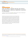ARTICLE https://doi.org/10.1038/s41467-019-11409-0 OPEN Class IIa HDACs regulate learning and memory through dynamic experience-dependent repression of transcription 1234567890():,; Yongchuan Zhu1,2, Min Huang1,2,3, Eric Bushong 4, Sebastien Phan4, Marco Uytiepo1,2, Elizabeth Beutter1,2, Daniel Boemer1,2, Kristin Tsui1,2, Mark Ellisman4 & Anton Maximov1,2 The formation of new memories requires transcription. However, the mechanisms that limit signaling of relevant gene programs in space and time for precision of information coding remain poorly understood. We found that, during learning, the cellular patterns of expression of early response genes (ERGs) are regulated by class IIa HDACs 4 and 5, transcriptional repressors that transiently enter neuronal nuclei from cytoplasm after sensory input. Mice lacking these repressors in the forebrain have abnormally broad experience-dependent expression of ERGs, altered synaptic architecture and function, elevated anxiety, and severely impaired memory. By acutely manipulating the nuclear activity of class IIa HDACs in behaving animals using a chemical-genetic technique, we further demonstrate that rapid induction of transcriptional programs is critical for memory acquisition but these programs may become dispensable when a stable memory is formed. These results provide new insights into the molecular basis of memory storage. 1 Department of Neuroscience, The Scripps Research Institute, La Jolla, CA 92037, USA. 2 The Dorris Neuroscience Center and The Scripps Research Institute, La Jolla, CA 92037, USA. 3 The Kellogg School of Science and Technology, The Scripps Research Institute, La Jolla, CA 92037, USA. 4 National Center for Microscopy and Imaging Research, University of California, San Diego, CA, USA. Correspondence and requests for materials should be addressed to A.M. (email: amaximov@scripps.edu) NATURE COMMUNICATIONS | (2019)10:3469 | https://doi.org/10.1038/s41467-019-11409-0 | www.nature.com/naturecommunications 1 ARTICLE S NATURE COMMUNICATIONS | https://doi.org/10.1038/s41467-019-11409-0 ensory exprience activates transcriptional programs in the brain that affect neuronal wiring, synaptic function, and memory formation1,2. The first waves of dynamic experience-dependent changes in neuronal transcriptomes arise from transient expression of early response genes (ERGs), which are only induced in subsets of cells in a given environment3–5. Most ERGs encode transcription factors (TFs) that exert their physiological effects through downstream target genes1. Labeling for native ERG products and expression of exogenous molecules under the control of ERG promoters is now broadly used in neuroscience to identify and manipulate neuronal ensembles recruited for particular cognitive tasks6–8. For example, memory traces can be artificially retrieved via optogenetic stimulation of ERG-positive cells that were permanently tagged in cortical and hippocampal circuits during learning9–11. Although cellular patterns of ERG induction are thought to reflect sparse coding of information in the brain3,11,12, it remains unclear how these patterns are controlled in time and space. Gene expression is orchestrated by TFs and transcriptional repressors that either silence discrete loci or globally alter the state of nuclear chromatin13. Several TFs that mediate activity-dependent synthesis of neuronal mRNAs have been characterized1,14,15, but the extent and molecular mechanisms of negative regulation of this process are poorly understood. It is also unclear how ERGs contribute to different aspects of information processing, including memory acquisition, consolidation, storage, and retrieval, as the current knowledge about ERG function in mammals largely stems from experimental paradigms that suffer from poor temporal control16–19. Class IIa histone deacetylases (HDACs) are a small family of chromatin-binding proteins that shuttle between the nucleus and cytoplasm in a calcium- and phosphorylation-dependent manner20–23. The vertebrate class IIa HDACs interact with class I HDACs, SMRT/NCoR co-repressor complexes, and various TFs via their N- and C-terminal domains, and exhibit intrinsically low enzymatic activity on ε-N-acetyl lysine substrates due to evolutionary inactivation of the catalytic site24. Genetic studies have suggested that the class IIa HDAC isoform, HDAC4, is necessary for normal cognition in Drosophila, mice, and humans25–28. Yet, prior attempts to define the functional role of HDAC4 in the central nervous system have led to conflicting findings. On the one hand, HDAC4 is capable of binding to TFs essential for synaptic plasticity and memory, CREB, MEF2, and SRF, and its constitutively nuclear gain-of-function mutants repress numerous neuronal genes in vitro23,25,29. Puzzlingly, the majority of central neurons retain HDAC4 in the cytoplasm23,25,30 and Hdac4deficient mice have been reported to have no detectable abnormalities in mRNA levels in the brain26,31. Despite recent reports that HDAC4 irreversibly enters neuronal nuclei under the pathological conditions, such as Ataxia telangiectasia and Parkinson’s disease32,33, the physiological significance of the nuclear import of this protein in normal circuits is unclear. Herein, we elucidated the function of class IIa HDACs by combining mouse genetics with imaging, genomic, electrophysiological, and behavioral readouts. We found that HDAC4 and its close homolog, HDAC5, redundantly act in the same pathway that is essential for spatiotemporal control of ERG programs during memory encoding. We then developed and applied a new chemical-genetic technique that leverages these findings and permits acute transcriptional repression in brains of behaving animals with a small molecule that rapidly stabilizes HDAC4 in neuronal nuclei. Our results demonstrate that induction of ERGs is necessary for learning, but these genes may not be required after a memory is formed. This work provides insight into t