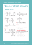 CAMBRIDGE PRIMARY MATHEMATICS 3: TEACHER’S RESOURCE Learner’s Book answers 1 Numbers to 1000 Getting started 1 36 45 46 47 56 77 80 87 90 97 98 99 246 255 22 42 23 51 52 781 53 42 2 87 10 20 30 40 50 60 70 80 90 100 70, 30, 50, 60 155 135 458 460 142 145 468 470 155 478 153 782 783 428 = 400 + 20 + 8, 913 = 900 + 10 + 3, 576 = 500 + 70 + 6; 395 = 300 + 90 + 5. 3 a 215 b 632 4 564 5 3 tens, 30; 9 ones, 9; 9 hundreds, 900; 9 tens, 90; 8 ones, 8; 2 hundreds, 200. 132 152 147 2 Exercise 1.1 1 146 792 62 42 3 145 772 32 0 257 266 100 11 21 256 154 1, 4, 7 and 8 tens, 10, 40, 70, 80. Think like a mathematician 480 The unused place value cards are: 500, 800, 10, 60, 2 and 6. All the possible numbers are: 512, 516, 562, 566, 812, 816, 862 and 866. 488 490 6 498 500 479 eight hundred and seventy-three, eight hundred and fifty-three, three hundred and seventy-eight, three hundred and fifty-eight. 1 Cambridge Primary Mathematics 3 – Moseley & Rees © Cambridge University Press 2021 CAMBRIDGE PRIMARY MATHEMATICS 3: TEACHER’S RESOURCE Exercise 1.2 1 790 220 310 320 330 880 890 900 990 420 650 100, 700, 400, 900, 700, 600 5 598 Think like a mathematician The number should be greater than or equal to x 95 and less than (x + 1)05, where x is any nonnegative whole number. For instance, x = 2: 295, 296, 297, 298, 299, 300, 301, 302, 303, 304 ➝ all round to 300 … a643 is greater than 458 and 458 is less than 643. b 475 is greater than 472 and 472 is less than 475. c 883 is greater than 838 and 838 is less than 883. 3 smallest 38, 475, 563, 621, greatest 679 4 greatest 834, 483, 438, 384, smallest 48 5 48 marked about halfway between 0 and 100, 384 marked approximately three-quarters of the way between 300 and 400, 438 marked less than halfway between 400 and 500, 483 marked about three-quarters of the way between 400 and 500, 834 marked less than halfway between 800 and 900. x = 9: 995, 996, 997, 998, 999, 1000, 1001, 1002, 1003, 1004 ➝ all round to 1000 Sofia is correct, as 100, 200, 300, …, and 1000 are in the above list. Check your progress 1 374 383 384 385 394 744 746 754 756 764 765 766 774 776 784 786 6 Estimates from 160 to 190, 310 to 340, 830 to 870. 2 7 ones, 7; 7 hundreds, 700; 7 tens, 70; 3 ones, 3; 8 hundreds, 800; 4 tens, 40. 7 Any number less than 263, any number greater than 671, any number greater than 457, any number less than 346. 3 Number Round to the nearest 10 Round to the nearest 100 234 230 200 Think like a mathematician 471 470 500 Learners’ own statements and answers. 896 900 900 750 750 800 303 300 300 987 990 1000 Exercise 1.3 1 200 to 300 spots, or 200 to 400 spots. There are 287 spots. 2 a b c 2 4 x = 1: 195, 196, 197, 198, 199, 200, 201, 202, 203, 204 ➝ all round to 200 660 750 2 120, 680, 390, 910, 740, 600 x = 0: 95, 96, 97, 98, 99, 100, 101, 102, 103, 104 ➝ all round to 100 550 640 3 No, 500 to 600 would be a better estimate. Yes, the mass of 24 grams is between 20 grams and 30 grams for 200 to 300 beans. 700 to 800 beans or 700 to 900 beans. Cambridge Primary Mathematics 3 – Moseley & Rees © Cambridge University Press 2021 CAMBRIDGE PRIMARY MATHEMATICS 3: TEACHER’S RESOURCE 2 Statistics: Tally charts and frequency tables Think like a mathematician Getting started 1 1 Animal Tally Learners’ own answers. Check your progress a c 2 giraffes third week 4 b Fruits Votes 32 mango lions camels apple meerkats grapes fish banana penguins total seals 1 Learners’ own answers. 2 a b c d Learners’ own answers. 4 Favourite hobby Tally Frequency Tally 2 40 5 50 2 60 3 70 2 80 6 90 4 3 Addition, subtraction and money 2 dancing 1 Getting started football 4 1 reading 5 2 b reading c dancing Learners’ discussion should mention that the information tells you what activities are most popular, so you could plan these for the club sessions. You might also want to know what people’s favourite snacks and drinks are, and so on. Frequency 30 painting a d 3 Football is liked the most. Cricket and basketball are liked by the same number of people. 50 people took part in the survey. For example, the tables do not say how often the games are played; the tables do not tell you if they surveyed boys or girls. 3 Score 3 Exercise 2.1 49 54 68 56 75 99 77 89 64 83 2 Answer depends on the numbers chosen. 3 For example: $10, $5, $1, half dollar (50c), quarter dollar (25c), two dimes (2 × 10c), one nickel (5c); three $5 (3 × $5), $1, three quarter dollars (3 × 25c), two dimes (2 × 10c). Cambridge Primary Mathematics 3 – Moseley & Rees © Cambridge University Press 2021 CAMBRIDGE PRIMARY MATHEMATICS 3: TEACHER’S RESOURCE Exercise 3.1 Exercise 3.3 1 Learners’ own calculations. 1 $4.50, $8.70, $24.05, $10, $0.99 2 Learners’ own calculations. 2 3 estimate: 130 + 50 = 180; learners’ own choice of method, 134 + 53 = 187. $20 and 45c, $9 and 75c, $15 and no cents, $2 and 9c, $0 and 30c 3 a $30 and 76c b $80 c 95c d 8c 4 estimate: 220 + 70 = 290; learners’ own choice of method, 215 + 67 = 282. 5 estimate: 150 + 140 = 290; learners’ own choice of method, 148 + 136 = 284. 6 estimate: 440 + 330 = 770; learners’ own choice of method, 439 + 326 = 765. Think like a mathematician All the possibilities: Think like a mathematician Learners recognise that they need to use the two lowest value coins and banknotes ($1 + $2 + 1c + 5c = $3.06) to find the smallest possible value, and use the two highest value banknotes and coins ($100 + $50 + 50c + 25c = $150.75) to find the greatest value of Zara’s money. 4 242 + 139 = 381 243 + 138 = 381 a18 + 26 = 44, Sumi spends 44c, 50 − 44 = 6, Sumi will have 6c change. b 37 + 37 = 74, Virun spends 74c, 90 − 74 = 16, Virun will have 16c change. c 75 − 12 = 63 244 + 137 = 381 245 + 136 = 381 246 + 135 = 381 Highlighter + eraser = 37c + 26c = 63c 247 + 134 = 381 Thick felt pen + pencil = 45c + 18c = 63c. 5 248 + 133 = 381 249 + 132 = 381 b Exercise 3.2 1 46 − 8 = 38, 48 − 6 = 42, 68 − 4 = 64, 64 − 8 = 56, 86 − 4 = 82, 84