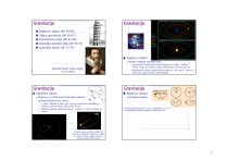 Gravitacija Gravitacija Keplerovi zakoni (AP 64-65) Zakon gravitacije (AP 65-67) Gravitaciono polje (AP 67-68) Ubrzanje zemljine teže (AP 70-72) Kosmičke brzine (AP 72-74) Keplerovi zakoni. Modeli kretanja nebeskih tela: Geocentrični model (grčki fizičar Ptolomej u II veku) - Zemlja miruje, centar je vasione a ostala nebeska tela se kreću oko nje. Nemački fizičar Johan Kepler (1571-1630) Gravitacija centar oko koga se kreću ostale planete. Gravitacija Keplerovi zakoni. Heliocentrični sistem (poljski fizičar Kopernik u XVI veku) - Sunce je Keplerovi zakoni. Kepler je u u XVII veku formulisao zakone kretanja planeta oko Sunca. I Keplerov zakon. I zakon: Planete se kreću oko Sunca po eliptičnim putanjama, u čijem se jednom fokusu (žiži) nalazi Sunce. Eliptične putanje imaju dva fokusa - u jednom od njih smešteno je Sunce. • Astronomska jedinica (AJ, 1 AJ = 1.49597870 x 1011 m) • AJ predstavlja srednje rastojanje Zemlje od Sunca Na sličan način se kreću sateliti oko Zemlje po eliptičnim putanjama. Zemlja je u jednom fokusu elipse. Satelit se kreće brže što je bliži Zemlji. 1 Gravitacija Gravitacija Keplerovi zakoni. Keplerovi zakoni. Kepler je u u XVII veku formulisao zakone kretanja planeta oko Sunca. Kepler je u u XVII veku formulisao zakone kretanja planeta oko Sunca. II zakon: Duž koja spaja položaj planete sa Suncem prekrije u III zakon: Kvadrat perioda (vremena obilaženja planete oko Sunca) jednakim vremenskim intervalima jednake površine, bez obzira na udaljenost od Sunca. Kada je planeta bliže Suncu kreće se brže nego kada je dalje od Sunca. Gravitacija proporcionalan je trećem stepenu srednje udaljenosti planete od Sunca. 3 2 Za dve planete: T1 = r1 T22 r23 Gravitacija Zakon gravitacije. Zakon gravitacije. Na osnovu Keplerovih zakona i Njutnovih zakona mehanike Njutn je definisao univerzalni zakon gravitacije. Na svaku planetu deluje sila usmerena ka Suncu čiji je intenzitet: srazmeran masi planete, mp r Polazeći od III Njutnovog zakona Njutn je pretpostavio da: Sunce je izvor sile privlačenja koja deluje na planete, planete privlače Sunce silom istog intenziteta ali suprotnog smera koja je srazmerna masi Sunca. obrnuto srazmeran kvadratu rastojanja između planete i Sunca. F∝k Obe sile imaju intenzitet: F =γ ms m p r2 γ - univerzalna gravitaciona konstanta 2 2 Gravitacija Gravitacija Zakon gravitacije. Njutn je uopštio zakon gravitacije kao interakciju svih tela u vasioni bez obzira na njihovu veličinu i nazvao ga univerzalni zakon gravitacije: Dva tela se privlače silom istog intenziteta koja je srazmerna njihovim masama i m1 obrnuto proporcionalna njihovom rastojanju. m Fg 2 Fg mm Fg = γ 1 2 2 r r Kevendiš je tek 1798. godine odredio gravitacionu konstantu u eksperimentu sa dva para kuglica: dve male kuglice svaka po 0.729 kg obešene na elastičnu nit, dve velike kugle svaka po 158 kg postavljene su u blizini, manje kuglice se zbog gravitacione sile približavaju većim, nit se uvrne za određeni ugao koji se meri, gravitaciona sila je proporcionalna uglu F ∝α r 2 ⎡ Nm 2 ⎤ ⎢ ⎥ m1 m 2 ⎣ kg 2 ⎦ γ = 6 .67 ⋅ 10 −11 Za Njutna je gravitaciona konstanta ostala nepoznata. Gravitacija težina tela je prema II Njutnovom zakonu Q = mg ista sila iskazana preko gravitaciong zakona Fg = γ mm z m ⇒ g = γ 2z R z2 Rz mm z R z2 Gravitaciono ubrzanje je obrnuto proporcionalno poluprečniku Zemlje, g=9.81m/s2. Poluprečnik Zemlje na ekvatoru za 40 km veći od poluprečnika na polovima. Gravitaciono ubrzanje na visini h iznad Zemlje: 2 mz ⎛ Rz ⎞ mz R z2 gh = γ ⎜ ⎟ gh = γ ⋅ = g 2 ⎜R +h⎟ (Rz + h) ( R z + h ) 2 R z2 ⎝ z ⎠ gravitaciona sila najveća na polu a najmanja na ekvatoru Rz opada sa visinom ali se za male visinske promene uzima nepromeljivim, na rastojanju Meseca 0.27cm/s2 isto važi za gravitaciono ubrzanje h Gravitaciono ubrzanje. Telo se nalazi na površini Zemlje ili u neposrednoj blizini: mg = γ Nm 2 kg 2 Gravitacija Gravitaciono ubrzanje. Gravitaciona konstanta brojno je jednaka sili kojom se dve jedinične mase privlače na jediničnom rastojanju. γ =F Zakon gravitacije. Rz Najveće promene gravitacionog ubrzanja potiču usled rotacije Zemlje oko svoje ose. na telo, pored gravitacione sile, dejstvuje i centrifugalna inercijalna sila čiji je intenzitet srazmeran rastojanju od ose rotacije - najveći na ekvatoru, jednak nuli na polu; smanjenje gravitacionog ubrzanja na ekvatoru je 3.37cm/s2; g = 9 .78 m s 2 ekvator g = 9 .83 m s 2 pol g = 9 .81 m s 2 45° 3 Gravitacija Gravitacija Gravitaciono polje. Gravitaciono polje. Prostor u kome jedno telo deluje na drugo gravitacionom silom naziva se gravitaciono polje tog tela. Gravitaciono polje se kvantitativno opisuje jačinom gravitacionog polja. Jačina gravitacionog polja u nekoj tački brojno je jednaka sili kojom gravitaciono polje dejstvuje na jedinicu mase u tom polju. zamišljene linije kod kojih tangenta u svakoj tački polja daje pravac i smer gravitacione sile i jačine gravitacionog polja, vektorska veličina čiji je pravac i smer identičan sa pravcem i smerom gravitacione sile. r r F G= mp linije uviru u telo i normalne su na površinu tela u posmatranoj mp tački, mp linije se produžavju i kroz telo - gravitaciono polje postoji i u telu. mp r r0 mm p r2 mp mp mp r m r r0 = − γ 2 r0 r mp mp mp mp Gravitacija Gravitacija Kosmičke brzine. Kosmičke brzine. mz R z2 Jačina zemljinog gravitacionog polja na površini Zemlje jednaka je gravitacionom ubrzanju: m G = γ 2z = g Rz Gravitaciono polje je vektorsko polje. Slikovito se prikazuje linijama sila gravitacionog polja: γ r G=− g =γ Prva kosmička brzina. Brzina koju treba da ima telo da bi se kretalo oko Zemlje po putanji čiji je poluprečnik blizak poluprečniku Zemlje. Računa se za sloj na visini oko 200km koji je skoro idealan vakuumu i nema otpora kretanju. Kretanje tela prvom kosmičkom brzinom kroz atmosferu zagrevalo bi telo i ono bi sagorelo. Pri rotaciji tela na njeg
