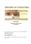 HISTORY OF ANESIATHIA Submitted by Abdul Nasser Kaadan, MD, PhD* Basel Ghafeer** * Chairman, History of Medicine Department, Institute for the History of Arabic Science, Aleppo University, Aleppo-Syria President of ISHIM (www.ishim.net) P.O. Box: 7581 ,Aleppo ,Syria e-mail: ankaadan@gmail.com Phone 963 944 300030, Fax 963 21 2236526 ** Bachelor of Pharmacy, Master stage student, Institute for the History of Arabic Science, Aleppo University 1 History of anesthesia: Methods for lessening the sensation of pain during surgery date back to ancient times. Before the discovery of substances that produced general anesthesia, patients needing surgery for illness or injury had to rely on alcohol, opium (a natural narcotic derived from the opium poppy), or fumes from an anesthetic-soaked cloth to deaden the pain of the surgeon's knife. Often a group of men held the patient down during an operation in case the opium or alcohol wore off. Under these conditions, many patients died of shock from the pain of the operation itself. Nitrous oxide, ether, and chloroform: The gases nitrous oxide, ether, and chloroform were first used as anesthetics in the nineteenth century, ushering in the modern era of anesthesia. Nitrous oxide, or laughing gas, was discovered as an anesthetic by English chemist Humphry Davy (1791–1867) in 1799. Davy's finding was ignored until the next century, when Connecticut dentist Horace Wells (1815–1848) began to experiment using nitrous oxide as an anesthetic during tooth surgery. In 1845, he attempted to demonstrate its pain-blocking qualities to a public audience but was unsuccessful when he began to pull a tooth before the patient was fully anesthetized. The patient cried out in pain and, as a result, another 20 years passed before nitrous oxide was accepted for use as an anesthetic. 2 The first use of ether as an anesthetic during an operation was claimed by surgeon Crawford W. Long (1815–1878) of Georgia in 1842. The operation, however, was unrecorded, so official credit went instead to Massachusetts dentist William Morton (1819–1868) for his 1846 public demonstration of an operation using ether performed in a Boston hospital. While Morton administered the gas to the patient through an inhaling device, John C. Warren (1778–1856) removed a neck tumor without the patient feeling any pain. Following this landmark use of ether as an anesthetic, general anesthesia began to be practiced all over the United States and Europe. Chloroform was introduced as a surgical anesthetic by Scottish obstetrician James Young Simpson (1811–1870) in 1847. After first experimenting with ether, Simpson searched for an anesthetic that would make 3 childbirth less painful for women. Although it eased the pain of labor, chloroform had higher risks than those associated with ether. Neither ether nor chloroform are used in surgery today. Discovered in 1831, the use of chloroform in anesthesia is linked to James Young Simpson, who, in a wide-ranging study of organic compounds, found chloroform's efficacy on 4 November 1847. Its use spread quickly and gained royal approval in 1853 when John Snow gave it to Queen Victoria during the birth of Prince Leopold. Unfortunately, chloroform is not as safe an agent as ether, especially when administered by an untrained practitioner (medical students, nurses, and occasionally members of the public were often pressed into giving anesthetics at this time). This led to many deaths from the use of chloroform that (with hindsight) might have been preventable. The first fatality directly attributed to chloroform anesthesia was recorded on 28 January 1848 after the death of Hannah Greener. John Snow of London published articles from May 1848 onwards "On Narcotism by the Inhalation of Vapours" in the London Medical Gazette. Snow also involved himself in the production of equipment needed for the administration of inhalational anesthetics. 4 A nineteenth-century physician administering chloroform prior to surgery. Ether was one of the earliest anesthetics to be used but it was difficult to administer as it usually made the patient choke. Replica of the inhaler Morton used in 1846 during the 1st public demonstration of anesthesia Anesthetics were administered from the early 1840s, but the impact on general medical practice began after William Morton publically administered ether to Gilbert Abbott on 16 October 1846 at Massachusetts General Hospital, Boston. On 19 December 1846, Francis Boot, an American botanist who had heard the news from Boston, watched dental surgeon James Robinson administer the first ether anesthetic in England. Two days later, Robert Liston operated on Frederick Churchill at University College Hospital and a medical student, William Squire administered the anesthetic. 5 Before anesthesia, surgery was a terrifying last resort, a final attempt to save life. Few operations were possible and surgeons were judged by their speed. Some doctors had tried using alcohol, morphine and other sedatives to dull the pain of surgery but most patients were held or strapped down, some luckily fainted from the agony. It was more potent but could have severe side effects such as sudden death and late onset severe liver damage. It became popular because it worked well and was easier to use than ether. Many died. Anesthesia allowed surgeons to take more time, be more accurate and undertake more complex procedures. Emergence of anesthesiology: Anesthesiology was slow to develop as a medical specialty. By the end of the nineteenth century, ether—which was considered safer than chloroform— was administered by persons with little medical experience. Nurses were eventually assigned to this task, becoming the first anesthetists at the turn of the century. As surgical techniques progressed in the twentieth century, there was a corresponding demand for specialists in the area of anesthesia. To meet this need, the American Society of Anesthetists was formed in 1931, fo