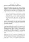 Exploración Neurológica Importancia de la exploración neurológica para el médico general El examen neurológico o exploración neurológica (EN) es sin lugar a duda la herramienta diagnóstica más importante en las neurociencias clínicas (neurología, neurocirugía, neuropediatría, etc.). A pesar de los impresionantes avances que existen en los métodos de diagnóstico paraclínico en neurociencias, no existe ningún método que supere la cantidad de información que puede obtenerse a través de un adecuado examen clínico neurológico. De manera que no existe un estudio o escala que pueda substituir o soslayar el examen neurológico de un paciente. Los propósitos que persigue la exploración neurológica son los siguientes: 1. Establecer si existe o no, una lesión o una alteración funcional en el sistema nervioso, tanto central como periférico. 2. Señalar cuál es la topografía de esta lesión o alteración funcional, es decir, en qué parte del sistema nervioso se encuentra la alteración (tallo cerebral, corteza cerebral, nervio periférico, etc.). 3. Apoyar para conocer cuál es la naturaleza o etiología de la lesión (hemorragia, infarto, absceso, tumor, etc.). Aquí es prudente señalar que el examen neurológico, como cualquier técnica exploratoria en medicina, siempre debe estar precedido y guiado por un exhaustivo interrogatorio y semiología de los síntomas neurológicos. La importancia del examen neurológico para el médico general radica en la elevada frecuencia de trastornos neurológicos, como la cefalea, epilepsia, enfermedad vascular cerebral, etc., en la consulta médica general. Adicionalmente, por su gravedad algunos de estos trastornos pueden poner en peligro la vida del paciente o comprometer la función y generar altas tasas de discapacidad. Alcances y limitaciones de la exploración neurológica básica Uno de los aspectos que más desalienta a los estudiantes es que se piensa que la EN es tremendamente extensa, demorada y complicada. Por ello, es importante resaltar que la EN exhaustiva en todos sus apartados no siempre es necesaria, en la práctica cotidiana con frecuencia se pone mayor atención en los apartados de la exploración que están o pueden estar alterados según lo obtenido en el interrogatorio, optimizando así el tiempo y la complejidad de la exploración. Por esta razón, en realidad no es necesario ni práctico que el médico general realice con destreza la totalidad de la EN, y la propuesta es que realice una exploración neurológica básica (ENB) que incluya los aspectos clave de la exploración con la finalidad de identificar correctamente los problemas neurológicos más comunes. Es importante mencionar que la ENB, por las razones antes mencionadas, no tiene la finalidad de diagnosticar de manera precisa la etiología y topografía de todas las posibles alteraciones neurológicas, más bien tiene la finalidad de funcionar como una herramienta de tamizaje para detectar posibles alteraciones (sobre todo las más graves o frecuentes), guiar la toma de decisión de tratamientos iniciales, realización estudios paraclínicos, o establecer criterios de referencia a otro nivel de atención. La profundidad, extensión y organización de la ENB en realidad no está definida, por lo que se pueden encontrar textos con diferentes organizaciones y propuestas al respecto. En el presente artículo se presenta la propuesta de los autores pero el lector puede consultar otras en distintas fuentes bibliográficas2,3. EXPLORACIÓN DEL ESTADO CEREBRALES SUPERIORES” DE ALERTA Y LAS “FUNCIONES Toda EN debe iniciar por la evaluación del estado de alerta y el estado mental, ya que para algunas de las maniobras clínicas será necesario contar con la atención y colaboración del paciente, por lo que conocer cómo se encuentra su estado mental, nos permitirá, además de evaluar sus funciones cognitivas, conocer cual será su grado de cooperación para entender y seguir las indicaciones. Estado de alerta Comenzaremos por la descripción del estado de alerta o estado de despierto (o de conciencia, según la literatura anglosajona). Se describen cinco estados: 1. Alerta o despierto: El paciente tiene los ojos abiertos, interactúa y responde adecuadamente a los estímulos verbales. 2. Confusión (ocasionalmente se describe como obnubilación): El paciente tiene los ojos abiertos e interactúa, pero tiene disminuida su capacidad de atención, por lo que es posible que responda inadecuadamente a las preguntas. 3. Somnolencia o letargo: El paciente tiende a quedarse dormido si no es estimulado de alguna manera, para alertarlo generalmente es suficiente el estimulo verbal o algún estimulo táctil. 4. Estupor: El paciente tiene los ojos cerrados y solo tiene alguna respuesta cuando el estímulo es muy intenso o doloroso. 5. Coma: No existe respuesta alguna a estímulos. Funciones cerebrales superiores 1. Orientación: Persona (se le pide que diga su nombre completo), lugar (se le pregunta si sabe en dónde se encuentra) y tiempo (se le pide que diga la fecha actual). 2. Lenguaje: Primero se evalúa el lenguaje espontáneo, por ejemplo, se le puede pedir que describa a qué se dedica. Se evalúa si el lenguaje está bien articulado o si algunas palabras no se entienden bien (disartria); si la respuesta es coherente con la pregunta, o si tiene una adecuada estructura gramatical. Posteriormente se le puede pedir al paciente que repita algunas frases complicadas, y que nombre algunos objetos cotidianos al mostrárselos como: un reloj, una pluma, unos lentes, etc. Finalmente, para evaluar la comprensión se le puede dar la indicación de realizar algún acto que implique varios pasos: por ejemplo, “tome este papel con la mano derecha, dóblelo por la mitad con ambas manos y colóquelo sobre el suelo con su mano izquierda”. 3. Memoria: Para la evaluación de la memoria de corto plazo se le puede pedir al paciente que memorice una lista de tres objetos q