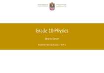 Grade 10 Physics Advance Stream Academic Year 2024/2025 – Term 2 Chapter-9 Series and Parallel Circuits Section No. : 9.1 Section’s Name : Simple Circuits Period 1 Learning objectives • Understand the Series Combination of Resistors. • Derive the relation for Equivalent Resistance for a Circuit of Resistors in Series Combination. Keywords Series Combination. Resistors/Resistance. Equivalent Resistance. Introduction Remember that… Resistance is the opposition presented to electric current by a material or device. Ohm’s law states that … “Current passing through a wire is directly proportional to the potential difference between it’s terminals.” The SI units for measuring the resistance of a conductor is the Ohm (Ω). Ohms () = Volts/Ampere (V/A). Parallel and Series Connections Introduction Resistors can be connected in series or in Parallel. Resistors can be connected together in an unlimited number of series and parallel combinations to form complex resistive circuits. A River Model A mountain river can be used to model an electric circuit. The river flows downhill to the plains below. Some rivers flow downhill in a single stream, other rivers might split into two or more smaller streams. The total amount of water flowing down the mountain remains unchanged. Also, note that… The distance the river drops is similar to the potential difference in a circuit. The rate of water flow is similar to current in a circuit. Large rocks and other obstacles produce resistance to water flow and are similar to resistors in a circuit. The water cycle is similar to a battery or a generator in an electric circuits A River Model Series Circuit Parallel Circuit Series Circuits Now, watch this video Resistors in Series A Series Circuit describes two or more components of a circuit that provide a single path for current. Resistors in Series carry the Same current. Resistors in Series Activity Now, click here to start the activity https://phet.colorado.edu/en/simulation/circ uit-construction-kit-dc Equivalent Resistance of a Series circuit Vbattery= V1 + V2 Conservation of energy I Requivalent = I R1 + I R2 Ohm’s law Take I as a common factor to get I Requivalent = I (R1 + R2) Requivalent = R1 + R2 Note: Same current ( I ) passing through the circuit. Resistors in Series, continued The equivalent resistance in a series circuit is the sum of the circuit’s resistances. The equivalent resistance can be used to find the current in a circuit. Total Current in series Circuit Two or more resistors in the actual circuit have the same effect on the current as one equivalent resistor. The following equation can be used to calculate the current. ∆V = IReq The total current in a series circuit equals to potential difference divided by equivalent resistance. Evaluation Question Critical Thinking Question A series circuit shows a bulb burned out. Solution a) What will happen to the other bulbs? Answer: One bulb burning out in a series circuit breaks the circuit. b) Would this also happen in a parallel circuit? Answer: In parallel circuits, each bulb has its own circuit, so all but one bulb could be burned out, and the last one will still function. Exercises Example 1 Resistors in Series A 9.0 V battery is connected to four light bulbs, as shown at right. Find the equivalent resistance for the circuit and the current in the circuit. Given: ∆V = 9.0 V R1 = 2.0 Ω R2 = 4.0 Ω R3 = 5.0 Ω R4 = 7.0 Ω Unknown: Req = ? I=? Diagram Solution Because the resistors are connected in series. Thus, the equivalent resistance can be calculated with the following equation Req = R1 + R2 + R3 + R4 Substitute the values into the equation and solve… R eq = 2.0 Ω + 4.0 Ω + 5.0 Ω + 7.0 Ω R eq = 18.0 Ω The following equation can be used to calculate the current. ∆V = I Req Rearrange the equation to isolate the unknown: V I Req Substitute the equivalent resistance value into the equation for current… V 9.0 V I 0.50 A Req 18.0 Ω Example 2 Three 20 Ω resistors are connected in series across a 120-V generator. What is the equivalent resistance of the circuit? What is the current in the circuit? Solution Given: ∆V = 120 V R1 = 20 Ω R2 = 20 Ω R3 = 20 Ω Unknown: Req = ? I=? Example 3 A 10 Ω, 15 Ω, and 5 Ω resistor are connected in a series circuit with a 90 V battery. What is the equivalent resistance of the circuit? What is the current in the circuit? Solution Given: ∆V = 90 V R1 = 10 Ω R2 = 15 Ω R3 = 5 Ω Unknown: Req = ? I=? Req=32 I= 2.3 A Period 2 Chapter-9 Series and Parallel Circuits Section No. : 9.1 Section’s Name : Simple Circuits. Learning objectives Calculate the Equivalent Resistance for a Circuit of Resistors in Series. Find the Current and Potential Difference across each Resistor in the Circuit. Understand the function of the Voltage dividers. Keywords • Voltage dividers. Example 4 A string of holiday lights has ten bulbs with equal resistances connected in series. When the string of lights is connected to a 120-V outlet, the current through the bulbs is 0.06 A. Solution R= 195 Example 5 Q45 A 9-V battery is in a circuit with three resistors connected in series. Solution Period 3 Chapter-9 Series and Parallel Circuits Section No. : 9.1 Section’s Name : Simple Circuits Learning objectives Understand the function of Photoresistors. Problem solving. Keywords • Photoresistor. Voltage dividers A voltage divider is a simple circuit which turns a large voltage into a smaller one. A voltage divider produces a source of potential difference that is less than the potential difference across the battery. Consider the circuit shown in Figure 1. Two resistors (R1 and R2) are connected in series across a battery with potential difference V The equivalent resistance of the circuit is R = R1 + R2 The current is represented by the following equation… Voltage dividers, Cont. By substituting in Ohm’s law… By choosing the right resistors, you can produce a potential difference of 5 V acro