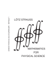 MATHEMATICS FOR PHYSICAL SCIENCE L STRAUSS - MATHEMATICS FOR PHYSICAL SCIENCE LÖTZ STRAUSS MATHEMATICS FOR PHYSICAL SCIENCE Lötz Strauss D Sc, THED, L Akad, Sci Nat Professor, Physics Department University of Pretoria Published by the author Contents Preface vii 1 INTRODUCTION 1 1.1 Important symbols and constants . . . . . . . . . . . . . . . . . . 1 1.2 The Greek alphabet . . . . . . . . . . . . . . . . . . . . . . . . . 2 1.3 Exponents and logarithms . . . . . . . . . . . . . . . . . . . . . . 2 1.4 The binomial theorem . . . . . . . . . . . . . . . . . . . . . . . . 3 1.5 Factors . . . . . . . . . . . . . . . . . . . . . . . . . . . . . . . . . 4 1.6 Radian measure . . . . . . . . . . . . . . . . . . . . . . . . . . . . 5 1.7 Useful goniometric relationships . . . . . . . . . . . . . . . . . . . 7 1.8 Geometric formulae . . . . . . . . . . . . . . . . . . . . . . . . . . 12 1.9 PROBLEMS CHAPTER 1 . . . . . . . . . . . . . . . . . . . . . 16 2 DIFFERENTIAL CALCULUS 2.1 2.2 19 Functions . . . . . . . . . . . . . . . . . . . . . . . . . . . . . . . 19 2.1.1 Introduction . . . . . . . . . . . . . . . . . . . . . . . . . 19 2.1.2 A number of important functions of a single variable and their graphic representations . . . . . . . . . . . . . . . . 23 Calculations with zero and infinity. Limits . . . . . . . . . . . . . 27 i ii CONTENTS 2.2.1 Calculations involving zero and numbers tending to infinity 27 2.2.2 Limits . . . . . . . . . . . . . . . . . . . . . . . . . . . . . 29 2.3 The gradient of a straight line . . . . . . . . . . . . . . . . . . . . 30 2.4 The gradient of a curve . . . . . . . . . . . . . . . . . . . . . . . 33 2.5 Derived functions or derivatives . . . . . . . . . . . . . . . . . . . 35 2.6 Useful differentiation formulas . . . . . . . . . . . . . . . . . . . . 37 2.6.1 y = xn in which n is any real finite constant . . . . . . . . 37 2.6.2 y = axn in which a and n are real finite numbers . . . . . 38 2.6.3 y = sin ax in which a is any real finite number . . . . . . 38 2.6.4 y = cos ax in which a is any real finite number . . . . . . 38 Useful differentiation rules . . . . . . . . . . . . . . . . . . . . . . 39 2.7.1 The sum rule . . . . . . . . . . . . . . . . . . . . . . . . . 39 2.7.2 The product rule . . . . . . . . . . . . . . . . . . . . . . . 40 2.7.3 The quotient rule . . . . . . . . . . . . . . . . . . . . . . . 42 2.7.4 The chain rule . . . . . . . . . . . . . . . . . . . . . . . . 43 Expansion in series and exponential functions . . . . . . . . . . . 46 2.8.1 Expansion in series . . . . . . . . . . . . . . . . . . . . . . 46 2.8.2 The derivative of an exponential function . . . . . . . . . 46 2.8.3 The derivative of a logarithmic function . . . . . . . . . . 49 Summary of the differentiation formulas and rules . . . . . . . . 52 2.7 2.8 2.9 2.10 Second and higher-order derivatives . . . . . . . . . . . . . . . . 53 2.11 Maxima and minima . . . . . . . . . . . . . . . . . . . . . . . . . 55 2.12 Differentials . . . . . . . . . . . . . . . . . . . . . . . . . . . . . . 60 2.13 PROBLEMS: CHAPTER 2 . . . . . . . . . . . . . . . . . . . . . 62 CONTENTS iii 3 INTEGRAL CALCULUS 67 3.1 The indefinite integral . . . . . . . . . . . . . . . . . . . . . . . . 67 3.2 Integration formulas . . . . . . . . . . . . . . . . . . . . . . . . . 69 3.3 The integration constant . . . . . . . . . . . . . . . . . . . . . . . 70 3.4 The definite integral . . . . . . . . . . . . . . . . . . . . . . . . . 72 3.5 The definite integral represented by an area . . . . . . . . . . . . 73 3.6 The definite integral as the limit of a sum . . . . . . . . . . . . . 77 3.7 The calculation of integration constants . . . . . . . . . . . . . . 81 3.8 PROBLEMS: CHAPTER 3 . . . . . . . . . . . . . . . . . . . . . 84 4 VECTOR ALGEBRA 87 4.1 Introductory discussion and definitions . . . . . . . . . . . . . . . 87 4.2 Vector addition . . . . . . . . . . . . . . . . . . . . . . . . . . . . 92 4.2.1 The vector parallelogram . . . . . . . . . . . . . . . . . . 92 4.2.2 The method of mutually perpendicular components for the addition of coplanar vectors . . . . . . . . . . . . . . . 94 The specification of a vector in terms of its components along two mutually perpendicular axes in two dimensions 96 4.2.3 4.3 4.4 4.2.4 The specification of a vector in terms of its component vectors along mutually perpendicular axes in three dimensions 98 4.2.5 The position vector . . . . . . . . . . . . . . . . . . . . . . 100 The scalar product of two vectors . . . . . . . . . . . . . . . . . . 103 4.3.1 Definition and derivation . . . . . . . . . . . . . . . . . . 103 4.3.2 A number of useful applications of scalar products . . . . 104 4.3.3 Summary of useful results and remarks regarding scalar products . . . . . . . . . . . . . . . . . . . . . . . . . . . . 106 The vector product . . . . . . . . . . . . . . . . . . . . . . . . . . 106 iv CONTENTS 4.5 PROBLEMS CHAPTER 4 . . . . . . . . . . . . . . . . . . . . . 112 5 VECTOR DIFFERENTIATION 117 5.1 Introductory discussion and definitions . . . . . . . . . . . . . . . 117 5.2 Space curves . . . . . . . . . . . . . . . . . . . . . . . . . . . . . 119 5.3 Rules for the differentiation of vectors . . . . . . . . . . . . . . . 120 5.4 Applications to kinematics . . . . . . . . . . . . . . . . . . . . . . 121 5.5 PROBLEMS: CHAPTER 5 . . . . . . . . . . . . . . . . . . . . . 124 6 VECTOR INTEGRATION 125 6.1 “Ordinary” vector integration . . . . . . . . . . . . . . . . . . . . 125 6.2 Applications to kinematics . . . . . . . . . . . . . . . . . . . . . . 127 6.3 6.4 6.5 6.2.1 First kind: The position vector, r̄ = r̄(t), is known . . . . 127 6.2.2 Second kind: The velocity vector, v̄ = v̄(t), is known . . . 127 6.2.3 Third kind: The acceleration vector, ā = ā(t), is known . 129 6.2.4 The use of position as independent variable . . . . . . . . 133 6.2.5 A summary of the kinematics of a point. . . . . . . . . . . 135 Line integrals . . . . . . . . . . . . . . . . . . . . . 