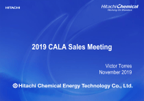 2019 CALA Sales Meeting Victor Torres November 2019 Housekeeping • LOCATION • Melody Maker Cancun • All Inclusive • Bracelet required • Replacement Bracelet – USD $150.00 • DRESS CODE • Business Casual • Tuesday – Business Casual • Wednesday – Business Casual (Hitachi Blue Shirt) • Thursday – Tour – Casual (Hitachi T-shirt) • CONTACTS • Victor Torres • 214-415-8416 • 817-879-1623 • Marlene Eggleston • 817-264-7292 (text only) • Ernesto Martinez • +52 1 449-111-8912 © Hitachi Chemical Co., Ltd. 2014 - 2015. All rights reserved. 1 Schedule 7:00 AM 8:00 AM 8:30 AM 9:00 AM 9:30 AM 10:00 AM 10:30 AM 11:00 AM 11:30 AM 12:00 PM 12:30 PM 1:00 PM 1:30 PM 2:00 PM 2:30 PM 3:00 PM 3:30 PM 4:00 PM 4:30 PM 5:00 PM 5:30 PM 6:00 PM 6:30 PM 7:00 PM 8:00 PM 9:00 PM 12-Nov-19 13-Nov-19 14-Nov-19 Breakfast (Individual) Welcome and Participants Introduction HQ Corporate Presentation (Nibe San) Breakfast (Individual) Pick up @ 7:00 AM HCEN (AM) Presentations (Victor Torres) ESS (Greg Griffin) XPCC (Steve Lipnisky) Q & A Session Lunch (Individual) Union Sistemas - Brazil (Alexandre Sayar) ABC - Mexico (Hector Castillo) LMEG - Mexico (Luis Manuel Elizondo) Q & A Session BREAK Networking Reception Cocktail (Participants and Spouses welcome) Free Amper - Bolivia / Ecuador (Ariel Lara) MOLYCHILE - Chile (Juan Carlos Jarpa) UPSistemas - Colombia (Ana Londono) Intelcom - Costa Rica (Franklin Gavarrete) Grupo Electrotecnica - Costa Rica (Andrea Hangen) Fasor - El Salvador (Angel Soriano) Isertec - Guatemala (Jorge Mayorga) Telnet - Guatemala (Marco Marroquin) Grupo Roel - Honduras (Juan Rosabal) Q & A Session Lunch (Individual) Accupower - Jamaica (Russel Royce) Siesa - Panama Raul Leonard) Tonina - Paraguay (Esteban Tonina) Elise - Peru (Luis Ruiz) Critical Power - Republica Dominicana (Ramon Santos) Informatics - Trinidad & Tobago (Dave Ramlogan) Tyseca - Venezuela (Jesus Gomez) Closing Statements Recognition Awards BREAK Dinner (Participants and Spouses welcome) City Tour (Participants and Spouses welcome) *Hitachi Chemical Energy Technology Co. Ltd., will provide T-shirts for all participants and spouses. Drop-off 6:00 PM Free © Hitachi Chemical Co., Ltd. 2014 - 2015. All rights reserved. 2 Timeline of HCEN 1987 • Creation of CSB Battery • TW Factory • TW HQ Office • UL Certification Received 1993 – 1997 • CSB Battery Technologies, Inc. in San Diego • ISO 9001 issued for TW Factory 1988 – 1992 • Ranked as one of the top VRLA Manufacturers • Establishment of CSB Brand • USA Office 1998 – 2000 • ISO 14401 issued for TW Factory • CN Factory • Beijing Office • Shanghai Office 2010 – 2015 • CN Factory closure • VN Factory II • PH Factory • TW Factory II • ISO 14001 issued for VN Factory • OHSAS 18001 certification issued to TW Factory • ISO 50001 issued to TW factory 2001 – 2005 • CN Factory II • Europe Office 2006 - 2009 • Shenzhen Office • VN Factory 2016 • Jan- Became Hitachi Chemical Group • OHSAS 18001 certification issued to VN Factory • Name Change to Hitachi Chemical Energy Technology Co., Ltd. (Nov 2016) © Hitachi Chemical Co., Ltd. 2014 - 2015. All rights reserved. 3 Company Overview Company Name Hitachi Chemical Energy Technology Co., Ltd. Chairman Jack Chang Capital US Dollars $ 25,500,000 Date Established November 28, 1986 Employees Approximately 2,500 Products Valve-Regulated Lead-Acid Batteries Hitachi Chemical Energy Technology Co., Ltd., former “CSB Battery Co., Ltd.”, was established in 1987, through a joint venture and technological coalition between Shin-Kobe Electric Machinery Co., Ltd, a member of the Hitachi Group. Become one member of Hitachi Chemical Group in Jan. 2015. Shifted to the company name by the time of 1st Nov., 2016. As a leading global manufacturer of Valve-Regulated Lead-Acid (VRLA) batteries, our products are utilized in over 100 countries for telecommunications, UPS (Uninterrupted Power Supply), Solar, Wind Power, emergency lighting, security and other additional applications. © Hitachi Chemical Co., Ltd. 2014 - 2015. All rights reserved. 4 Sales Organizational Chart Jack Chang President Yoshitaka Nibe Vice President Sally Chou A.V.P. Wuihan Cheah GM Jackie Stanton VP Operations Wuihan Cheah VP Sales Victor Torres CALA Sales Manager Anita Lewis Technical Sales Manager Eli McCabe Channel Sales Manager © Hitachi Chemical Co., Ltd. 2014 - 2015. All rights reserved. 5 Worldwide Sales Offices HCEN (EMA) B.V. Rotterdam, Netherlands Branch offices: Spain, France, U.K., Italy, Germany CSB Battery Technologies (Beijing) Co., Ltd Beijing, P.R.C. HCEN (Shanghai) Co., Ltd Shanghai, P.R.C. HCEN (Americas) Co., Ltd. Haltom City, TX, USA HCEN Co., Ltd. Taipei, Taiwan HCEN (Shanghai) Co., Ltd Shenzhen, P.R.C. © Hitachi Chemical Co., Ltd. 2014 - 2015. All rights reserved. 6 Worldwide Manufacturing Facilities HCEN (Shaoguan) Co., Ltd CHINA FACTORY HCEN (Vietnam) Co., Ltd VIETNAM FACTORY HCEN Co., Ltd TAIWAN FACTORY HCEN Co., Ltd PHILIPPINES © Hitachi Chemical Co., Ltd. 2014 - 2015. All rights reserved. 7 Major Certifications and Compliance © Hitachi Chemical Co., Ltd. 2014 - 2015. All rights reserved. 8 Hitachi Chemical Energy Technology (Americas) Co., Ltd. • Located in Haltom City, Texas • In charge of the Americas Region (North America, Central and South America) • 27 Employees as of 07/2019 • Office, Warehouse and Battery Testing facilities • Battery Assembly Capabilities • New facility since March 2016 with over 6200 m2 • Revenue 2019 – 100,000,000.00 © Hitachi Chemical Co., Ltd. 2014 - 2015. All rights reserved. 9 Latin America Region 33 Countries and 15 Territories • • • Presence in 26 Countries & Territories 6 OEM’s (Eaton, Schneider Electric, Vertiv, Delta, CM Comandos, NHS). 41 Active Channel Accounts in the Region (Includes 5 in FL. USA). © Hitachi Chemical Co., Ltd. 2014 - 2015. All rights reserved. 10 Distributors in Central America and t