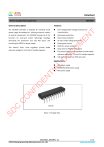 Datasheet Power Supply Pwm Supervisor SDC4818 General Description Features The SDC4818 controller is designed for switching mode power supply for desktop PCs. Utilizing minimum number Over-voltage/Under-voltage protection for 3.3V/±5V/±12V T N E of external components, the SDC4818 includes all of the Over-power protection functions for push-pull and/or half-bridge topology, Short-circuit protection decreasing the production cost and PCB space, and AC input under voltage protection increasing the MTBF for power supply. Power good circuitry PSON for remote controller Delay time for PSON and PG signal Two internal TL431 shunt regulators provide stable Two internal TL431 shunt regulators provide stable reference voltage for 3.3V and 5V standby regulator. M U C reference voltage for 3.3V and 5V standby regulator D Applications L A I T O Soft-start and maximum 93% duty cycle ATX power supply SFX(MICRO-ATX) power supply NLX power supply N E D I F N O C D S C DIP-20 Figure 1. Package Type December, 2013 Rev. 1.1 ©2013 Shaoxing Devechip Microelectronics Co., Ltd. 1/13 www.sdc-semi.com Datasheet Power Supply Pwm Supervisor SDC4818 Pin Configuration Package:DIP-20 T PSON 1 20 VCC V33 2 19 RI V5 3 18 SS OPP 4 17 IN UVAC 5 16 COMP NVP 6 15 GND V12 7 14 FB1 OP2 8 13 VREF1 OP1 9 12 VREF2 PG 10 11 FB2 Figure 2. Pin Configuration Pin Number Pin Name 1 PSON 2 V33 3 V5 4 OPP 5 UVAC 6 NVP 7 V12 8 OP2 9 OP1 10 PG O M U C O L A I T N E D I F N 11 N E D Function Remote on/off input OVP/UVP sense input for 3.3V OVP/UVP sense input for 5V Over-power sense input Power good detection input UVP sense input for negative voltage OVP/UVP sense input for 12V PWM totem-pole output 2 PWM totem-pole output 1 Power good signal FB2 Output for second opamp loop VREF2 Input for second opamp loop VREF1 Input for first opamp loop FB1 Output for first opamp loop GND Ground COMP Error amplifier output 17 IN Input of error amplifier 18 SS The soft-start function set through an external capacitor 19 RI Reference setting by an external resistor 20 VCC Supply voltage 12 13 C 14 15 D S 16 C Table 1. Pin Description December, 2013 Rev. 1.1 ©2013 Shaoxing Devechip Microelectronics Co., Ltd. 2/13 www.sdc-semi.com Datasheet Power Supply Pwm Supervisor SDC4818 Functional Block Diagram RI VCC 1 19 20 14 13 Control PSON 2 V33 LOGIC & DELAY 3 OVP V5 7 UVP V12 4 M + - PWM 5 UVAC 0.7V 2.1V 6 NVP OUT PUT C U FB2 9 OP1 8 OP2 O D OPP OPP VREF2 11 VCC UVS T N E 12 431 VREF FB1 VREF1 L A + 10 18 17 IN SS PG GND N E 15 COMP I T + - 16 Figure 3. Functional Block Diagram D I F N O C C D S December, 2013 Rev. 1.1 ©2013 Shaoxing Devechip Microelectronics Co., Ltd. 3/13 www.sdc-semi.com Datasheet Power Supply Pwm Supervisor SDC4818 Ordering Information T SDC4818 X X X - X Circuit Type DIP-20 -40°C~85°C U Package DIP-20: Z C O Part Number Temperature M Blank: Tube Reference A: 2.45V-2.50V B: 2.50V-2.55V Package N E E1: Pb-free G1: Halogen-free L A D Marking ID Packing Type Pb-free Halogen-free Pb-free Halogen-free SDC4818AZ -E1 SDC4818AZ -G1 SDC4818G Tube SDC4818BZ -E1 I T SDC4818 SDC4818BZ -G1 SDC4818 SDC4818G Tube N E D I F N O C C D S December, 2013 Rev. 1.1 ©2013 Shaoxing Devechip Microelectronics Co., Ltd. 4/13 www.sdc-semi.com Datasheet Power Supply Pwm Supervisor SDC4818 Absolute Maximum Ratings (NOTE: Stresses greater than those listed under Absolute Maximum Ratings may cause permanent damage to the device.) Parameter Symbol Value Unit Supply voltage V CC 12 V FB1, FB2 Output V FB 16 PG Output I OUT1 30 FB1, FB2 Output I OUT2 30 Power dissipation(Ta=25°C) P D1 1.5 Power dissipation(Ta=90°C) P D2 0.5 Storage temperature T STG Latch-up test per JEDEC 78 - C ESD, HBM model per Mil-Std-883, Method 3015 HBM ESD, MM model per JEDEC EIA/JESD22-A115 MM Thermal Resistance(Junction to Ambient) θ JA L A mA mA M W U O D T N E V W -55~155 °C 200 mA 2000 V 200 V 82.5 ℃/W Table 2. Absolute Maximum Ratings I T Recommended Operating Conditions Parameter Symbol Supply voltage V CC Oscillation frequency f OSC Operating temperature T OPR D I F N E Min Max Unit 4.5 5.5 V 60 70 kHz -40 85 °C Table 3. Recommended Operating Conditions N O C C D S December, 2013 Rev. 1.1 ©2013 Shaoxing Devechip Microelectronics Co., Ltd. 5/13 www.sdc-semi.com Datasheet Power Supply Pwm Supervisor SDC4818 Electrical Characteristics (Ta=25°C, V CC =5.0V, unless otherwise specified) Parameter Symbol Conditions Min Typ Max Unit Supply voltage V CC - 4.5 5.0 7.0 V Standby supply current I CC PG=High - 5 10 mA 3.3V OVP V OVP1 - 3.9 4.1 4.3 V 5V OVP V OVP2 - 5.8 6.1 6.5 V 12V OVP V OVP3 - 13.9 14.5 14.9 3.3V UVP V UVP1 - 2.0 2.6 2.8 V 5V UVP V UVP2 - 3.0 3.6 M V 3.9 V 12V UVP V UVP3 - 6.0 7.2 8.0 V 3.3V UVS V UVS1 - 2.5 2.8 3.0 V 5V UVS V UVS2 - 12V UVS V UVS3 - V OPPS V UVAC =1.5V Negative voltage protection V NVP NVP source current I NVP OVP debounce Time t OVP UVP debounce Time t UVP UVS debounce Time t UVS OPP debounce Time t OPP Over power protection with delay time t NVP Reference voltage 4.3 4.5 V 9.4 10.1 10.4 V 2.02 2.40 2.66 V - 1.9 2.05 2.2 V RI=75k 50 61 72 uA RI=75k 0.5 0.7 1.3 ms RI=75k 35 60 80 ms RI=75k 0.5 0.7 1.3 ms RI=75k 4.0 7.0 10.0 ms RI=75k 4.0 7.0 10.0 ms I T D I F NVP debounce Time O L A N E N E U C T D 4.0 Reference V REF I FB =0.5mA, Ta=25°C 2.475 2.5 2.525 V R EGLI-FB 4V<V FB <16V - 1 - mV/V I OUT-FB V FB >2V 10 - - mA t PG RI=75k 200 300 400 ms UVAC sense voltage V UVAC - 0.65 0.7 0.75 V PG output rise time D S tR C L =100pF,V PULLUP =5V, - 1 - us PG output fall time tF R PULLUP =1k - 300 - ns Output low voltage V OL2 I PG =5mA - - 0.5 V Sink current of PG I ON2 V PG =5V - - 1 uA PSON input voltage V PSON - 1 1.4 2.0 V PSON drive current I PSON - - - 0.5 mA PSON to on debounce time t PSON (ON) RI=75k 20 40 50 ms PSON to off debounce time t PSON (OFF) RI=75k 10 20 30 ms PSON to off delay time t PSOFF RI=75k 2 4.8 6.5 ms N Regulation Output pull current PG delay time C O C PG Remote On/Off Section December, 2013 Rev. 1.1 ©2013 Shaoxing Devechip Microe
