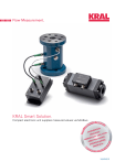 Flow Measurement. KRAL Smart Solution. o Compact electronic unit supplies measured values via Modbus. n n nitori g Read o y M Con dit i N, PTIO Y, CO , ENC U TAL Q E, TO FRE T A ,R , URE NGE RAT E P CHA M N E T RS, CTIO HOU DIRE N O I RAT ... OPE BITS OR R R E P for m in or ance Monit g er Re ad y M NSU www.kral.at Flow Measuring Technology With the Smart Solution. A compact KRAL electronic unit in combination with KRAL flowmeters. The Smart Solution. Supply: Operating temperature: Degree of protection: Interfaces: Baud rate: Protocol: Character format: What is the KRAL Smart Solution? The Smart Solution is a compact electronic unit to which a KRAL flowmeter is connected. The Smart Solution processes the signals that the KRAL flowmeter generates with its integrated sensors in such a manner that measured values are available that can be passed on via the Modbus. Up to 32 Smart Solution electronic units can be switched in series and thus save a multitude of cabling and their installation in comparison to conventional measured data acquisition. It is often assumed that the liquid in the piping flows uniformly and smoothly. In many applications, however, this is not the case. It can be very turbulent in the piping: The direction of flow can reverse briefly and unanticipated 2 due to pulsations – caused by pumps and / or engines (consumers). Similarly the liquid can have different temperatures at different measuring points. KRAL flowmeters supply very precise measured values like the flow quantity, the flow direction and temperature to the Smart Solution. The Smart Solution processes this information into a flow value. At KRAL we call this the "rectified measured value". If the operating conditions in the piping were not taken into consideration, a significant measuring error would result. 9 to 36 VDC. -20 to 85 °C. IP 67. RS485. 9600 / 19200 / 38400 / 57600 / 115200. Modbus RTU. 1 start bit, 8 data bits, 2 stop bits, no parity. No individual local displays – one display with the collected data and values. Inexpensive – simple installation – low-maintenance. Cables and their installation are expensive. Cable ducts, cable bushings through walls. The routing and the connections of the cables are timeconsuming and can result in faults and errors. In particular in the case of subsequent installation the associated costs are considerable. KRAL Smart Solution requires only one cable. The cable is simply looped from box to box, meaning that only one cable has to be connected to the Monitoring System. Other outputs remain free. Quite a few instruments and monitors are usually installed on the ship's bridge, in the control room of an industrial plant or in a power plant. Each further monitor or each light source can disturb. We deliberately did not provide the Smart Solution with its own display. The measured values can be passed on to and displayed on existing Monitoring Systems via Modbus. Volume measurement – mass calculation. Condition Monitoring and Performance Monitoring. The density values of common liquids are stored in the Smart Solution in the factory. The Smart Solution directly calculates the mass value of the flow by means of the measured values of the volume and of the temperature as well as the stored density value. In addition to the main measured values "flow quantity" and "flow rate", all other measured values are available openly to the user. These are, as already mentioned, the temperatures at the measuring points and the indication of return flows. Our customers interpret the measured data on the basis of their own operating experience and derive information from these about the state of the plant in order to organize maintenance intervals or repairs. Apart from the mass value, the Smart Solution can also carry out temperature compensation for the measured volume flow by means of the stored density values. This function references the measured flow quantity to a reference temperature, thus making the measured value comparable with other temperature-compensated measured values. The customer has the possibility to configure the Smart Solution via the Modbus and to call up the desired measured data. flows which can result in considerable inaccuracy of the measured value. Thanks to the interpretation of all the measured values by the Smart Solution the operating personal can uncover such irregularities and prevent consequential damage to engines and consumers. Example: The low-pressure fuel system of an engine is not supplied ready to use by the engine manufacturer, but rather installed and connected individually on site. After the installation a check is carried out for leaks, but almost never whether the liquid is flowing as it should. However, the reality is that pulsations in the piping (caused by pumps / engines) cause multiple brief return 3 The Smart Solution. Simple installation – manifold usages. Up to 32 Smart Solution electronic units. 32 Smart Solution electronic units can be switched in series and thus save a multitude of cabling and their installation in comparison to conventional measured data acquisition. Differential measurement. To ensure precise measurement one KRAL flowmeter each has to be installed in the supply and return lines. Two KRAL flowmeters are required per engine. The difference between the supply quantity and the return quantity is the fuel consumption. Temperature 1 and 2. The temperature of the fuel in the return line can lie up to 30 °C higher than in the supply line. The KRAL fuel consumption measurement detects the temperatures of the supply and feed lines and calculates the consumption for a temperature level that can be freely selected. 4 Condition Monitoring. Performance Monitoring. Our customers interpret the measured data on the basis of their own operating experience and derive information from these about the condition of the plant. Single-line measurement. In the simplest case a KRAL flowmeter can be installed before the mixin
