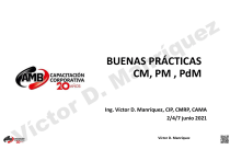 r n u íq z e BUENAS PRÁCTICAS CM, PM , PdM V t c í r o . D a M Ing. Víctor D. Manríquez, CIP, CMRP, CAMA 2/4/7 junio 2021 Víctor D. Manríquez V t c í r o r n a M . D 2 u íq Víctor D. Manríquez z e V t c í r o r n a M . D 3 u íq Víctor D. Manríquez z e V t c í r o r n a M . D 4 u íq Víctor D. Manríquez z e V t c í r o r n a M . D 5 u íq Víctor D. Manríquez z e NAVAJA DE OCKHAM GUILLERMO DE OCKHAM (c.1287-1347) V t c í r o a M r n • Pluralitas non est ponenda sine necessitate. • La pluralidad no se debe postular sin necesidad. . D 6 u íq z e La complejidad no debe admirarse, debe evitarse. Víctor D. Manríquez u íq z e Ley de Murphy r n a V M “Anything that . can go wrong, D r will go wrong.” c í o t 7 “Si algo puede salir mal, saldrá mal.” Víctor D. Manríquez V a M “...Alicia ...continuó: -“¿Me podrías indicar, por favor, que camino tengo que tomar desde aquí?” -“Eso depende de a dónde quieras llegar”, contestó el Gato. -“A mí no me importa demasiado a dónde...”, empezó a explicar Alicia. -“En ese caso, da igual qué camino tomes”, interrumpió el Gato....” r o t c í r n u íq z e . D “ Tomado de “Alicia en el país de las maravillas”, Lewis Carroll 8 Víctor D. Manríquez TENDENCIAS GLOBALES CAMBIOS Competencia global V a M . D Optimización de Recursos r o t c í Cambios legislativos r n Ordenar prioridades 9 u íq z e Ventaja competitiva Requisitos de los clientes Pronósticos Expectativas y valores de la gente Víctor D. Manríquez BUENAS PRACTICAS Buenas Prácticas Mejor en su Clase . D Clase mundial V t c í r o u íq r Calidad n a M Actitud Tecnología 10 Víctor D. Manríquez z e BUENAS PRACTICAS Calidad Si los equipos no reciben adecuado mantenimiento no podrán mantener los estándares de calidad. t c í r o . D a M En una organización de clase mundial el operador del equipo realiza inspecciones y mantenimientos menores del equipo (Mantenimiento Autónomo). Equipos pobremente mantenidos rara vez producen consistentemente buenos productos. V r n u íq z e Se libera parte del trabajo menos “técnico” del área de mantenimiento. 11 Víctor D. Manríquez BUENAS PRACTICAS Actitud Favorecer planeamiento de largo plazo en lugar de beneficios de corto plazo. r o . D a M Promover buenas relaciones entre operaciones y mantenimiento. Si solo se tiene objetivos de corto plazo, esto afecta el mantenimiento en las áreas de: mantenimiento preventivo, planeamiento de mano de obra e inventario. V t c í r n u íq z e Dejar de lado la estrategia de “producir todo lo que se pueda” o “trabajar hasta la falla”. 12 Víctor D. Manríquez BUENAS PRACTICAS Mantenimiento V r o t c í . D Operaciones r n a M 13 u íq Operaciones Mantenimiento Víctor D. Manríquez z e BUENAS PRACTICAS r n Operaciones t c í r o Mantenimiento V . D a SOCIOS M 14 u íq Víctor D. Manríquez z e BUENAS PRACTICAS Actitud . D Posición del área de mantenimiento dentro de la estructura de la organización. V t c í r o a M r n u íq z e Actitud de los directivos hacia la provisión de los recursos necesarios para el área de mantenimiento. 15 Víctor D. Manríquez BUENAS PRACTICAS Tecnología r D r M . Técnicas de mantenimiento basado en la condición (CBM). V c í o t n a u íq Software de gestión (CMMS/EAM/ERP). 16 Víctor D. Manríquez z e ESTRATEGIA DE MANTENIMIENTO r n u íq Estrategia de Mantenimiento a M NORSOK Z-008:2011 3.1.27 r o . D z e Método de gestión usado a fin de lograr los objetivos de mantenimiento. V t c í 17 Víctor D. Manríquez CLASIFICACIÓN DE ESTRATEGIAS DE MANTENIMIENTO u íq Tipos de estrategia r n a z e M . Centradas en Centradas en Centradas en D el activo. r las personas. el proceso. o t c í V 18 Víctor D. Manríquez ESTRATEGIAS CENTRADAS EN EL ACTIVO r n Proactivas RCM Reliability Centered Maintenance V t c í r o . D u íq z e a RBM M Mantenimiento Centrado en la Confiabilidad Risk Based Maintenance 19 Mantenimiento Basado en el Riesgo Víctor D. Manríquez ESTRATEGIAS CENTRADAS EN EL ACTIVO u Mejora Continuaíq r n a PMO RCFA M . D r o t c í Planned Maintenance Optimization V Optimización del Mantenimiento Planificado 20 Root Cause & Failure Analysis z e Análisis de Falla y Causa Raíz Víctor D. Manríquez ESTRATEGIAS CENTRADAS EN LAS PERSONAS TPM . Total Productive D r Maintenance o t c í V a M r n u íq z e Mantenimiento Productivo Total 21 Víctor D. Manríquez ESTRATEGIAS CENTRADAS EN LAS PERSONAS Estrategia de activos. TPM V . D r n a M Empoderamiento. u íq z e Planificación y programación de recursos. t c í r o Sistemas y procedimientos. Equipos de mejoramiento continuo (CAT). 22 Víctor D. Manríquez ESTRATEGIAS CENTRADAS EN EL PROCESO u Centradas en el proceso q í r z e n a Flujo del proceso de Mantenimiento. M . D r o t c í V Mapeo de procesos. Análisis de procesos. Mapeo de la cadena de valor. 23 Visionado. Rediseño. Víctor D. Manríquez MANTENIMIENTO BASADO EN EL RIESGO V t c í r o . D r n a M u íq Fuente: NORSOK standard Z-008:2011, Página 5 – Adaptación y traducción Víctor D. Manríquez 24 Víctor D. Manríquez z e SELECCIÓN Y MODELOS ESTRATEGIAS DE MANTENIMIENTO V r o t c í . D a M r n u íq Fuente: Uptime, Campbell & Reyes-Picknell, Página 20 Figura 1.4.– Traducción Víctor D. Manríquez 25 Víctor D. Manríquez z e u íq Mantenimiento (3.49) r D r M . n a z e Combinación de todas las acciones técnicas y de gestión intencionadas para retener un activo en, o restablecer a un estado, en el cual pueda desempeñarse como es requerido. V c í o t Fuente: Norma ISO 14224:2016 Traducción Víctor Manríquez. 26 Víctor D. Manríquez CATEGORIAS/TIPOS DE MANTENIMIENTO – BOK SMRP Trabajo Mantenimiento 100% Modificación & Mejora 10 @ 15% Capital % Variable t c í r o No Capital 10 @ 15% V . D r n a M Identificación estructurada 30% Mantenimiento Correctivo 55% Predictivo/CBM 15% Correctivo derivado de ID estructurada 50% Preventivo 15% Correctivo NO derivad